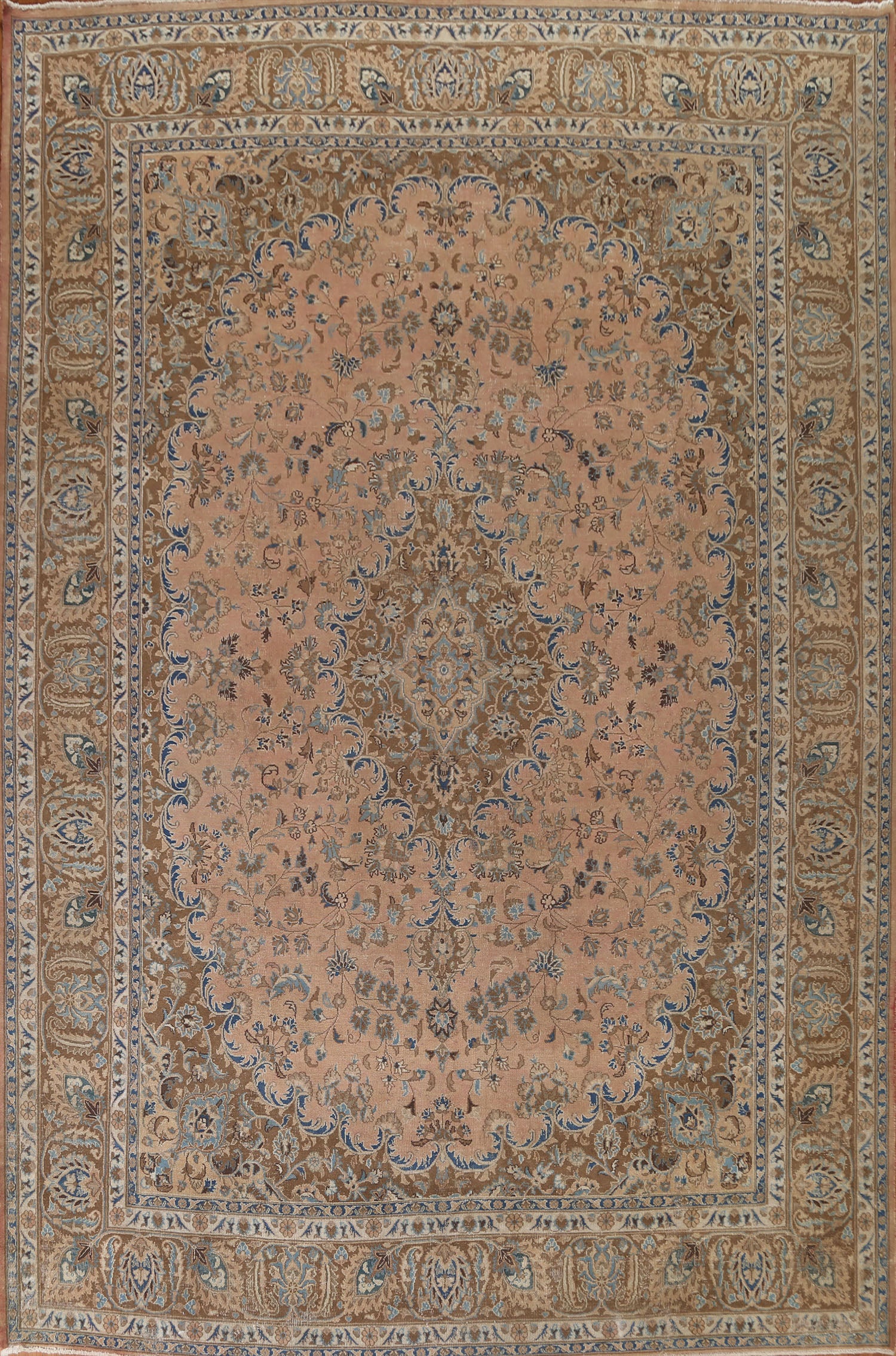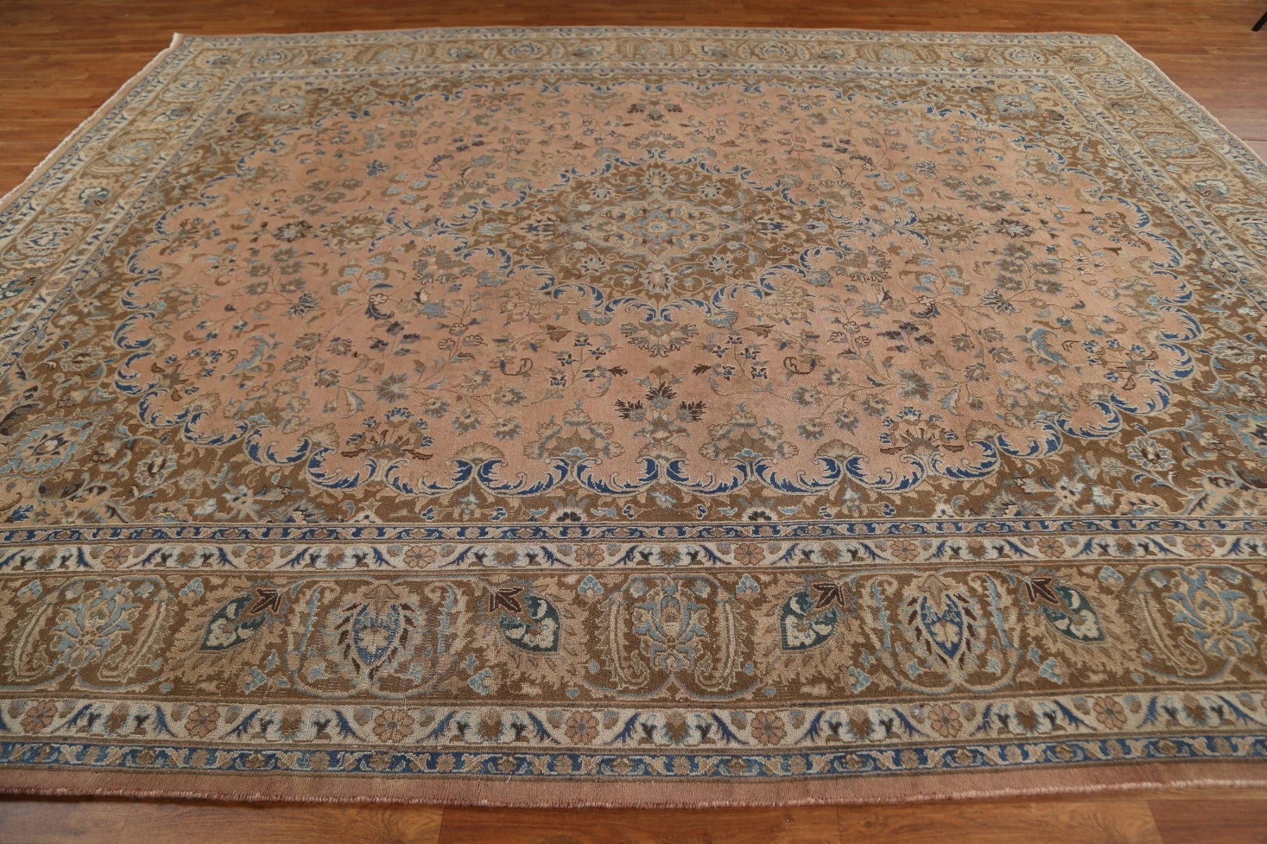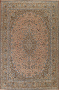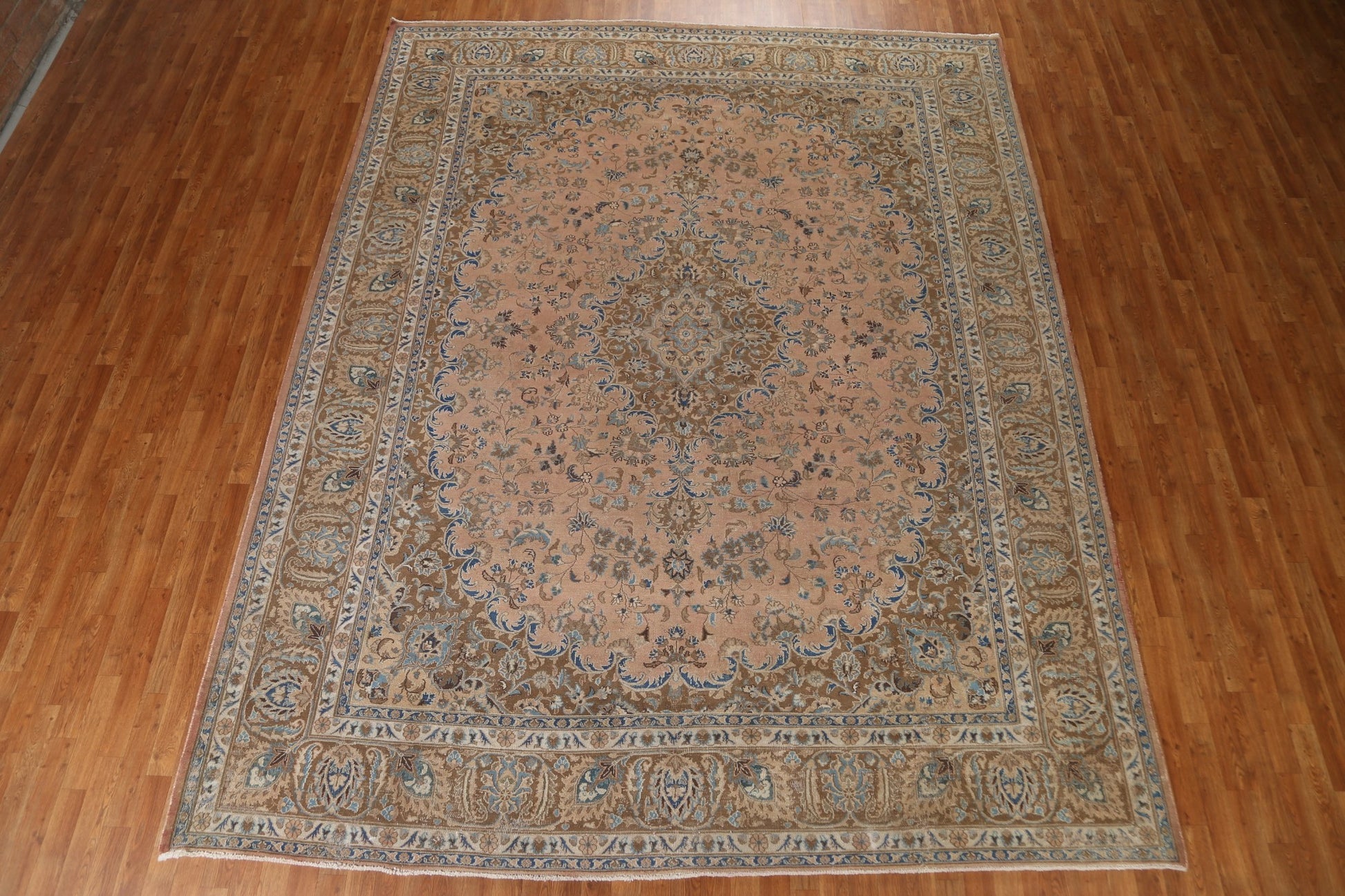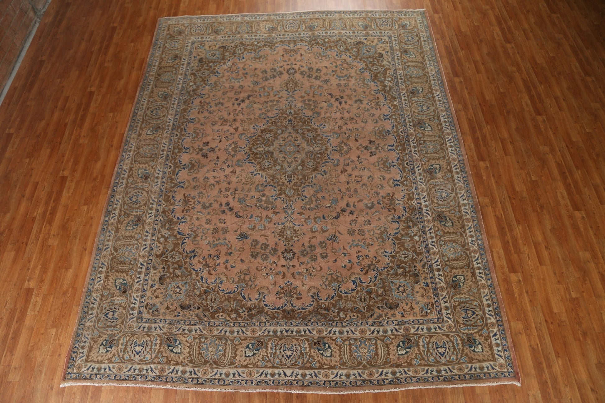 A Beautiful Genuine Persia ( Persia ) Mashad rug is Hand Knotted by skillful weavers in Persia ( Persia ) with 100% Wool Material. This rug is in Very Good (Evenly Low Pile) condition. dimensions are 12' 7'' X 9' 10'' in foot and 384 X 300 in centimeter. the primary color is Pink.