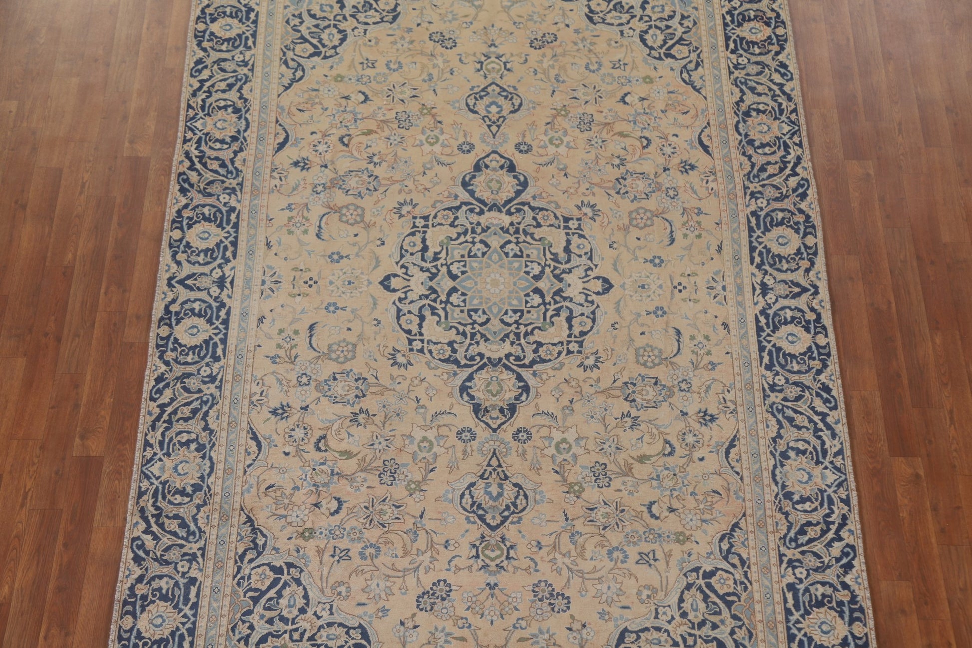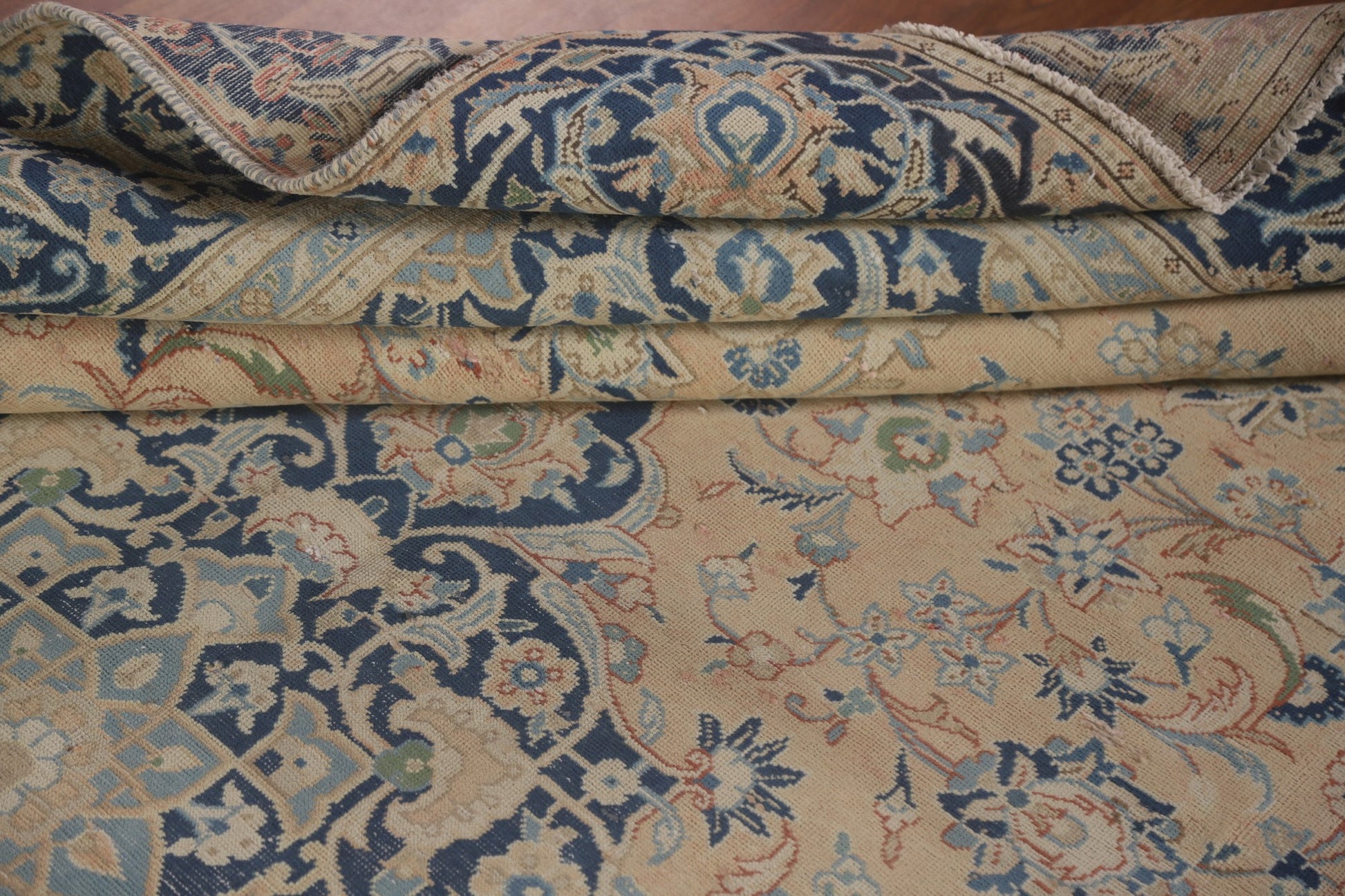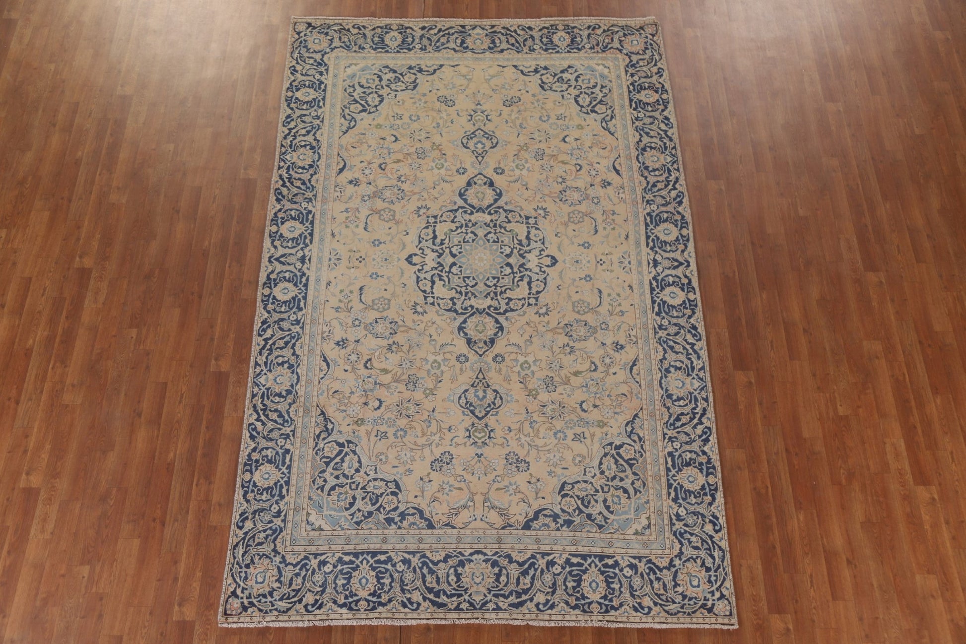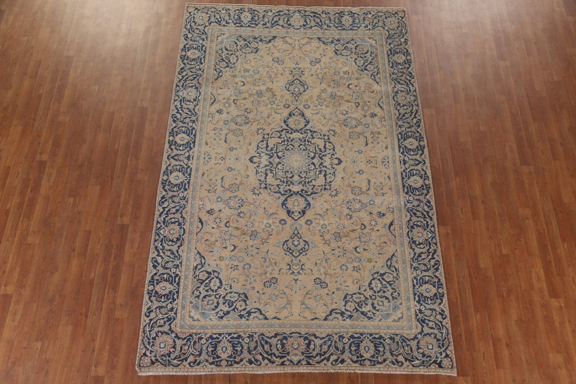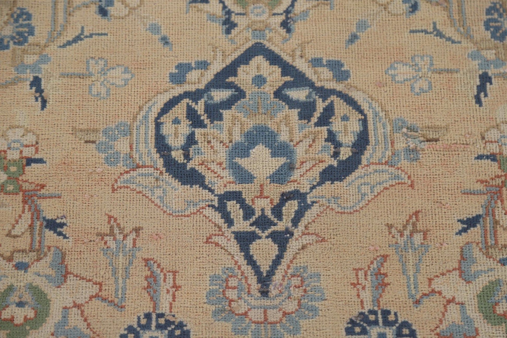 A Beautiful Genuine Persia ( Persia ) Mashad rug is Hand Knotted by skillful weavers in Persia ( Persia ) with 100% Wool Material. This rug is in Very Good (Evenly Low Pile) condition. dimensions are 10' 0'' X 6' 5'' in foot and 305 X 196 in centimeter. the primary color is Peach.