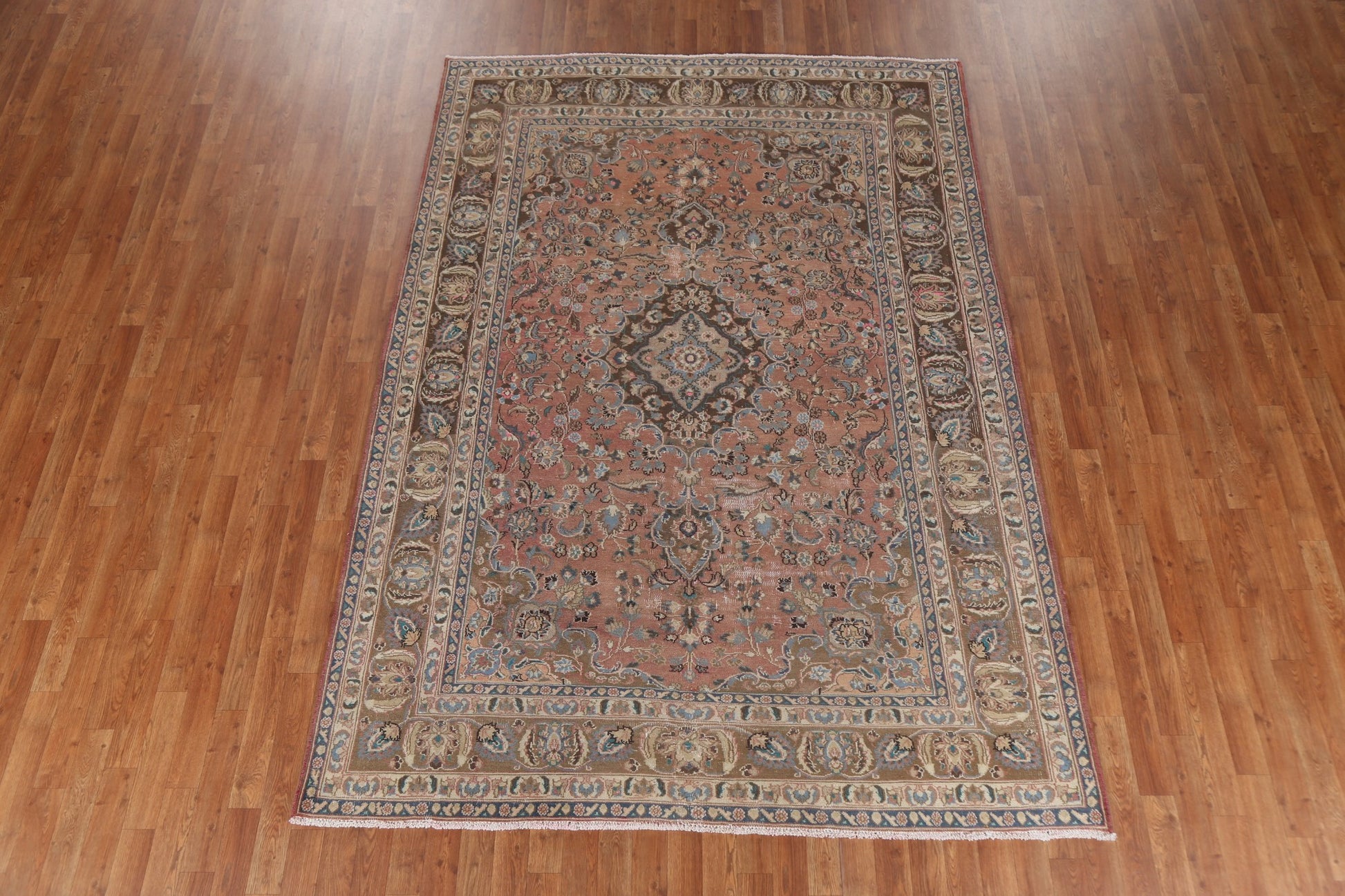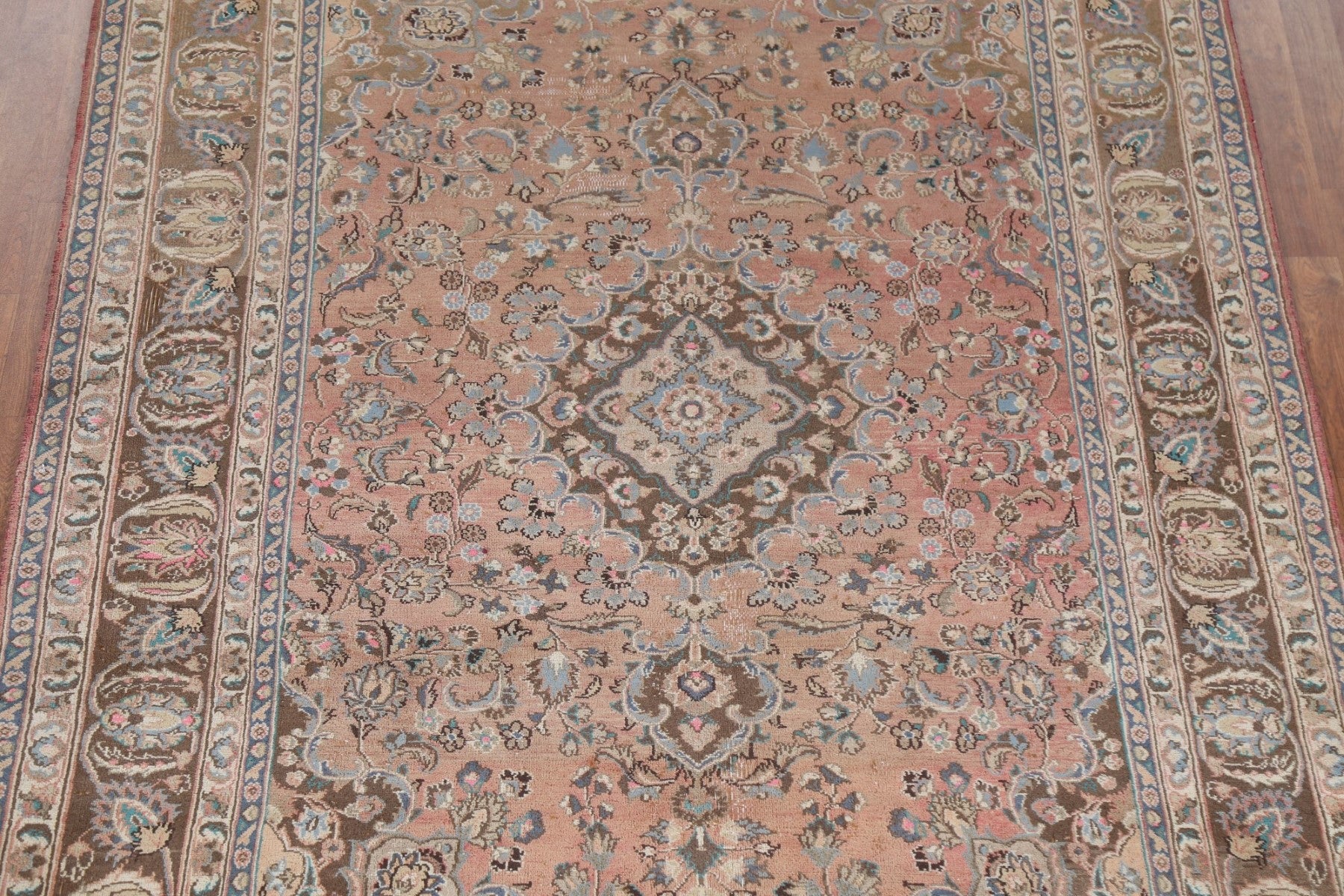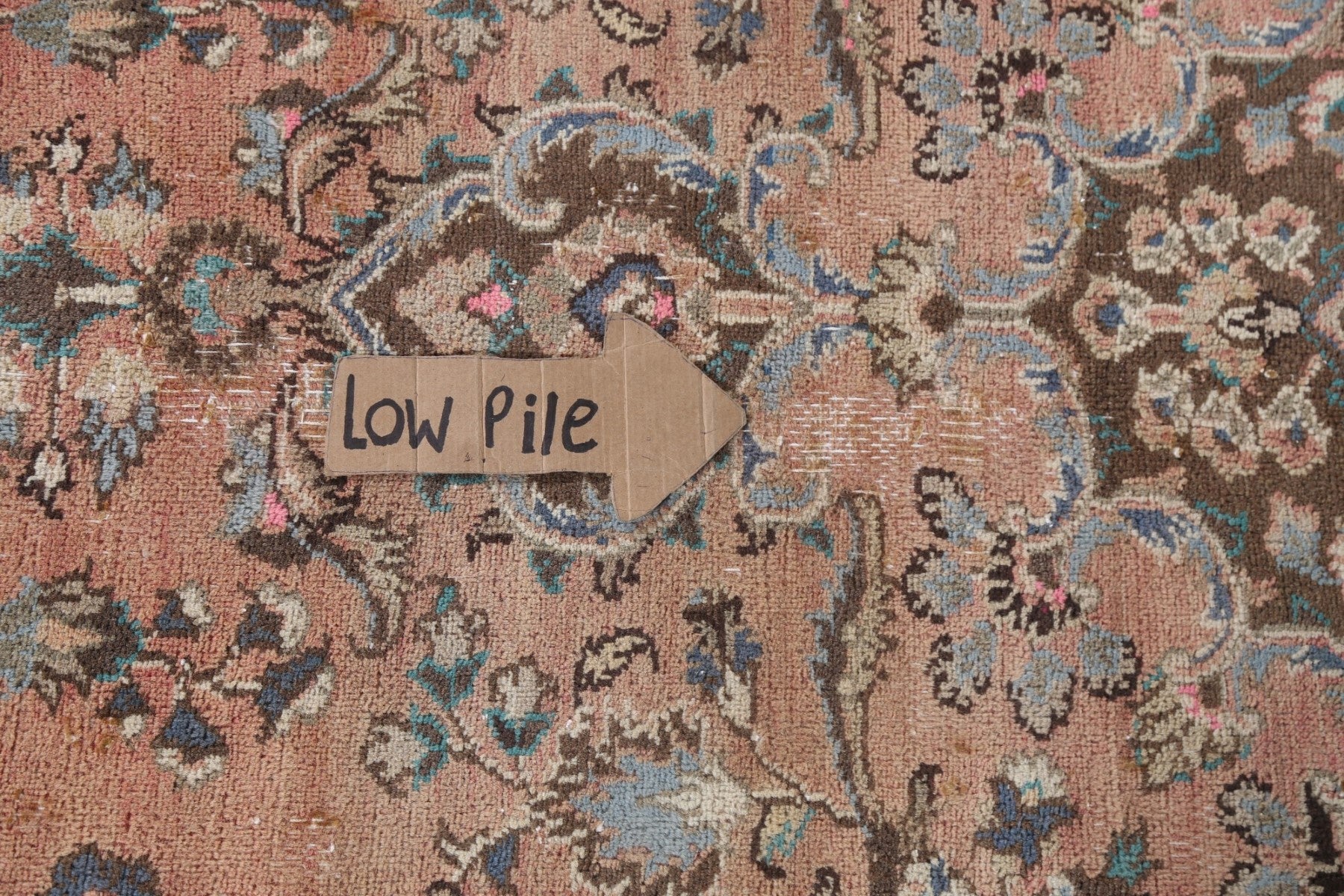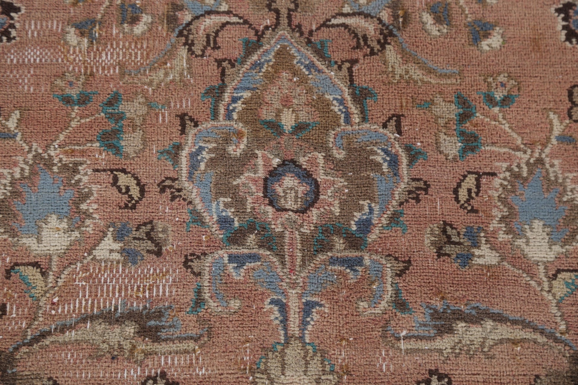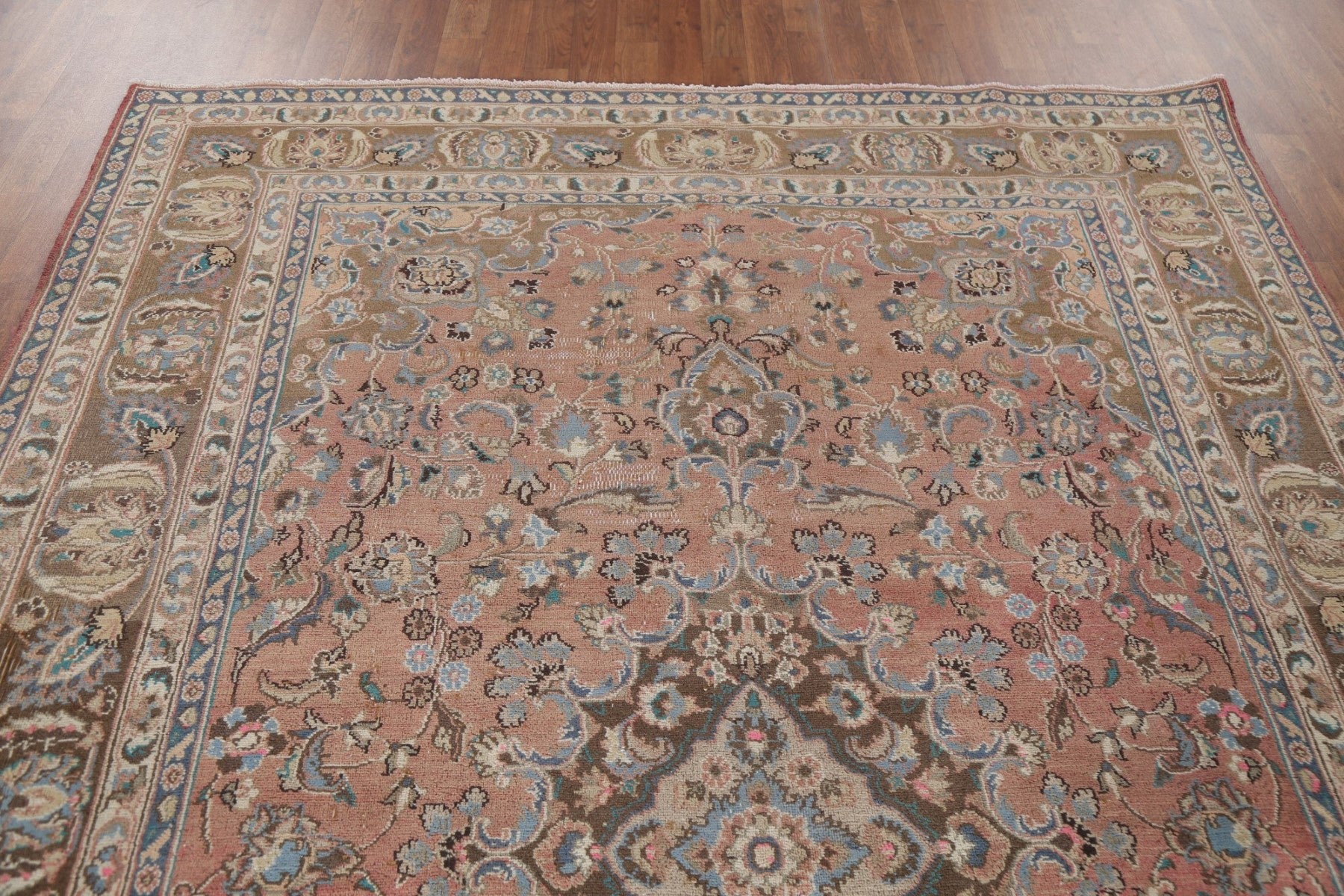 A Beautiful Genuine Persia ( Persia ) Mashad rug is Hand Knotted by skillful weavers in Persia ( Persia ) with 100% Wool Material. This rug is in Very Good (Low Pile-Worn) condition. dimensions are 9' 2'' X 6' 5'' in foot and 279 X 196 in centimeter. the primary color is Coral.