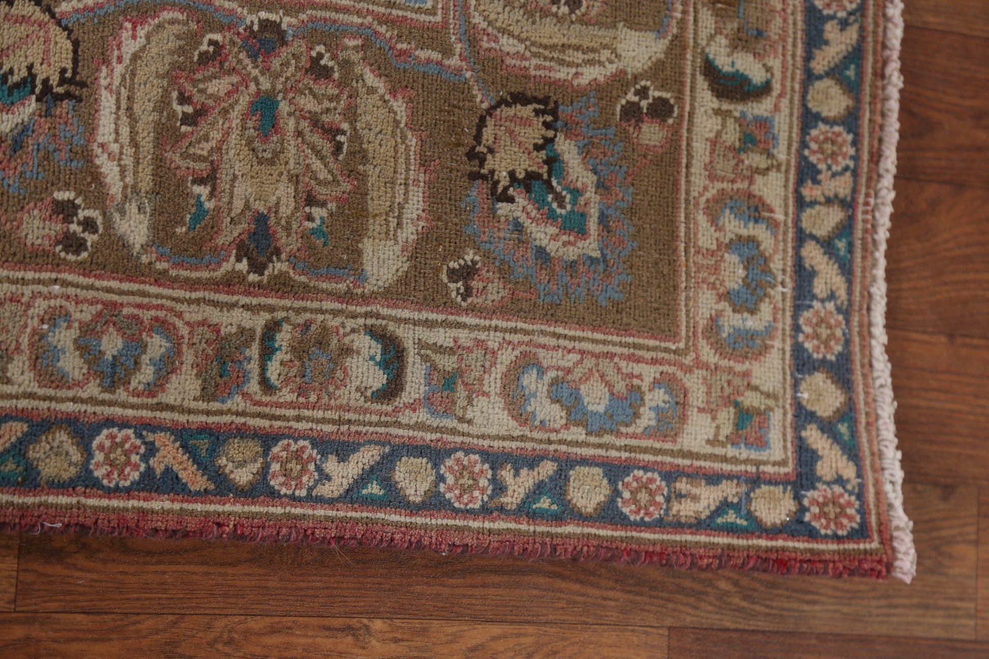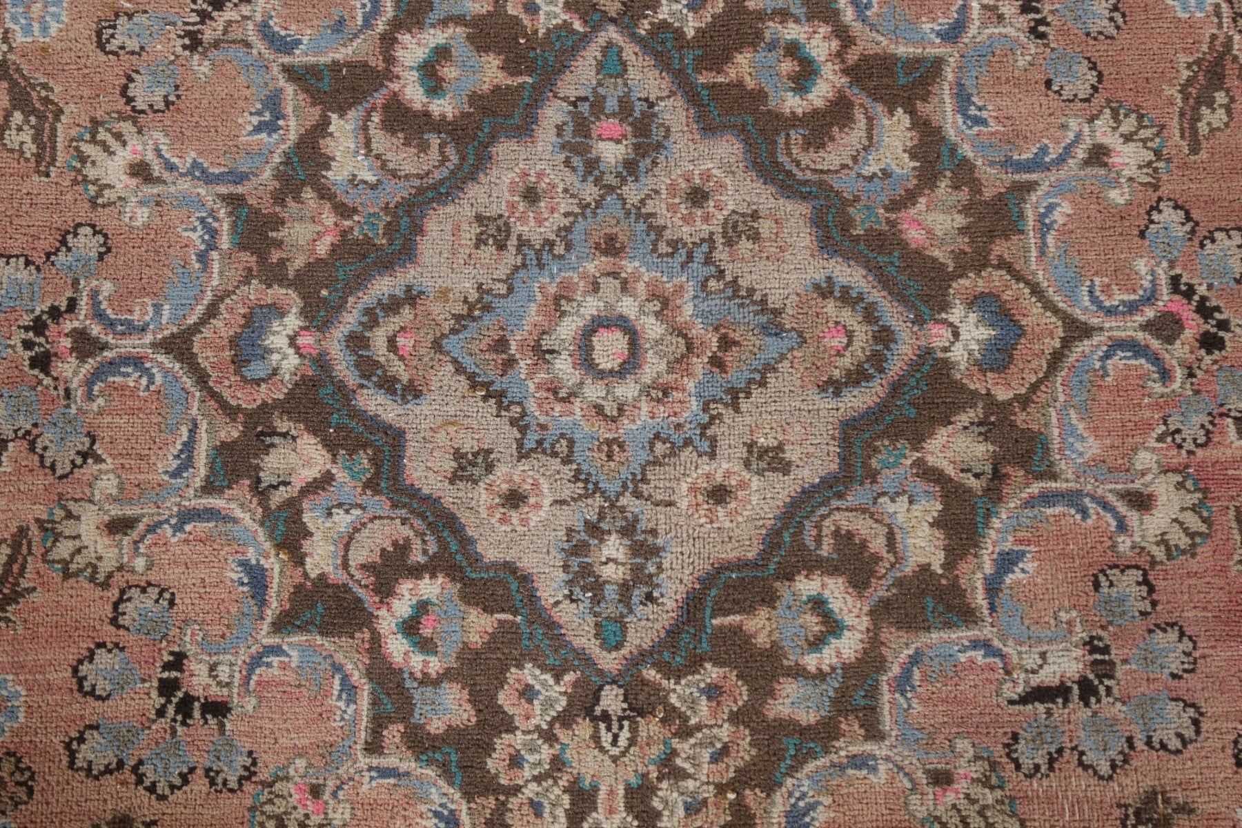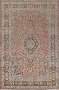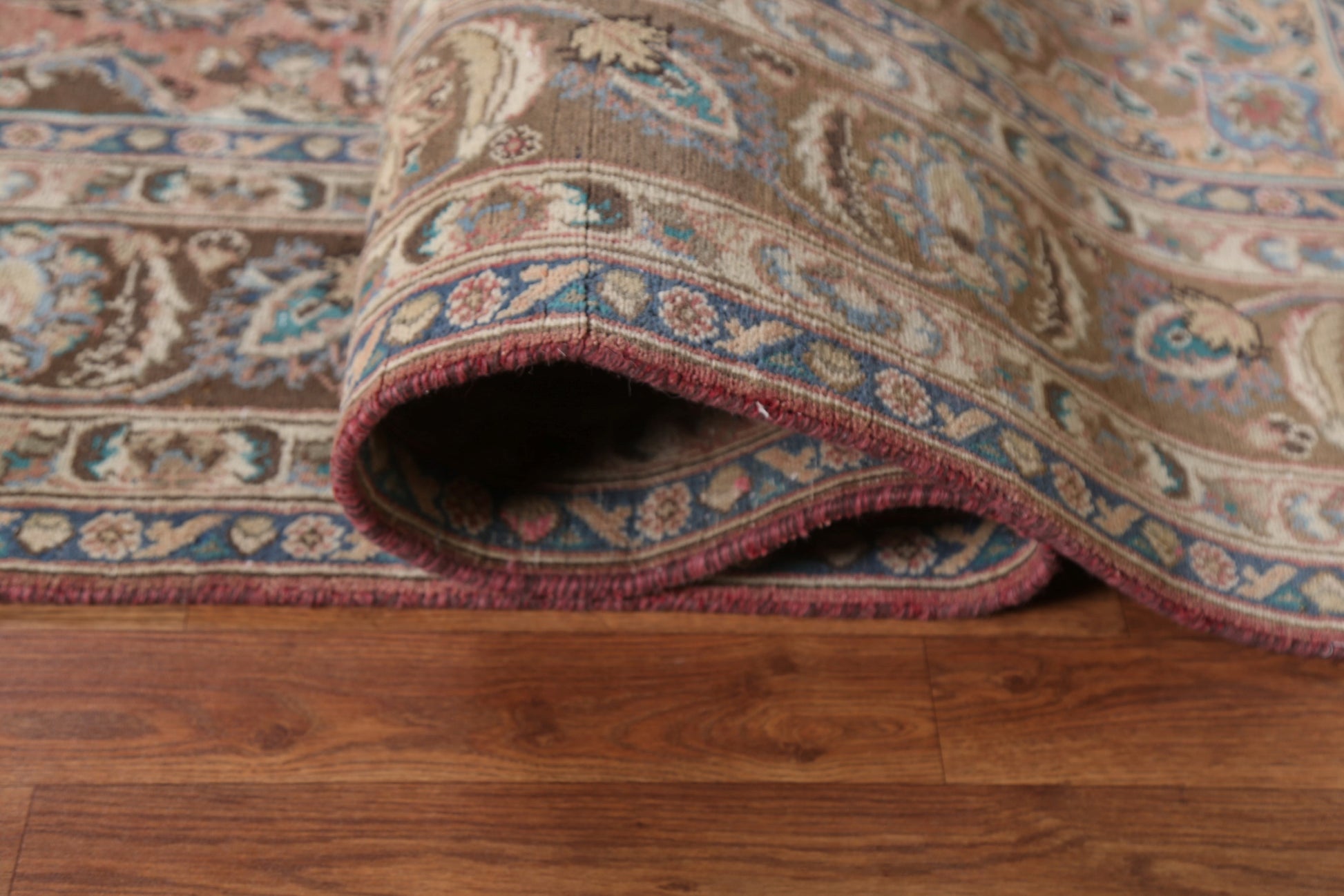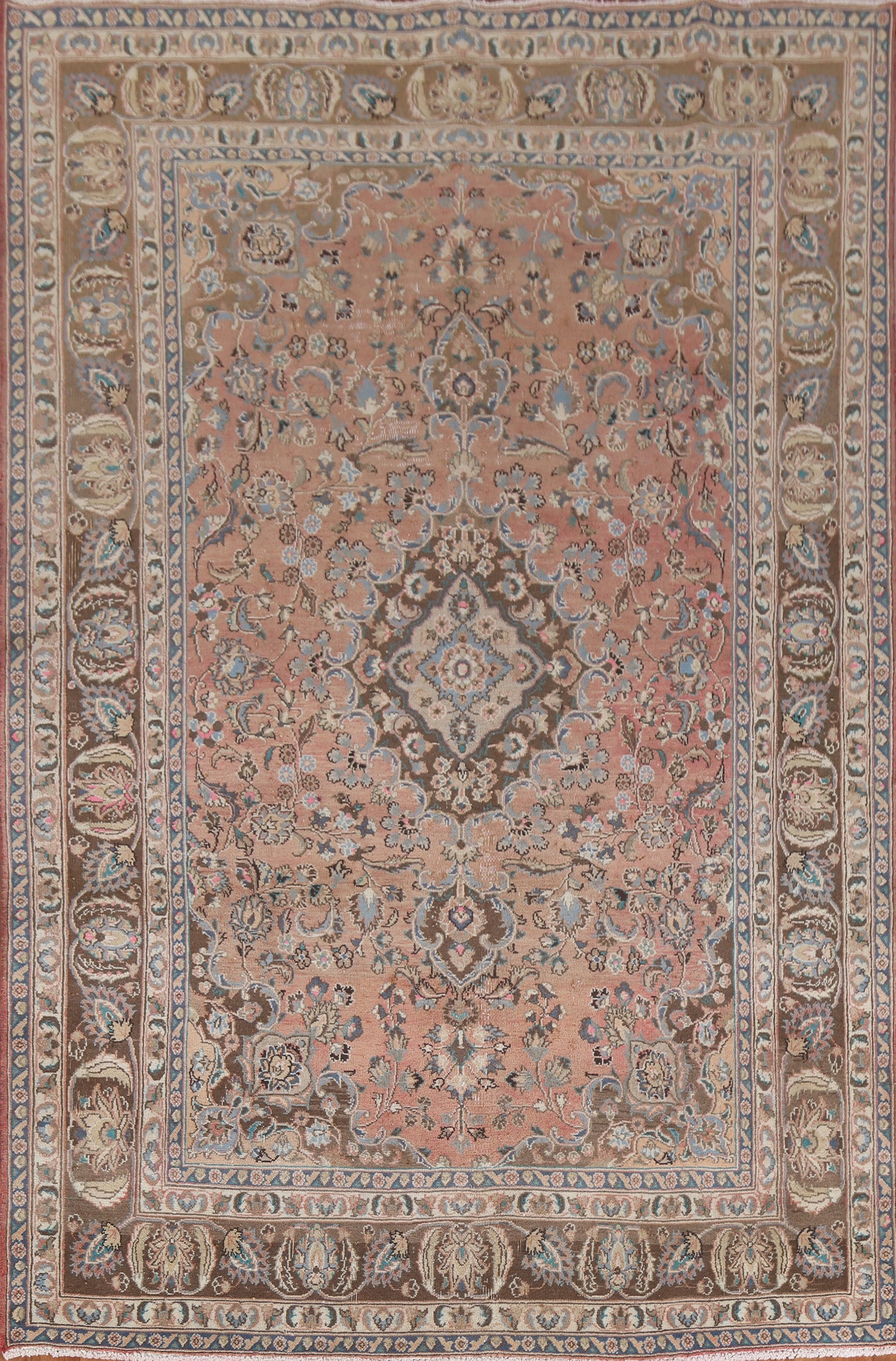A Beautiful Genuine Persia ( Persia ) Mashad rug is Hand Knotted by skillful weavers in Persia ( Persia ) with 100% Wool Material. This rug is in Very Good (Low Pile-Worn) condition. dimensions are 9' 2'' X 6' 5'' in foot and 279 X 196 in centimeter. the primary color is Coral.