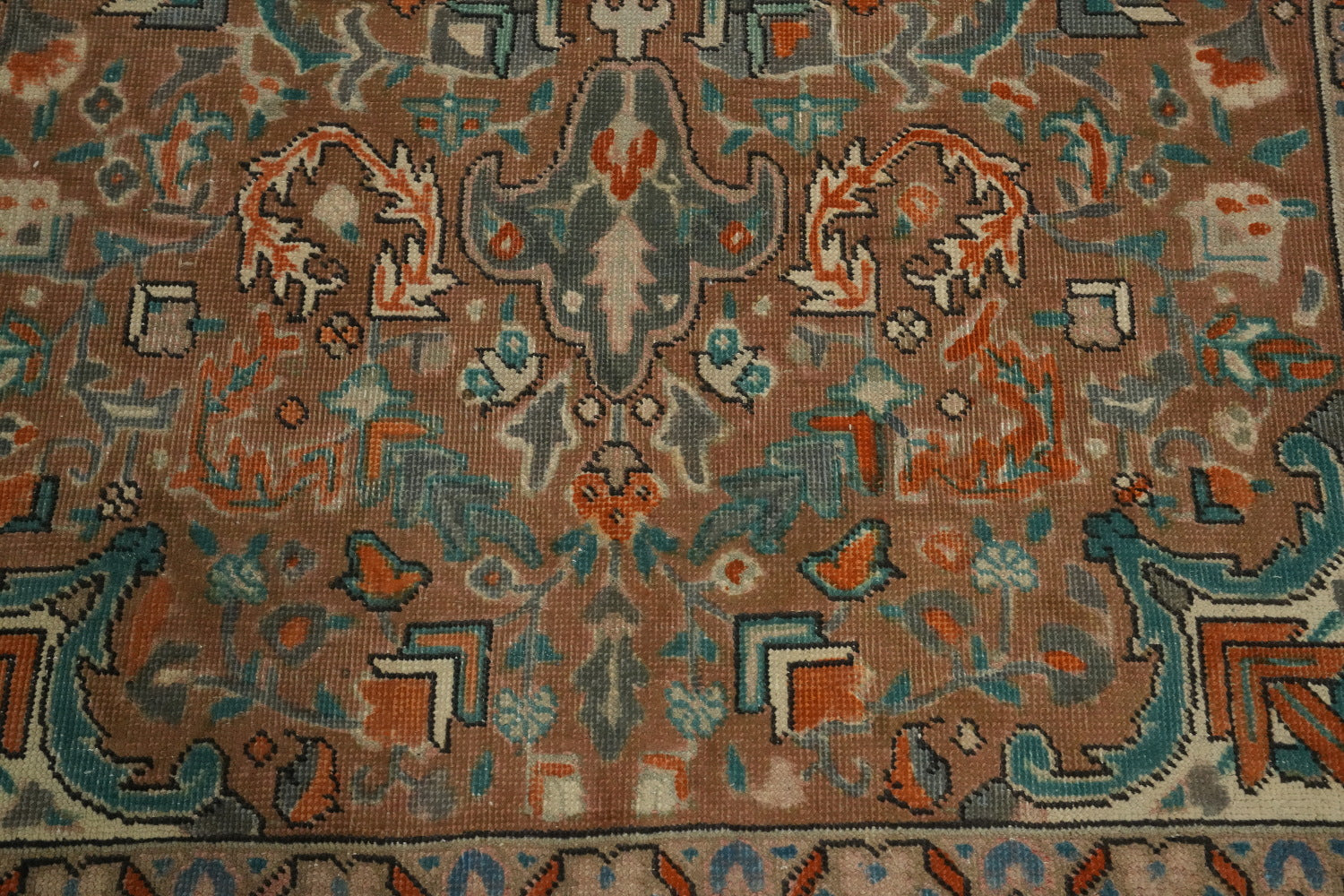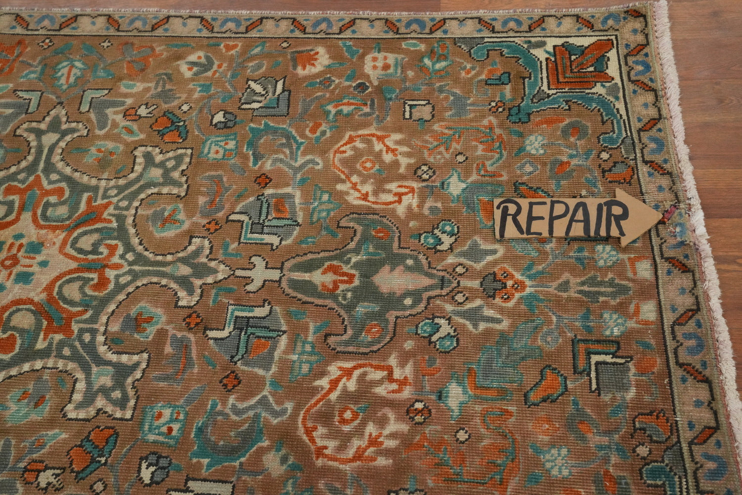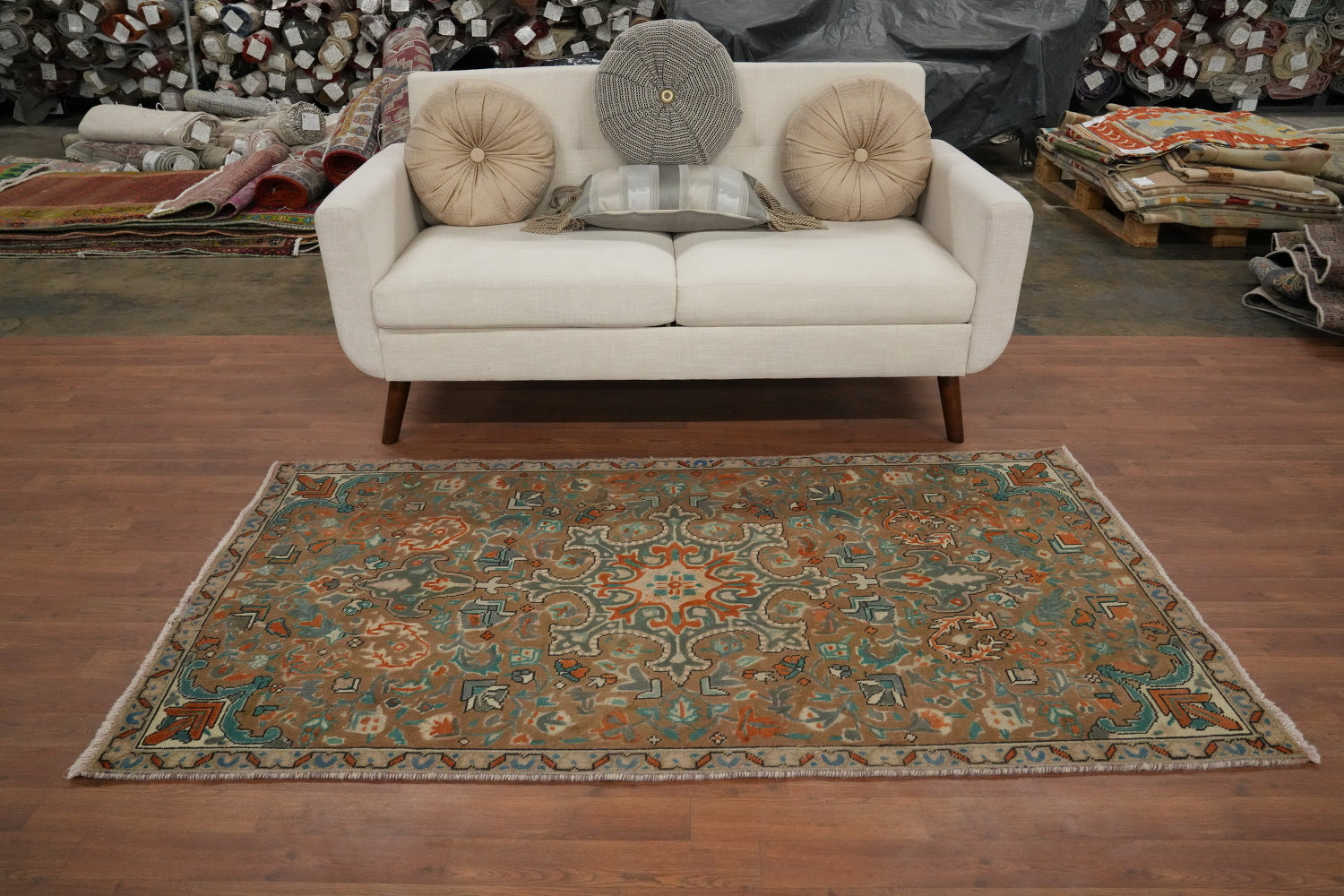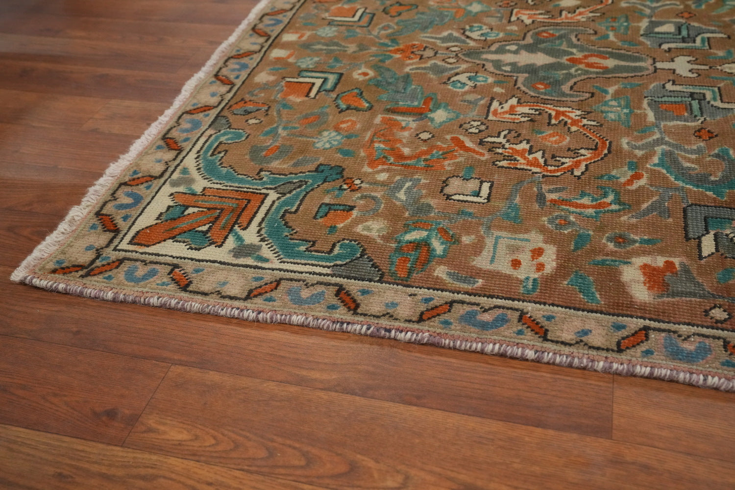 A Beautiful Genuine Persia ( Persia ) Heriz rug is Hand Knotted by skillful weavers in Persia ( Persia ) with 100% Wool Material. This rug is in Very Good ( Evenly Low Pile-Repair) condition. dimensions are 6' 5'' X 3' 5'' in foot and 196 X 104 in centimeter. the primary color is Brown.