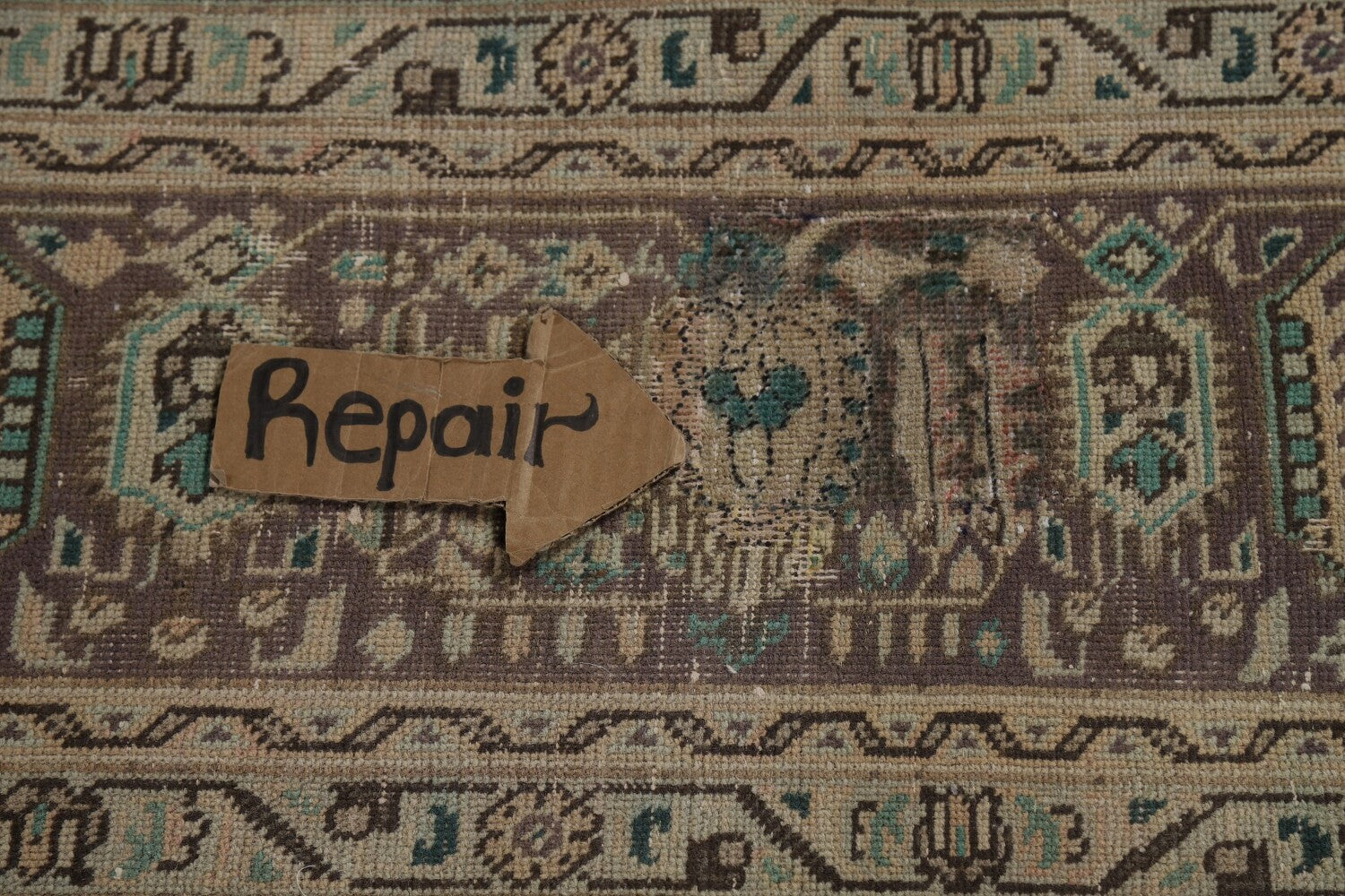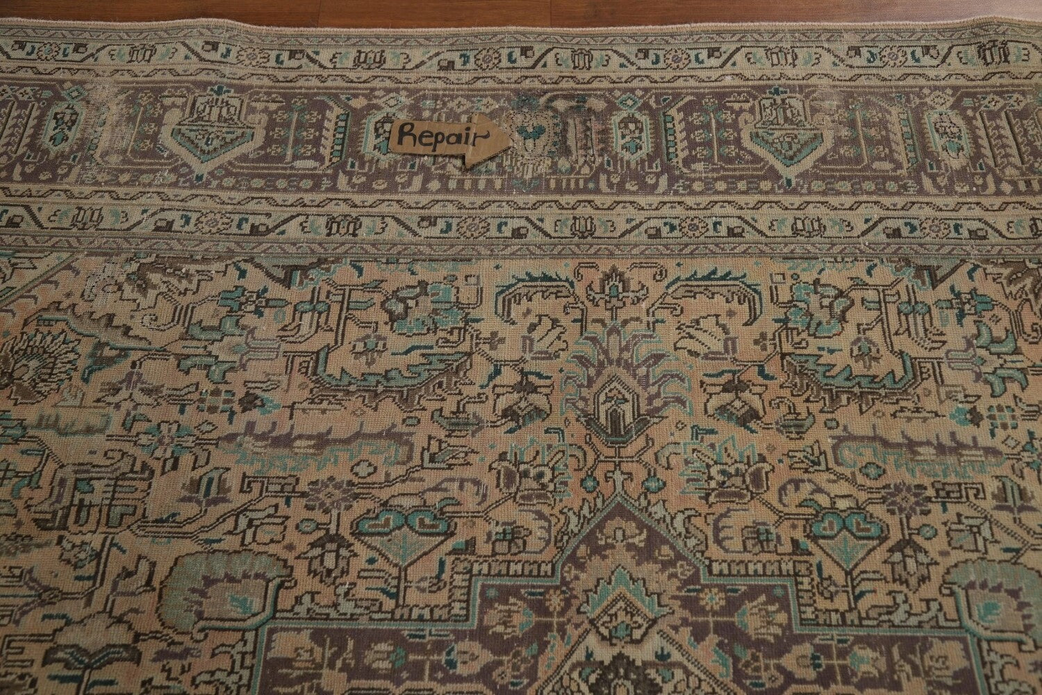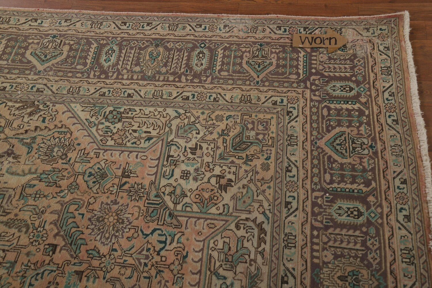A Beautiful Genuine Persia ( Persia ) Tabriz rug is Hand Knotted by skillful weavers in Persia ( Persia ) with 100% Wool Material. This rug is in Very Good (Evenly Low Pile-Worn-Repair) condition. dimensions are 11' 3'' X 8' 4'' in foot and 343 X 254 in centimeter. the primary color is Peach.