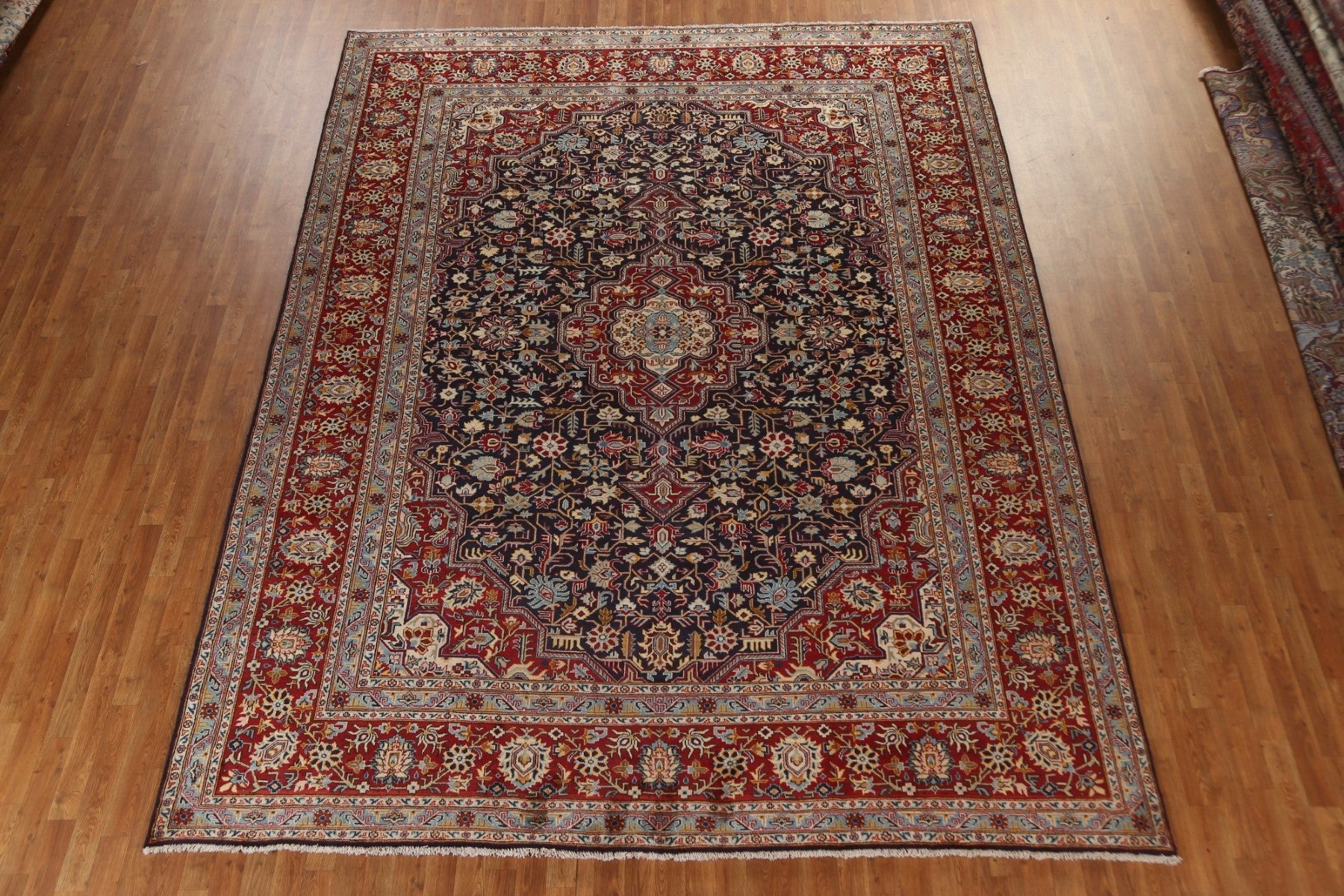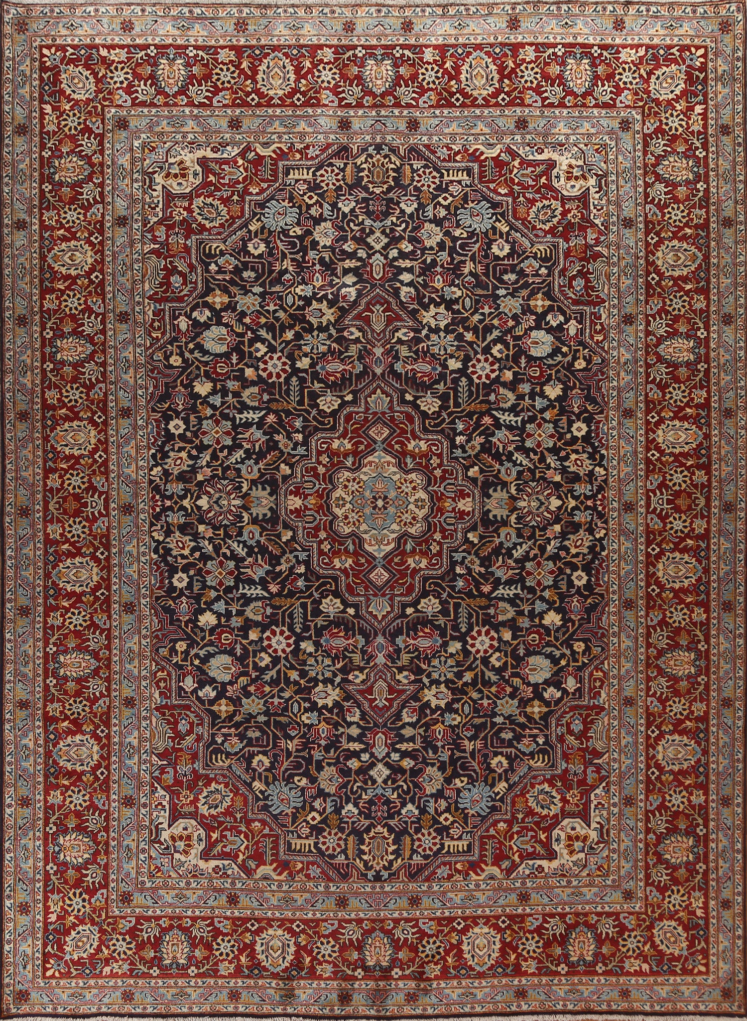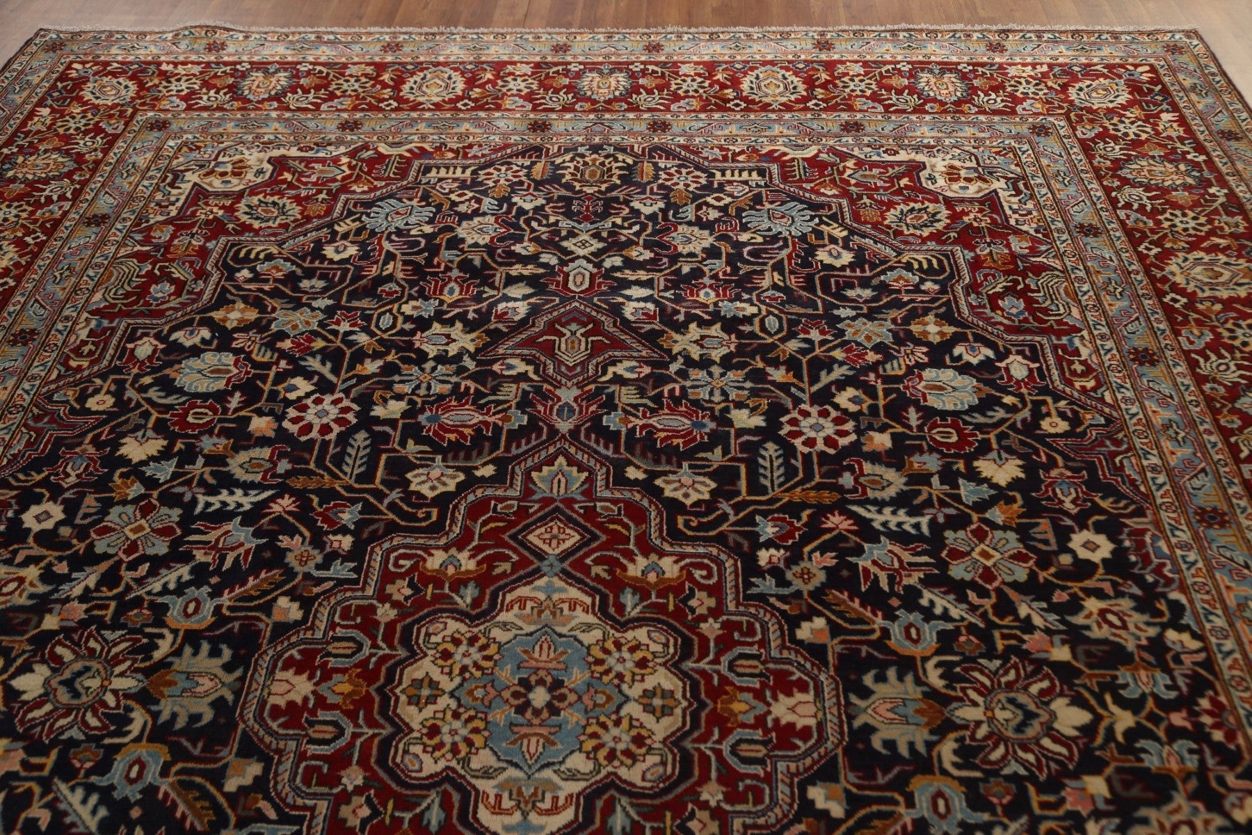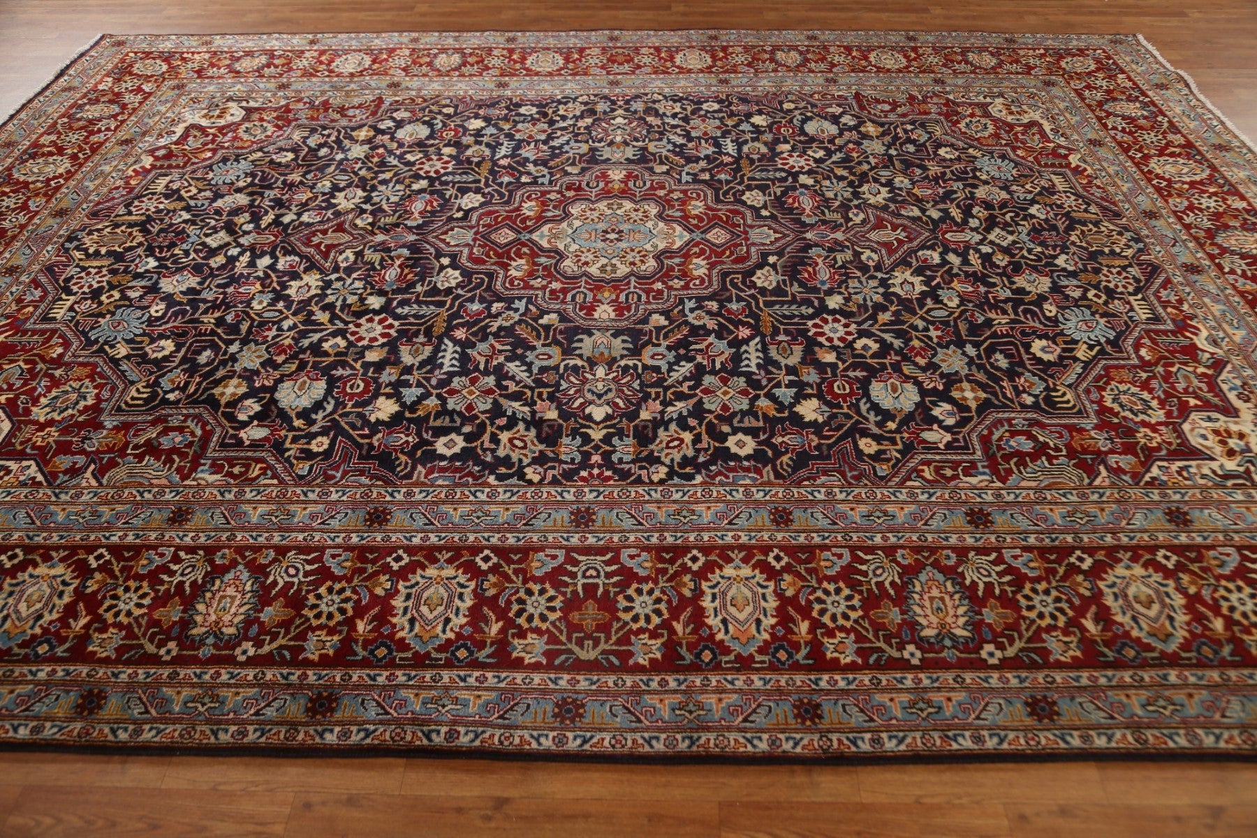 A Beautiful Genuine Persia ( Persia ) Najafabad rug is Hand Knotted by skillful weavers in Persia ( Persia ) with 100% Wool Material. This rug is in Very Good condition. dimensions are 12' 6'' X 9' 6'' in foot and 381 X 290 in centimeter. the primary color is Navy Blue & Blues.