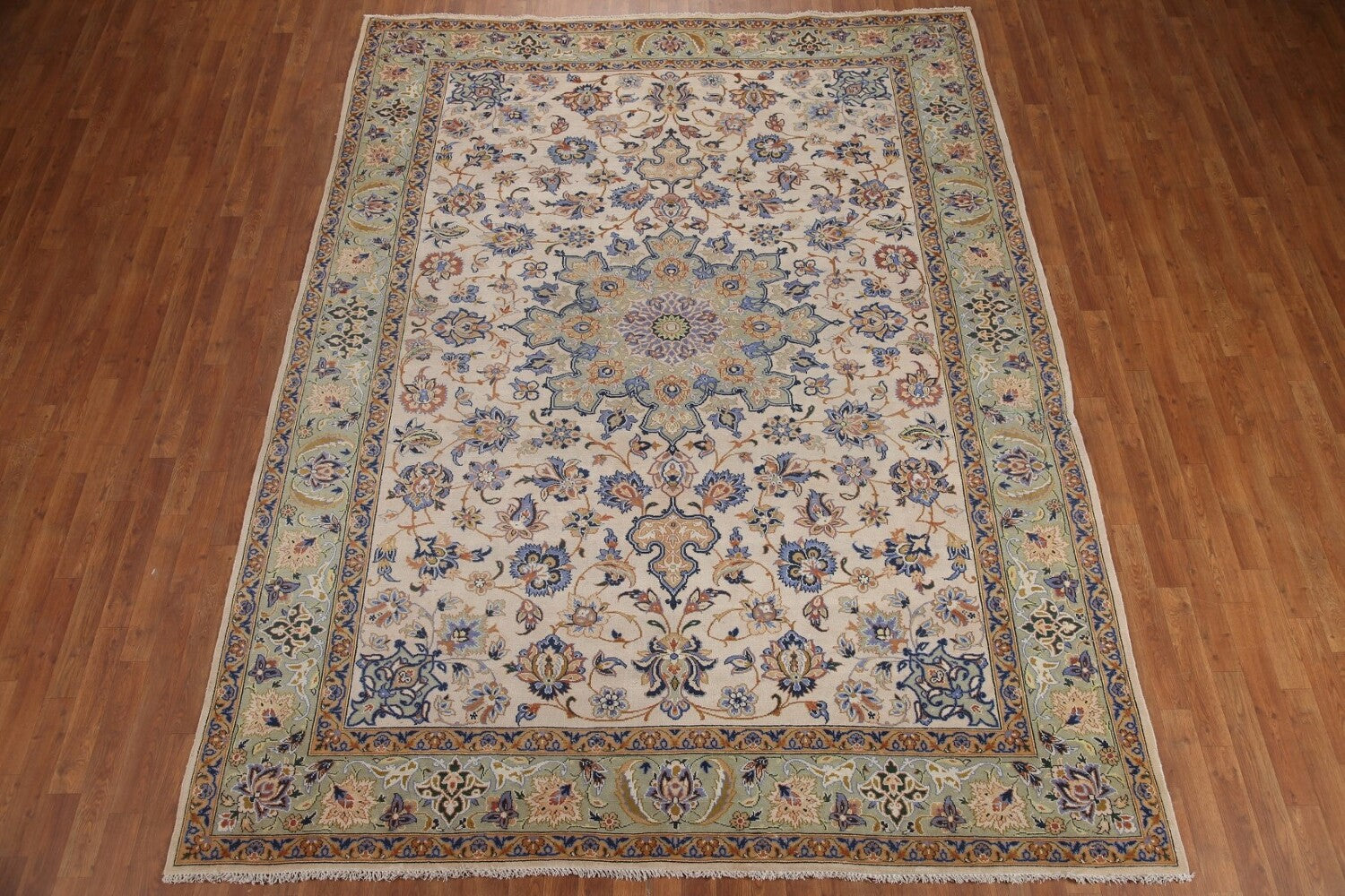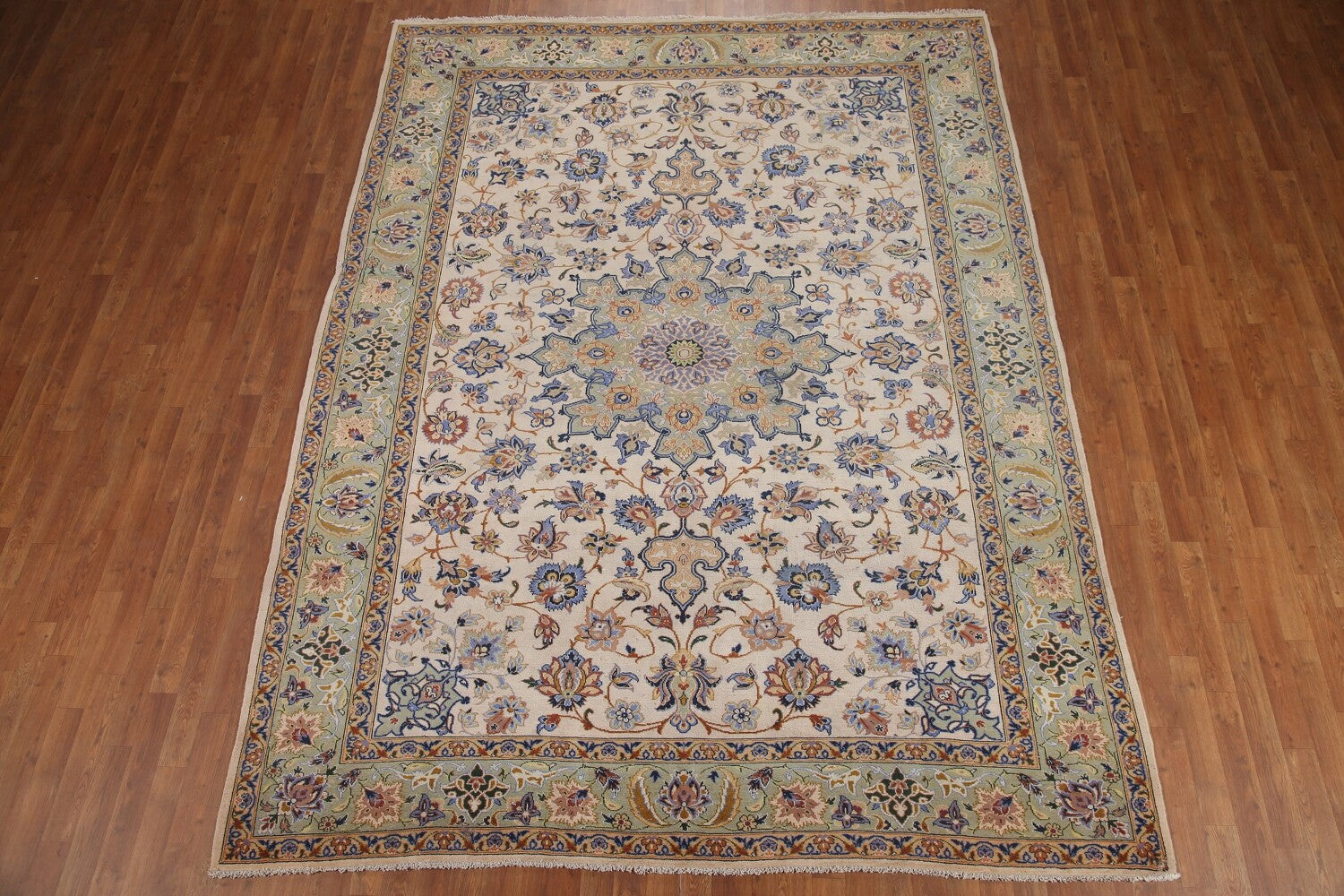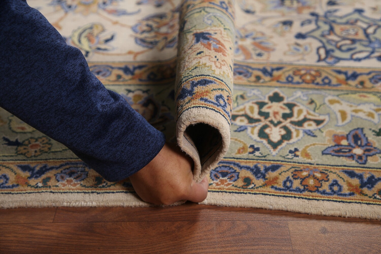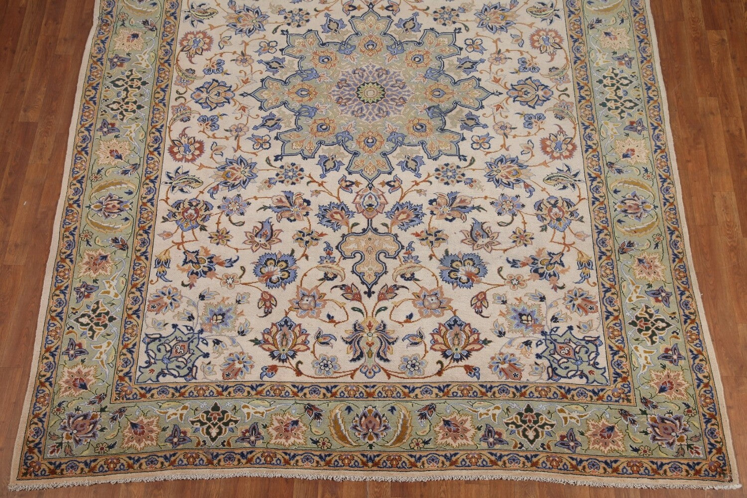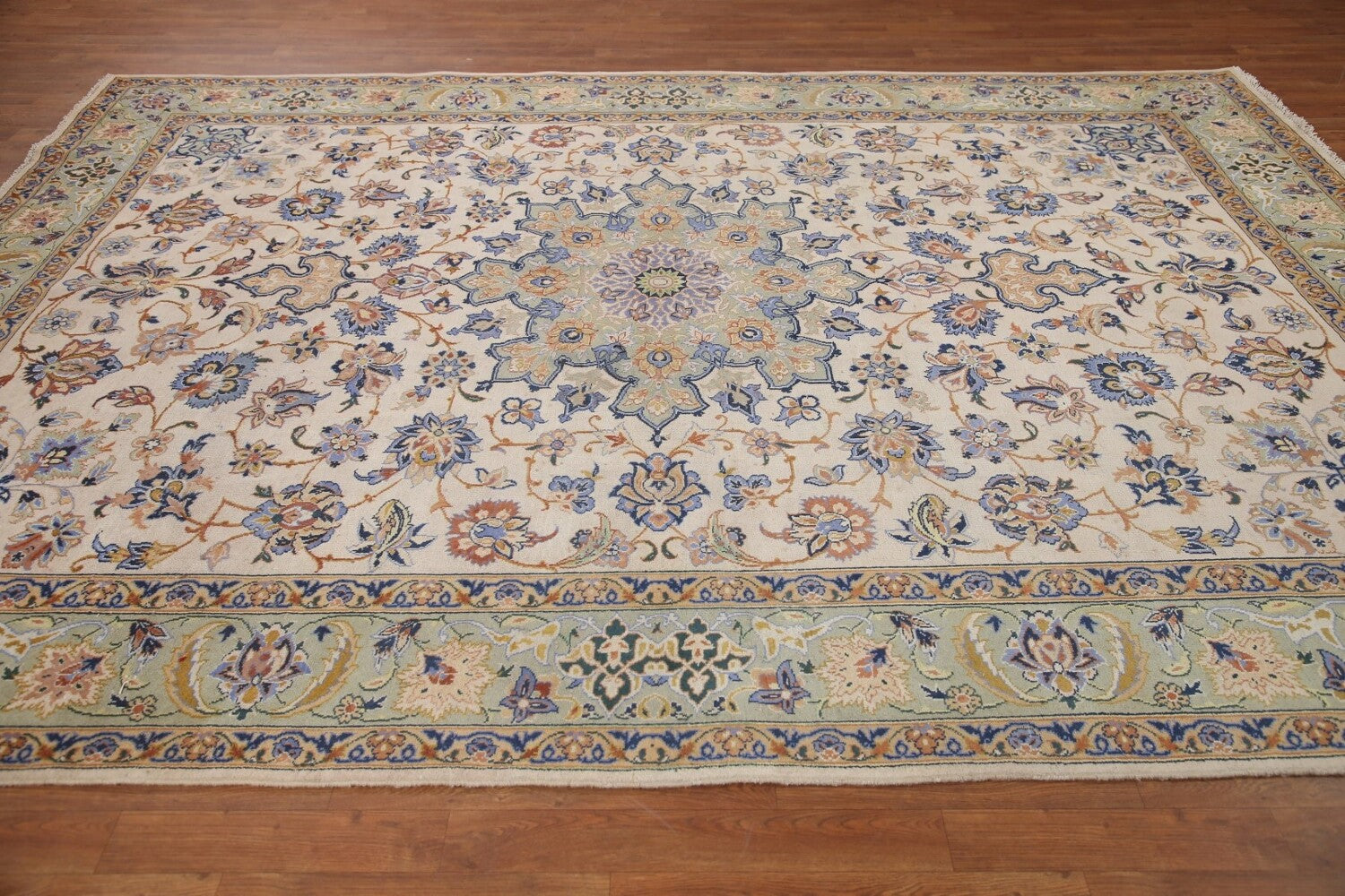 A Beautiful Genuine Persia ( Persia ) Najafabad rug is Hand Knotted by skillful weavers in Persia ( Persia ) with 100% Wool Material. This rug is in Very Good (Low Pile-Small Repair) condition. dimensions are 10' 9'' X 8' 2'' in foot and 328 X 249 in centimeter. the primary color is Beige & Ivories.