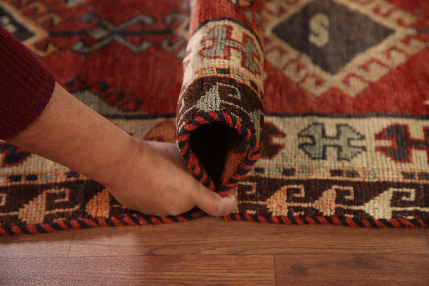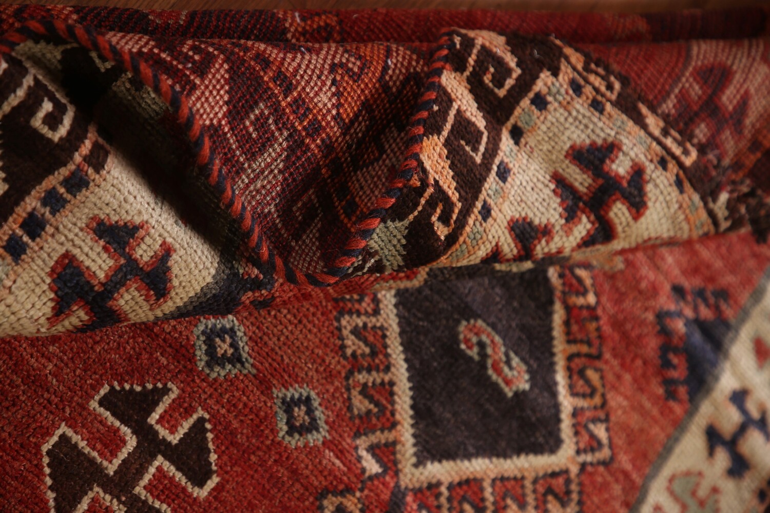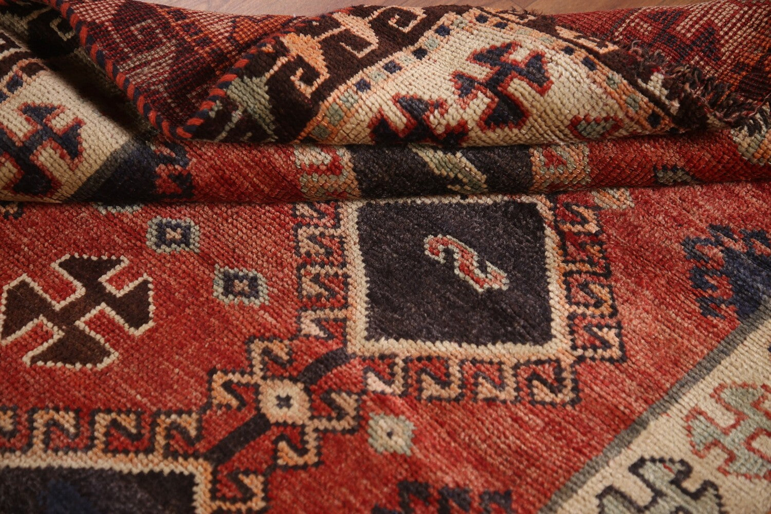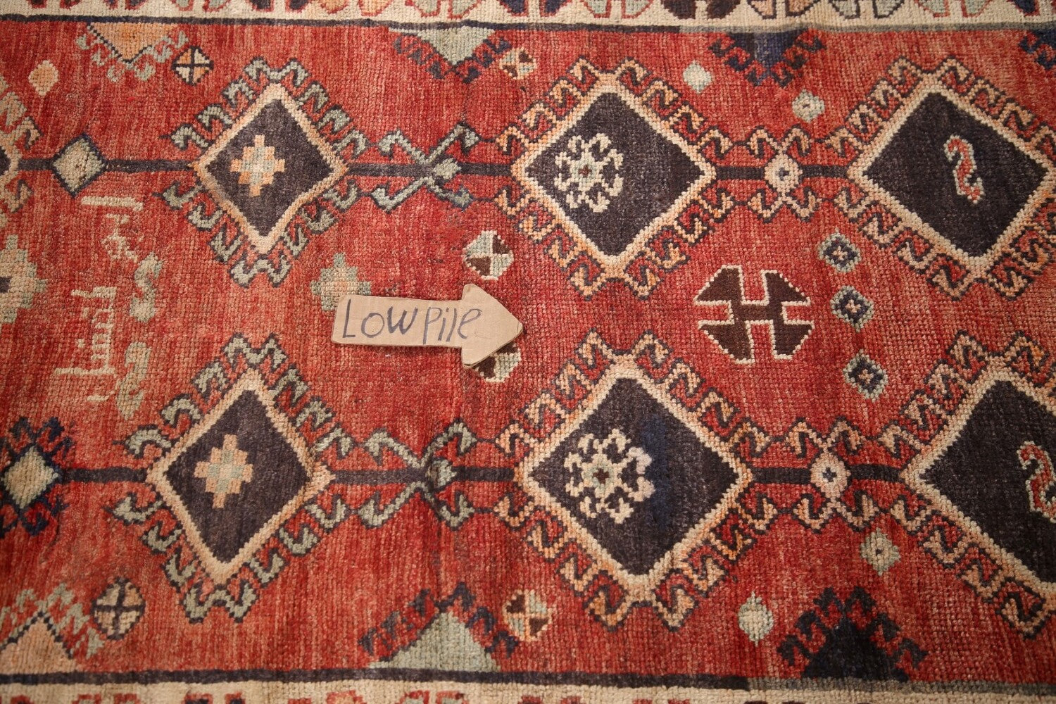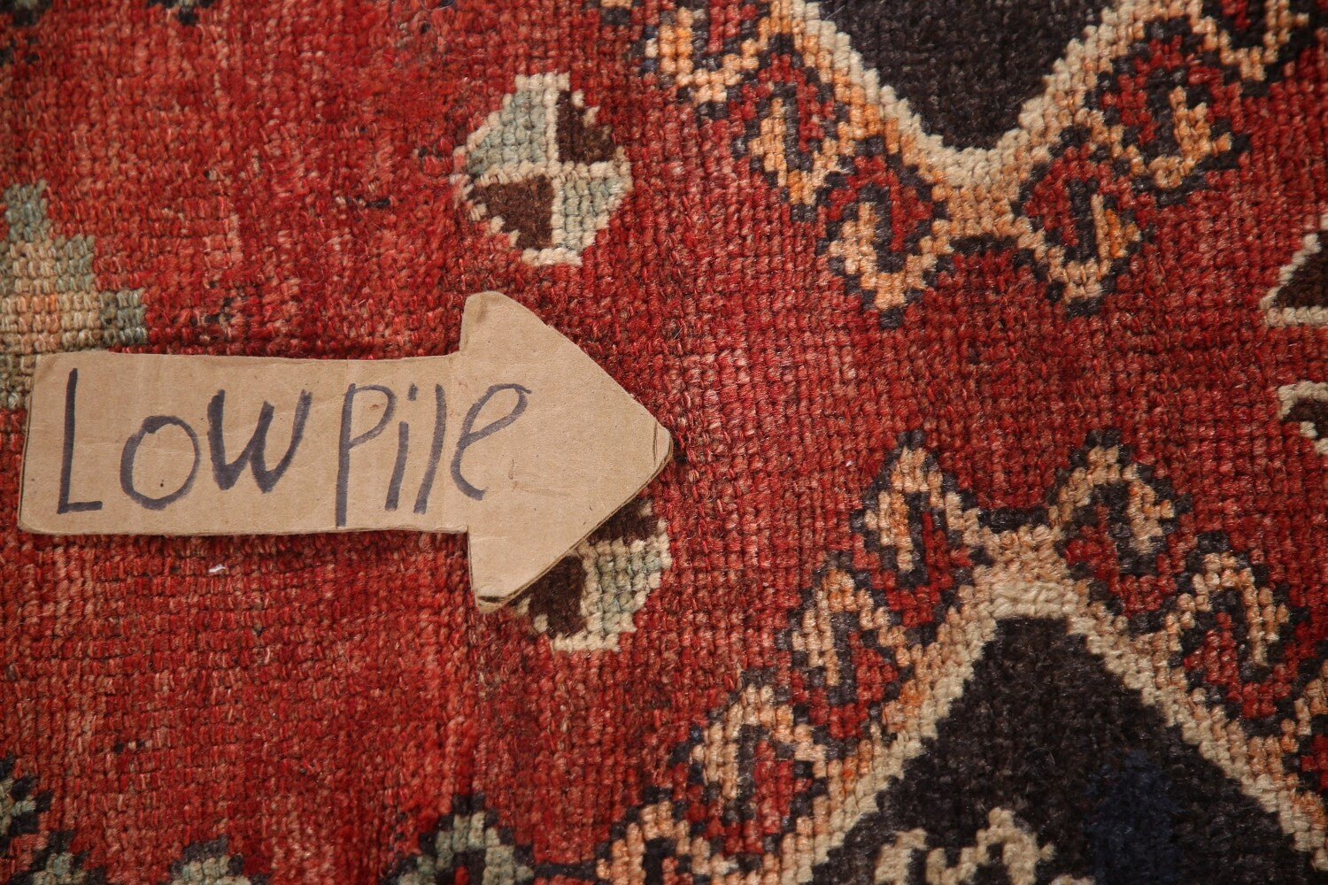 A Beautiful Genuine Persia ( Persia ) Qashqai rug is Hand Knotted by skillful weavers in Persia ( Persia ) with 100% Wool Material. This rug is in Very Good ( Low Pile ) condition. dimensions are 7' 8'' X 3' 9'' in foot and 234 X 114 in centimeter. the primary color is Red.
