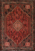 A Beautiful Genuine Persia ( Persia ) Qashqai rug is Hand Knotted by skillful weavers in Persia ( Persia ) with 100% Wool Material. This rug is in Very Good condition. dimensions are 7' 8'' X 5' 2'' in foot and 234 X 157 in centimeter. the primary color is Red.