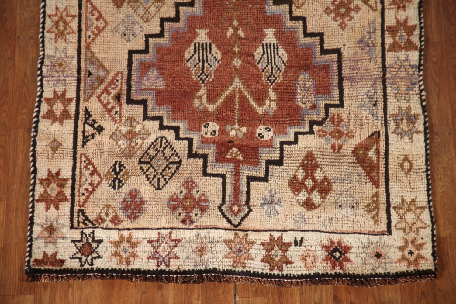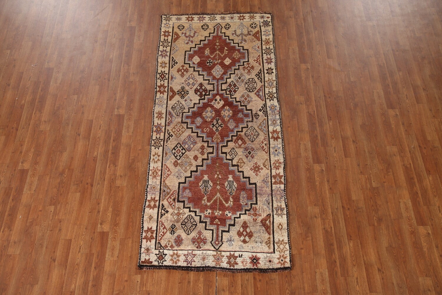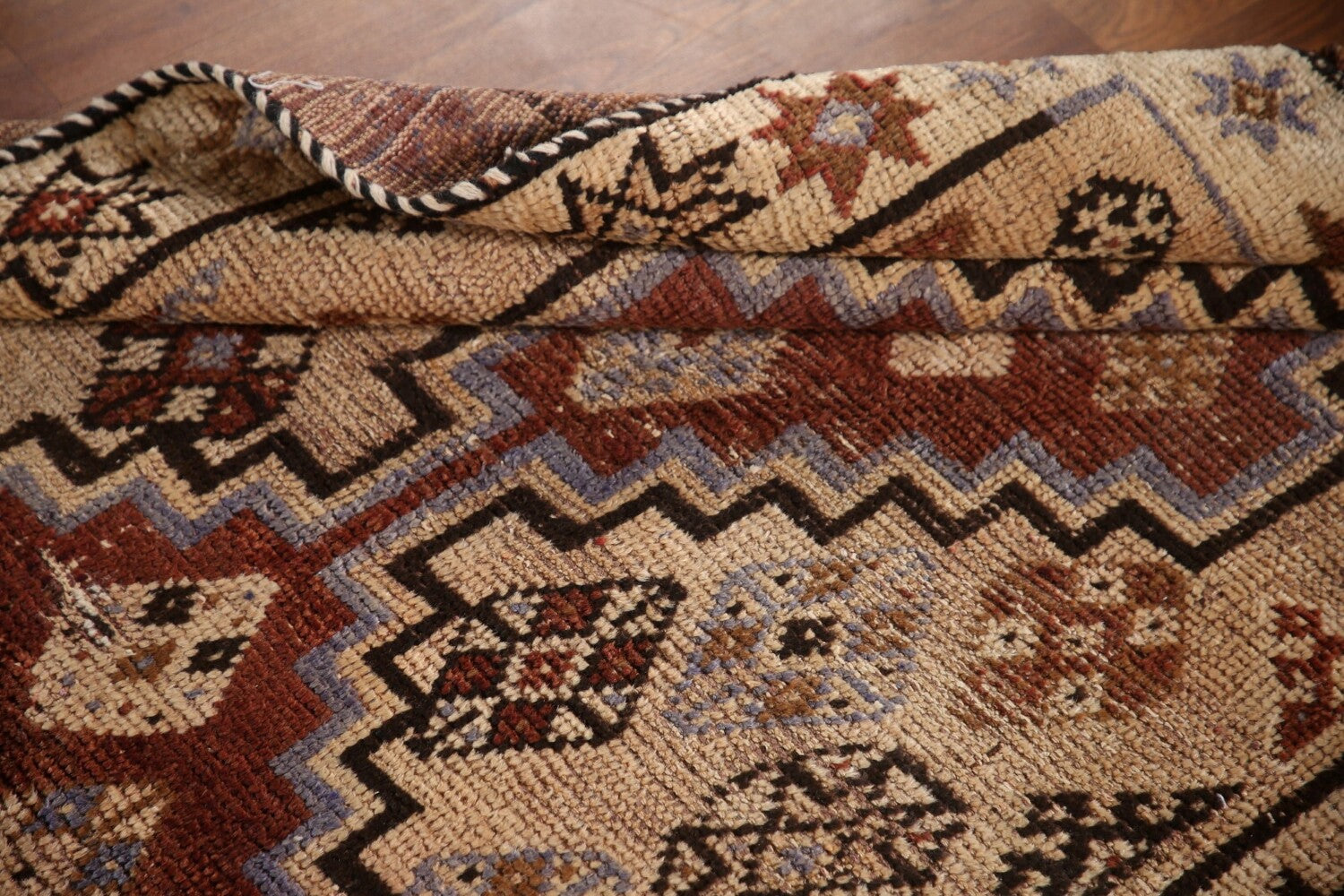 A Beautiful Genuine Persia ( Persia ) Qashqai rug is Hand Knotted by skillful weavers in Persia ( Persia ) with 100% Wool Material. This rug is in Very Good (Evenly Low Pile) condition. dimensions are 7' 11'' X 3' 6'' in foot and 241 X 107 in centimeter. the primary color is Peach.