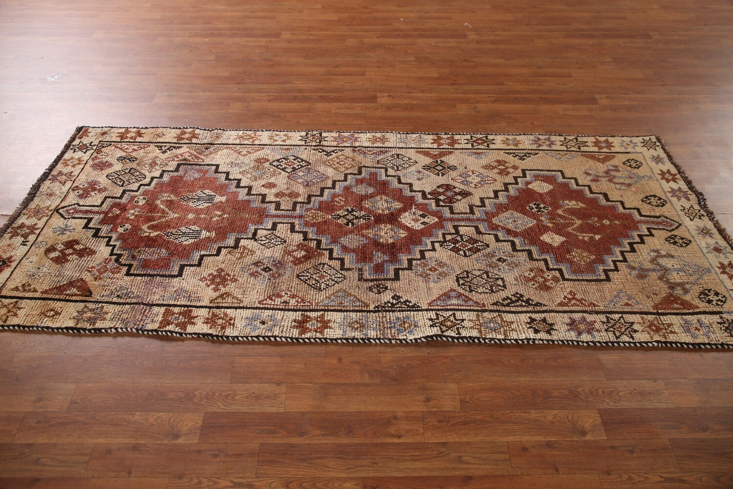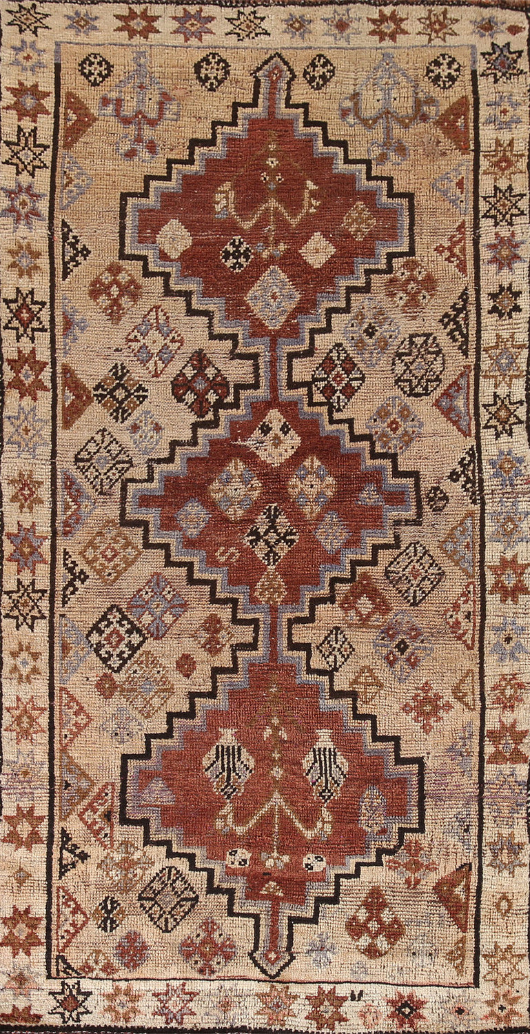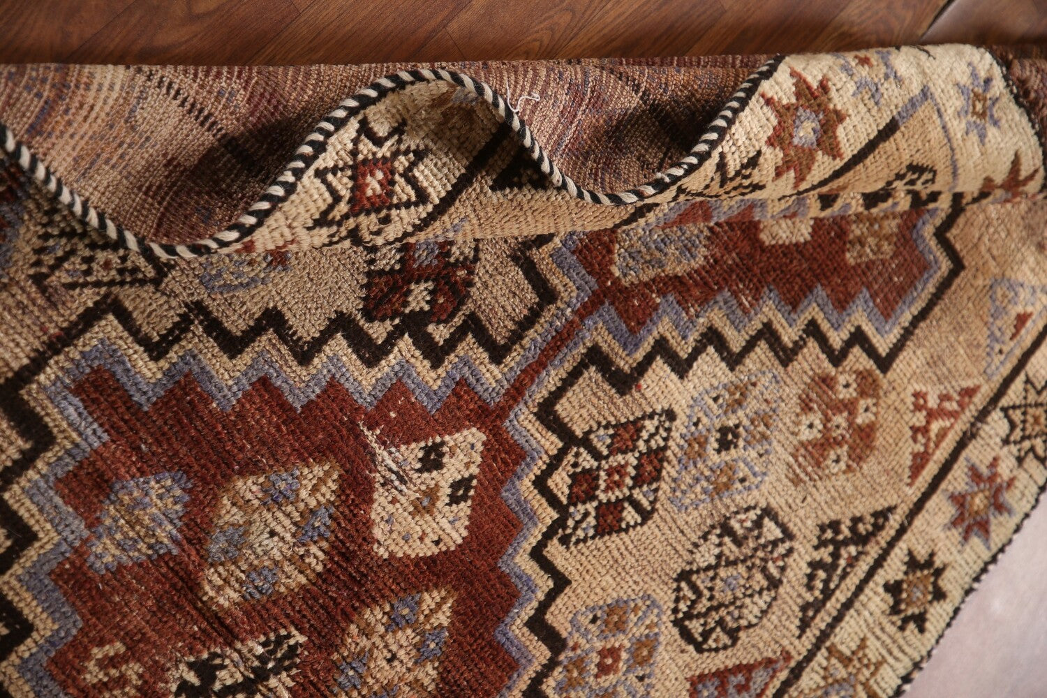 A Beautiful Genuine Persia ( Persia ) Qashqai rug is Hand Knotted by skillful weavers in Persia ( Persia ) with 100% Wool Material. This rug is in Very Good (Evenly Low Pile) condition. dimensions are 7' 11'' X 3' 6'' in foot and 241 X 107 in centimeter. the primary color is Peach.