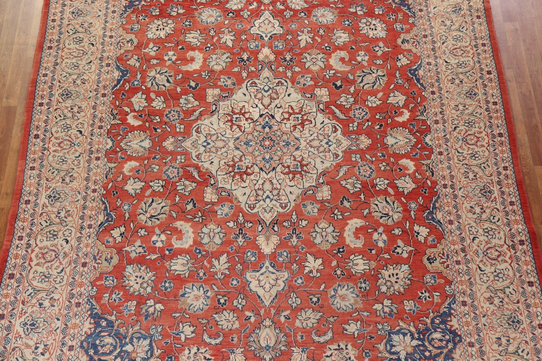 A Beautiful Genuine Persia ( Persia ) Sarouk rug is Hand Knotted by skillful weavers in Persia ( Persia ) with 100% Wool Material. This rug is in Very Good condition. dimensions are 12' 0'' X 8' 9'' in foot and 366 X 267 in centimeter. the primary color is Red.