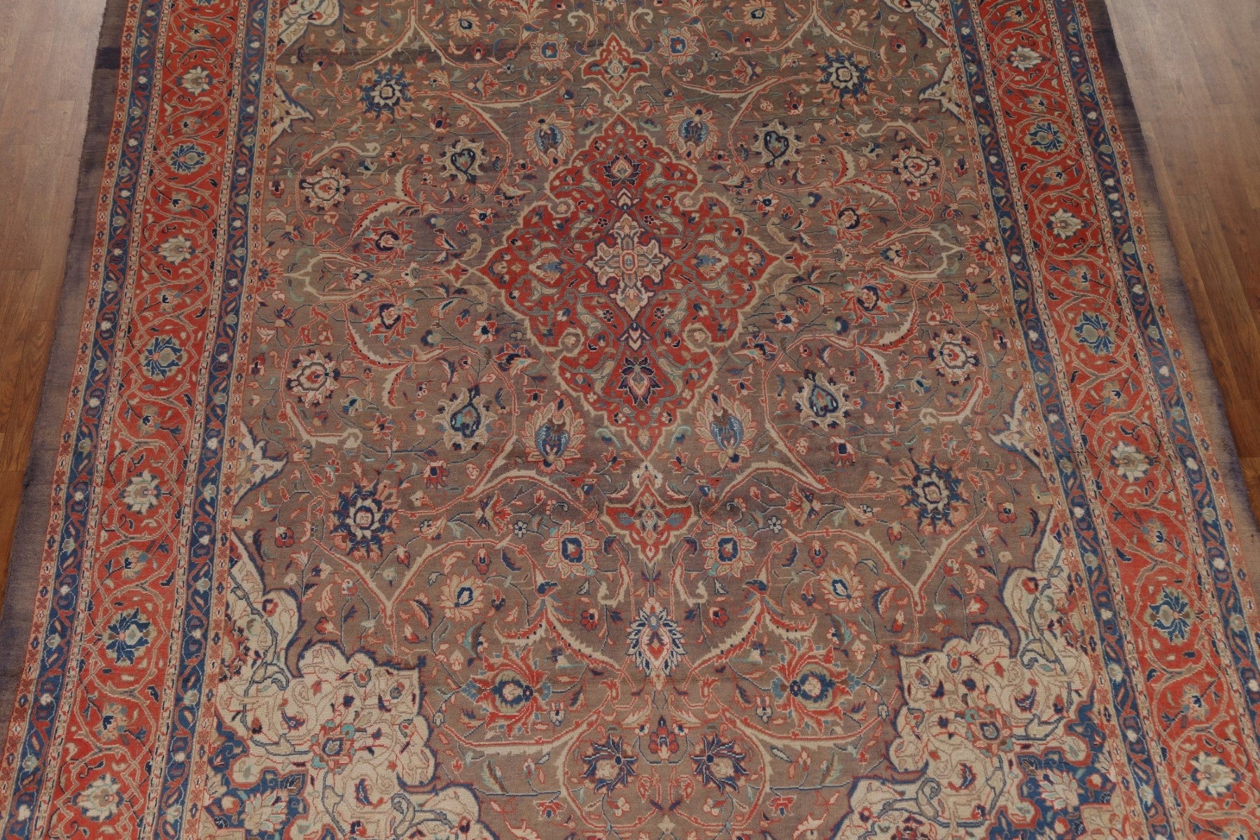 A Beautiful Genuine Persia ( Persia ) Sarouk rug is Hand Knotted by skillful weavers in Persia ( Persia ) with 100% Wool Material. This rug is in Very Good (Abrash) condition. dimensions are 12' 7'' X 8' 7'' in foot and 384 X 262 in centimeter. the primary color is Brown.