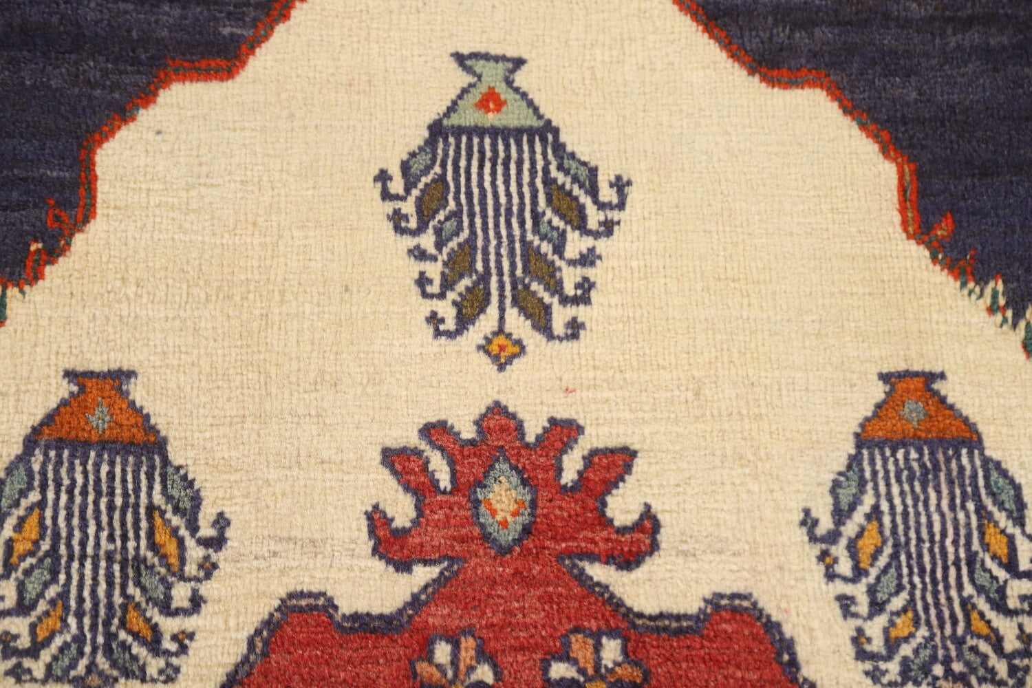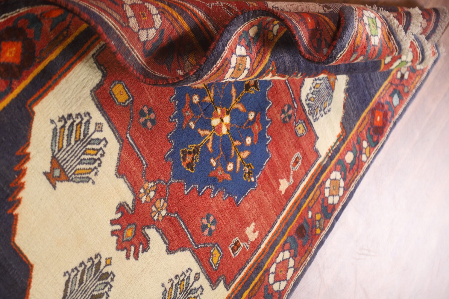 A Beautiful Genuine Persia ( Persia ) Shiraz rug is Hand Knotted by skillful weavers in Persia ( Persia ) with 100% Wool Material. This rug is in Excellent condition. dimensions are 5' 10'' X 3' 4'' in foot and 178 X 102 in centimeter. the primary color is Beige & Ivories.