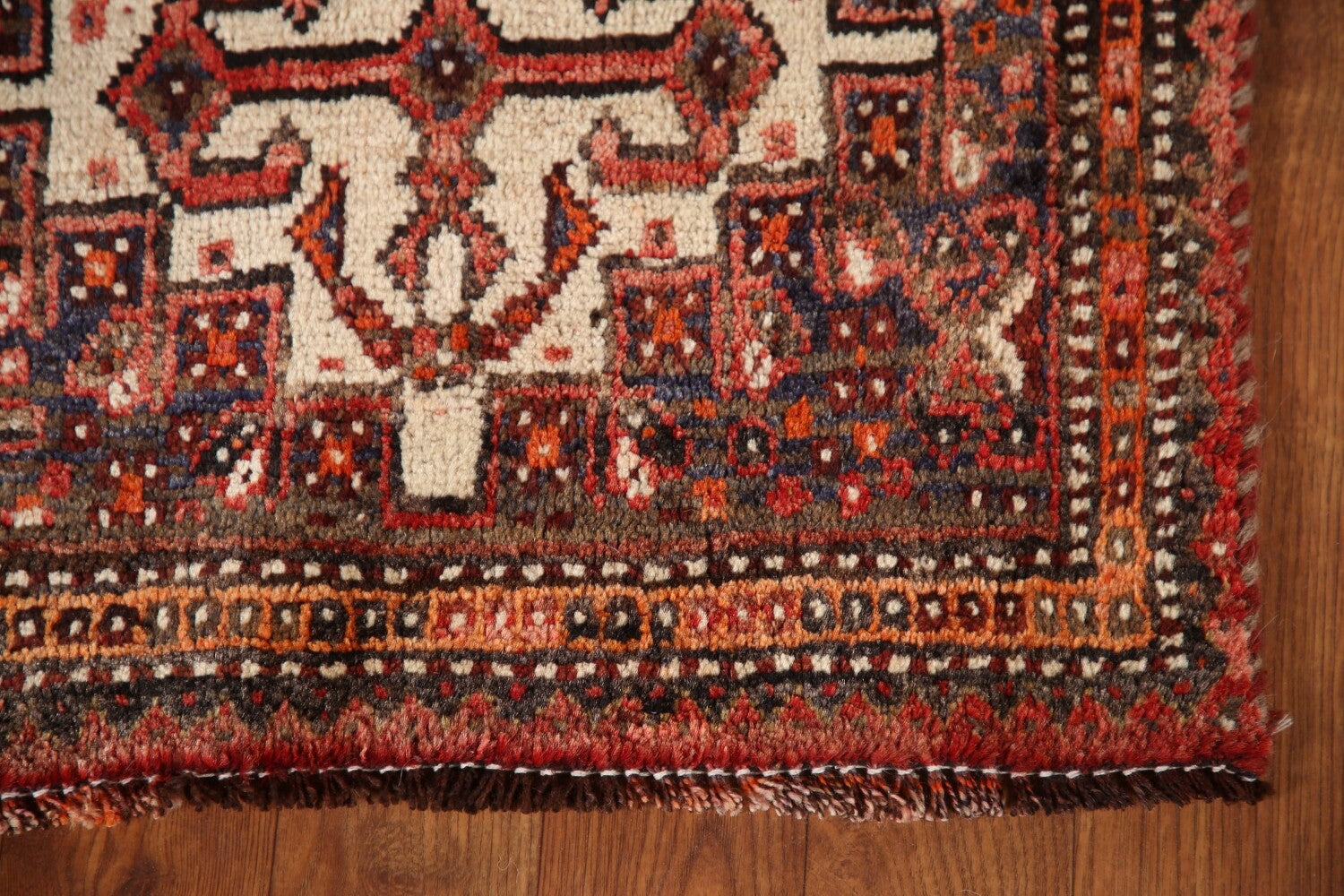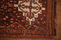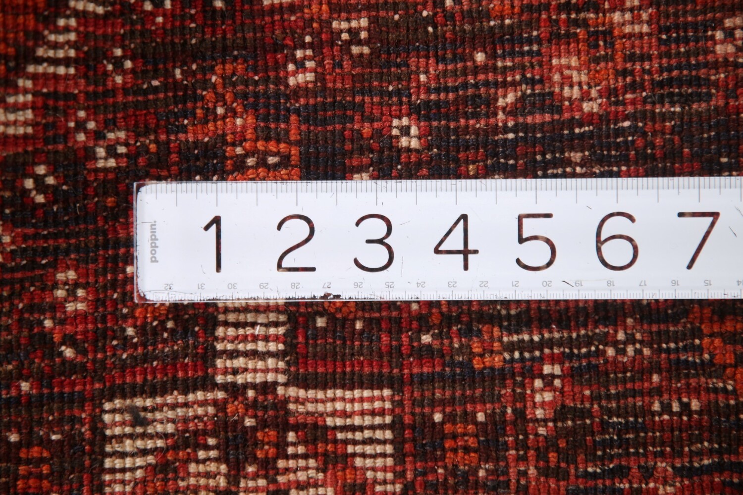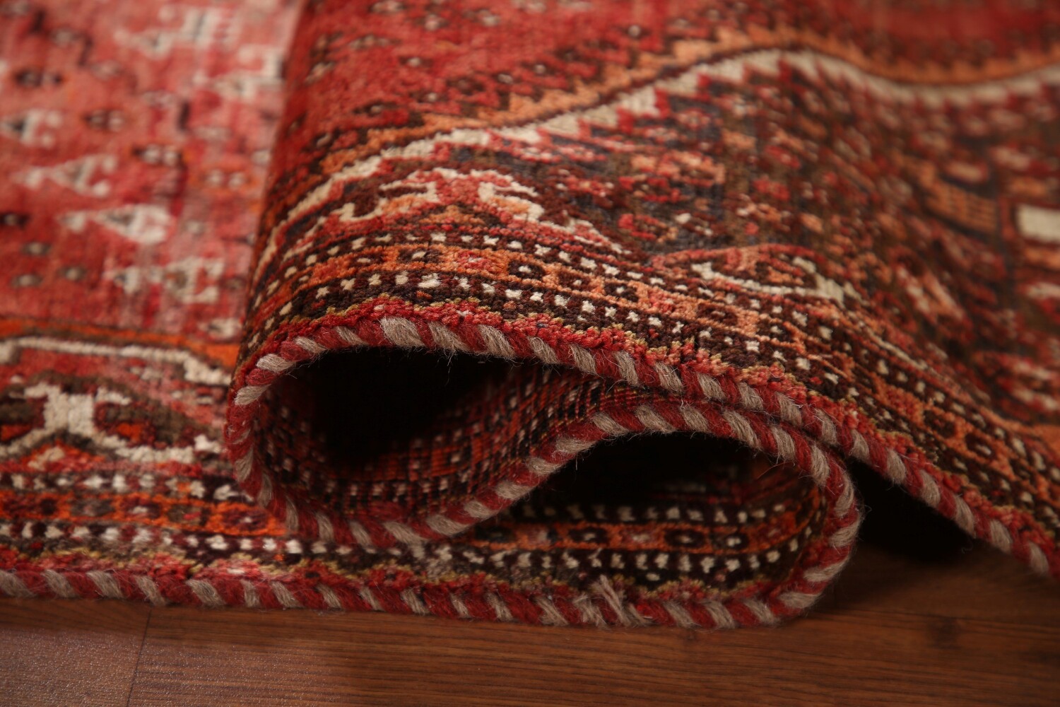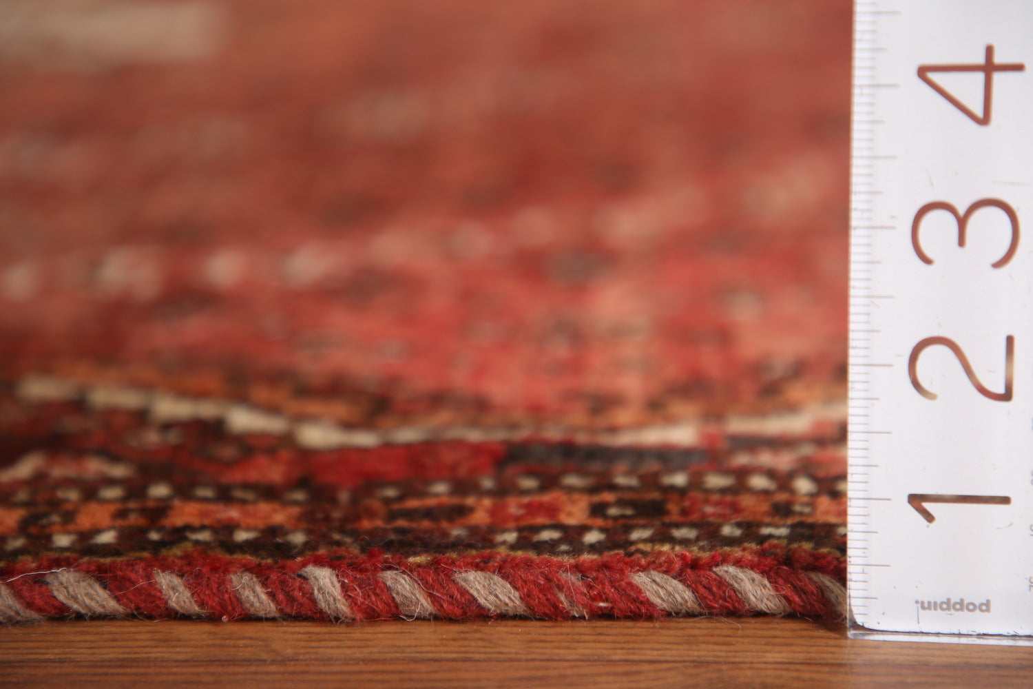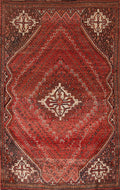 A Beautiful Genuine Persia ( Persia ) Shiraz rug is Hand Knotted by skillful weavers in Persia ( Persia ) with 100% Wool Material. This rug is in Very Good (Abrash) condition. dimensions are 7' 4'' X 4' 9'' in foot and 224 X 145 in centimeter. the primary color is Red.