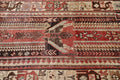 A Beautiful Genuine Persia ( Persia ) Shiraz rug is Hand Knotted by skillful weavers in Persia ( Persia ) with 100% Wool Material. This rug is in Very Good (Abrash) condition. dimensions are 9' 5'' X 3' 7'' in foot and 287 X 109 in centimeter. the primary color is Red.