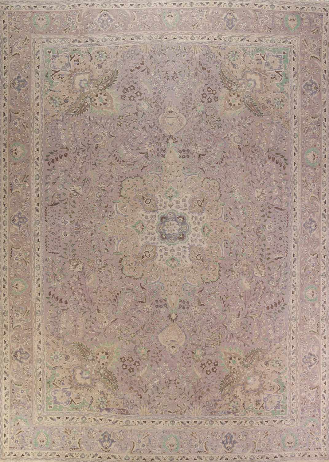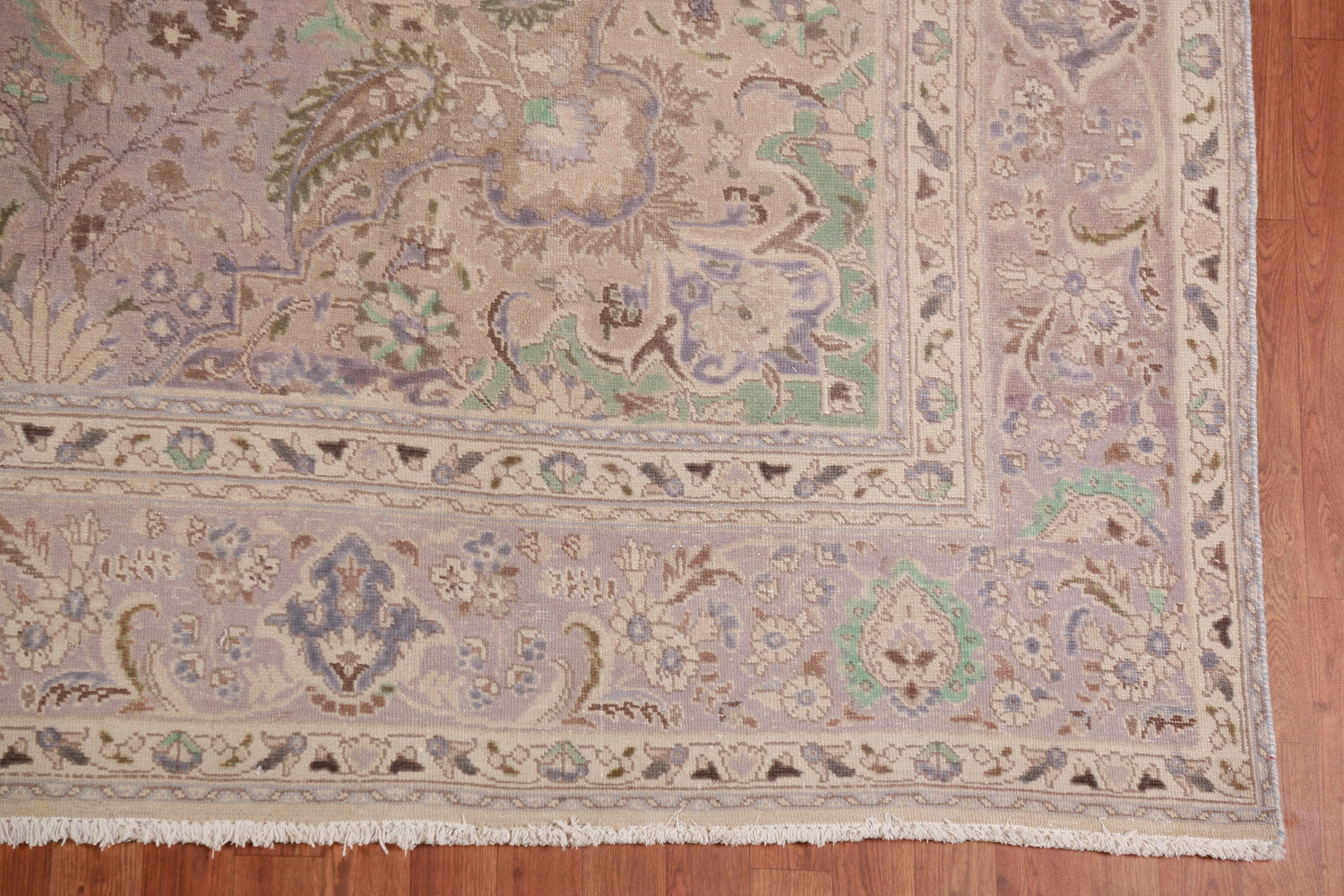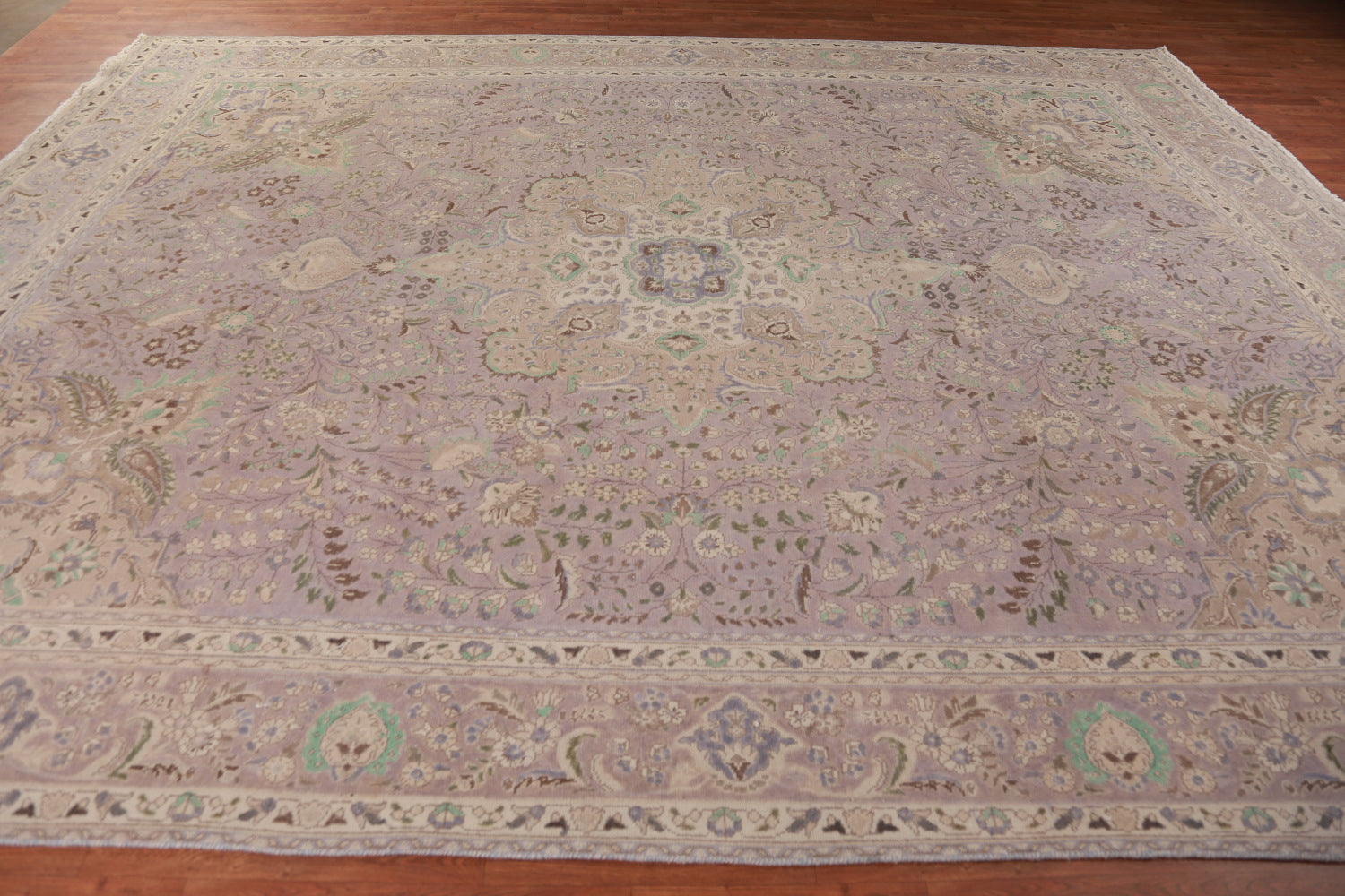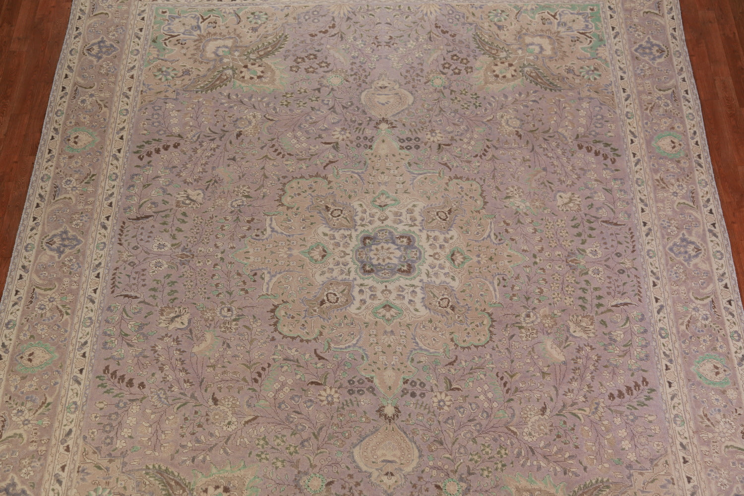 A Beautiful Genuine Persia ( Persia ) Tabriz rug is Hand Knotted by skillful weavers in Persia ( Persia ) with 100% Wool Material. This rug is in Very Good (Evenly Low Pile) condition. dimensions are 12' 11'' X 10' 0'' in foot and 394 X 305 in centimeter. the primary color is Purples.
