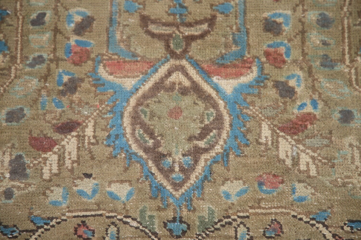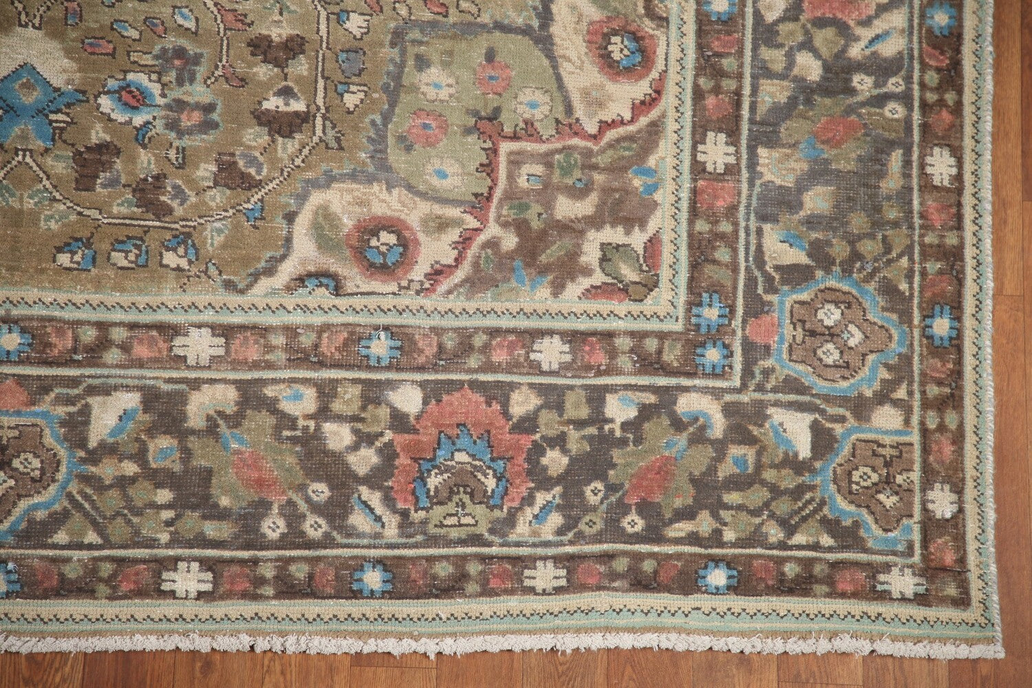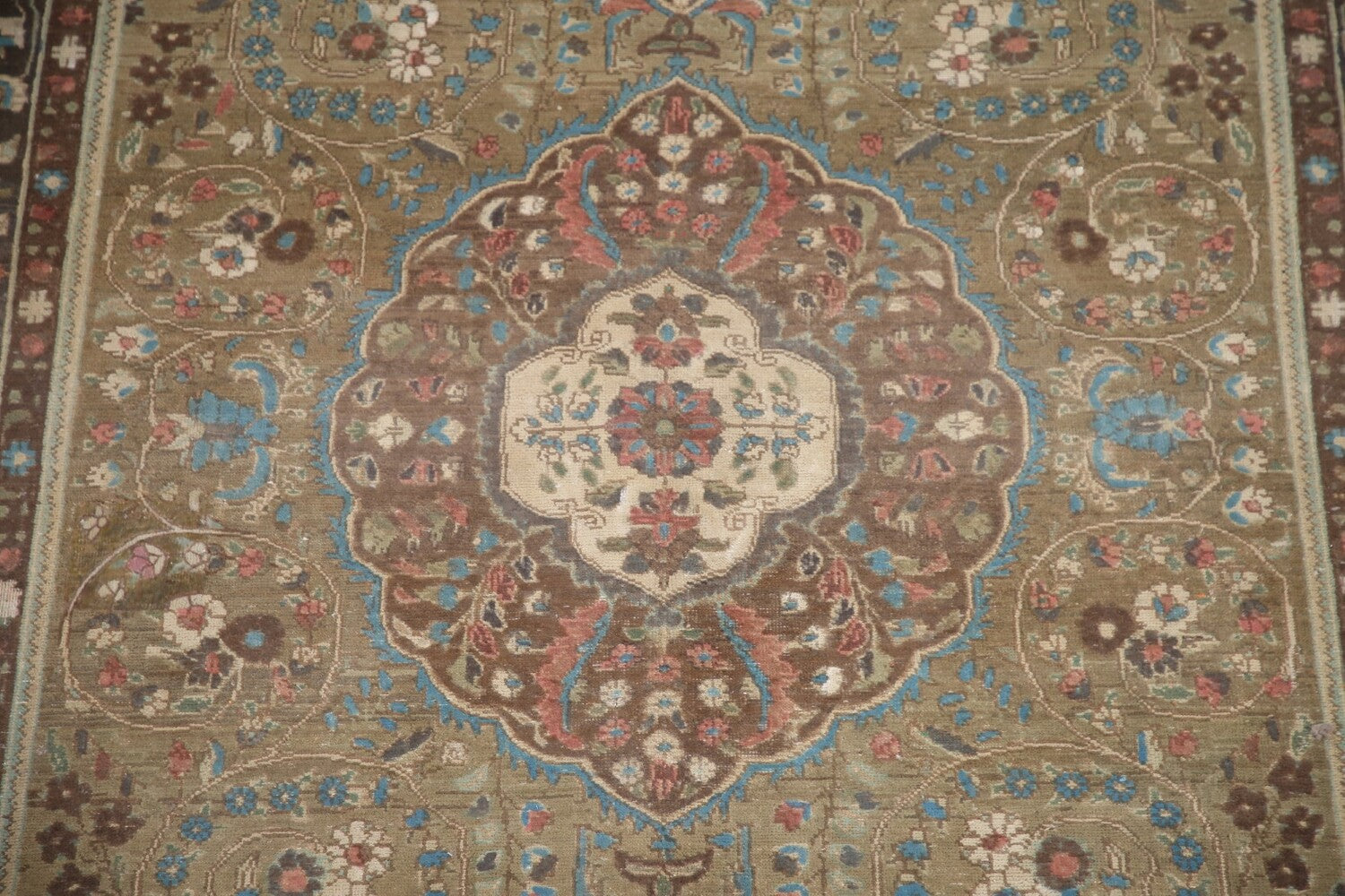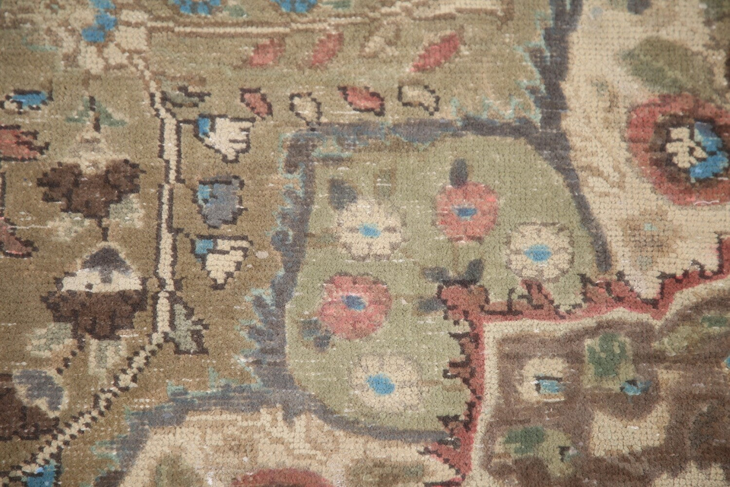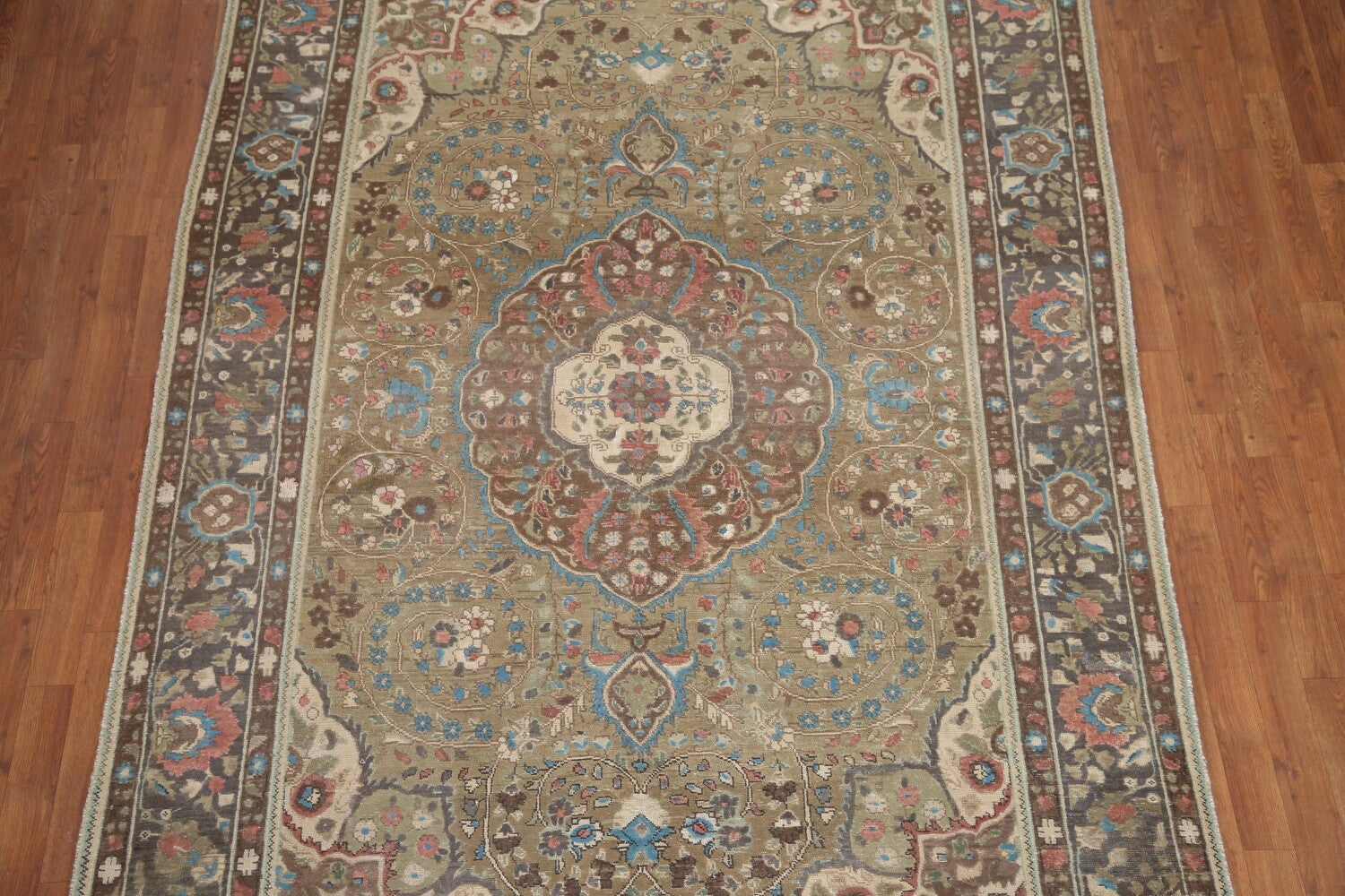 A Beautiful Genuine Persia ( Persia ) Tabriz rug is Hand Knotted by skillful weavers in Persia ( Persia ) with 100% Wool Material. This rug is in Very Good (Evenly Low Pile-Repair) condition. dimensions are 9' 5'' X 6' 4'' in foot and 287 X 193 in centimeter. the primary color is Green.
