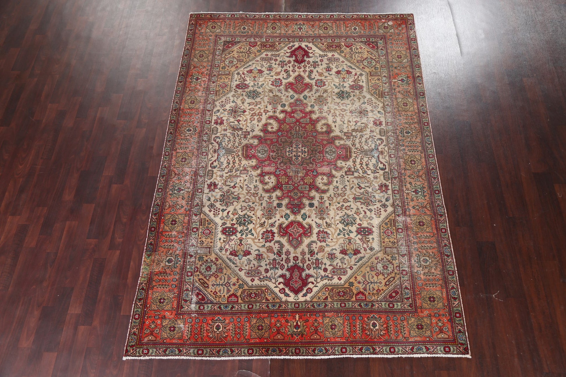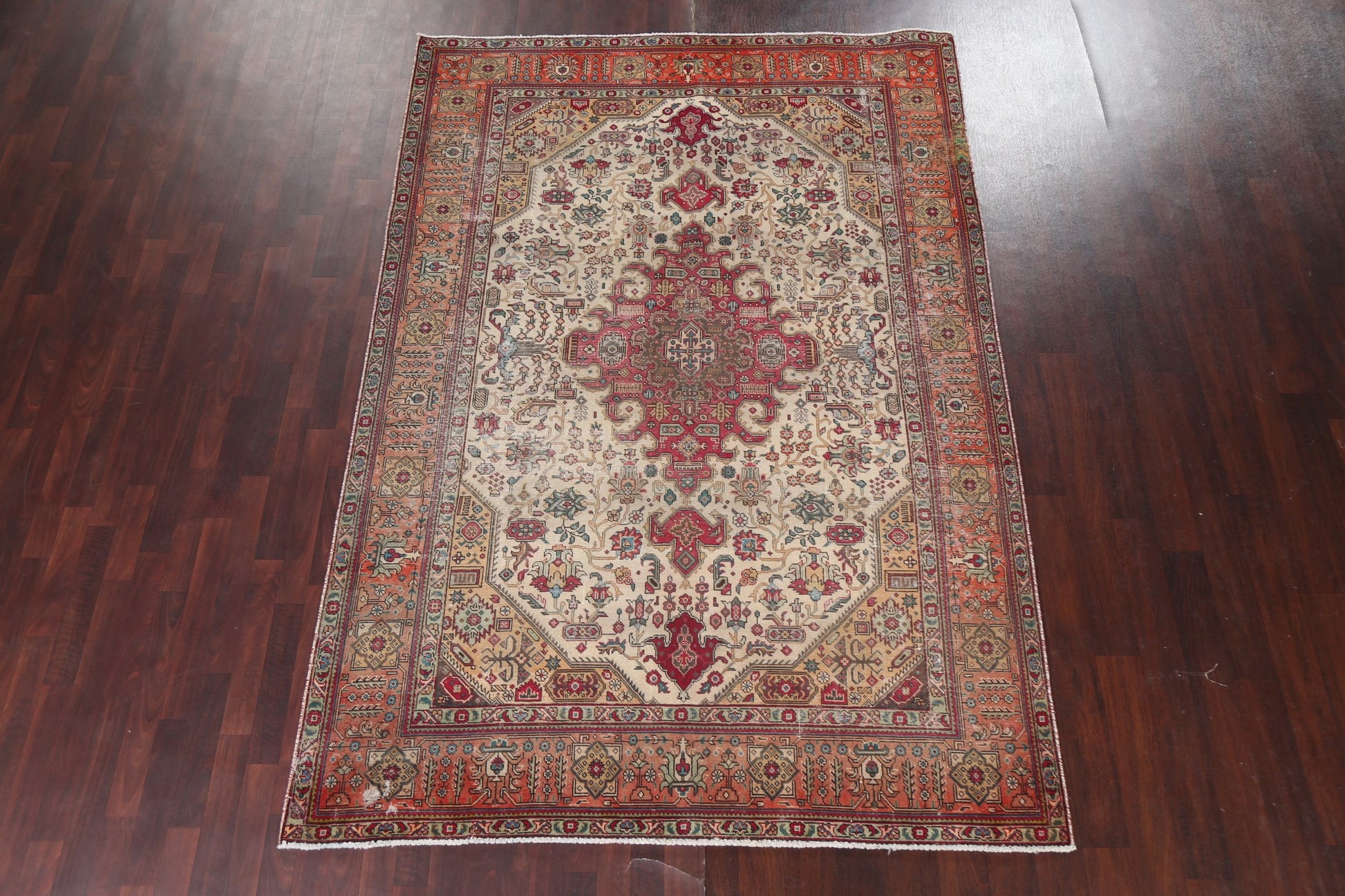 Vintage Wool Tabriz Persian Area Rug 7x10