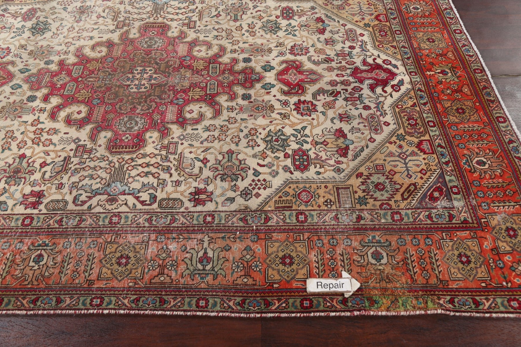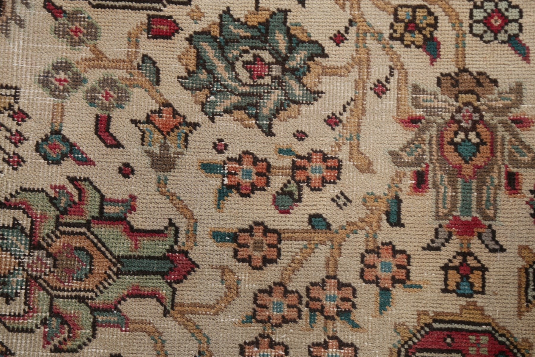 A Beautiful Genuine Persia ( Persia ) Tabriz rug is Hand Knotted by skillful weavers in Persia ( Persia ) with 100% Wool Material. This rug is in Very Good (Evenly Low Pile) condition. dimensions are 9' 7'' X 6' 7'' in foot and 292 X 201 in centimeter. the primary color is Beige & Ivories.