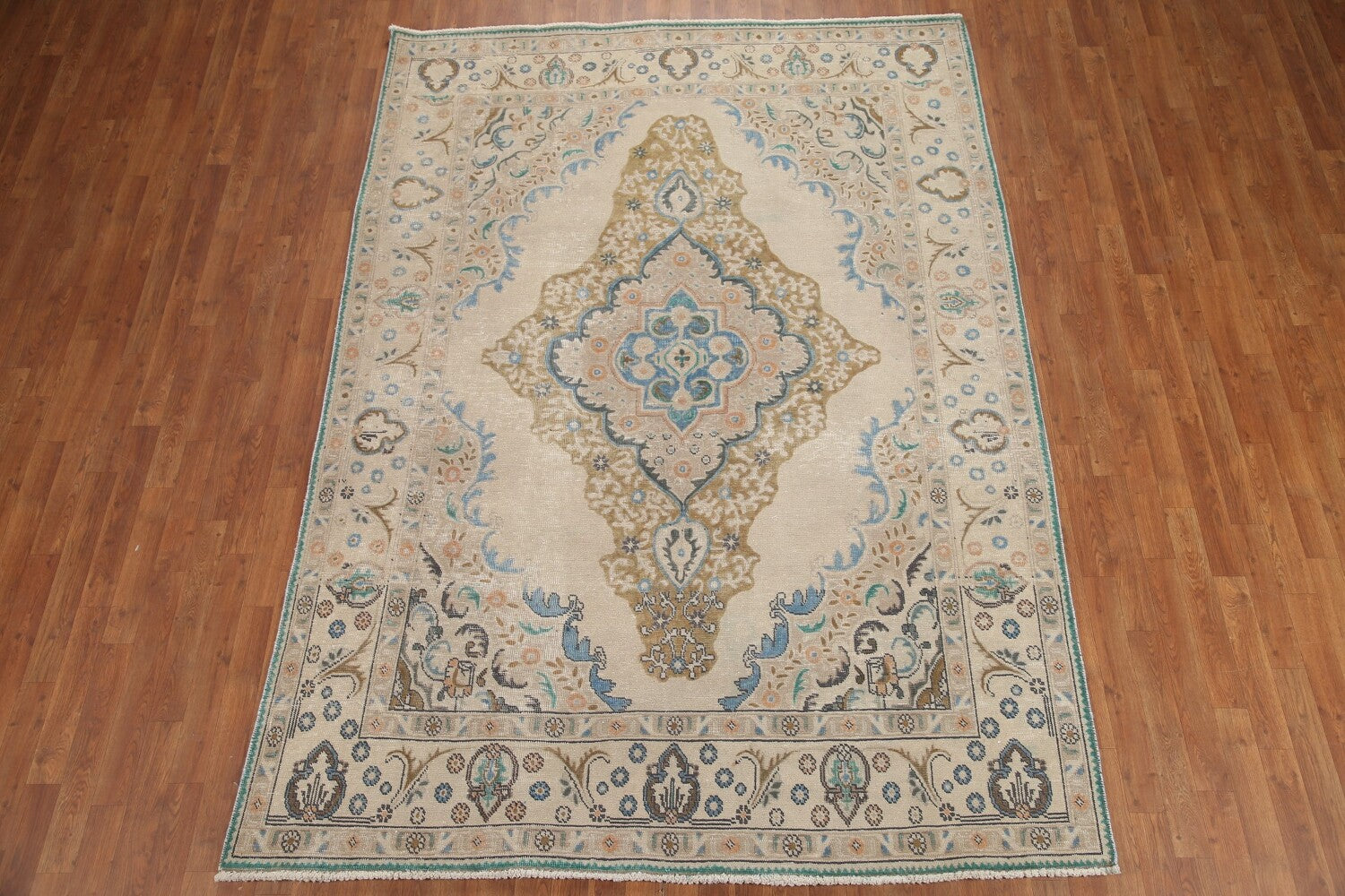 Vintage Wool Tabriz Persian Area Rug 7x9