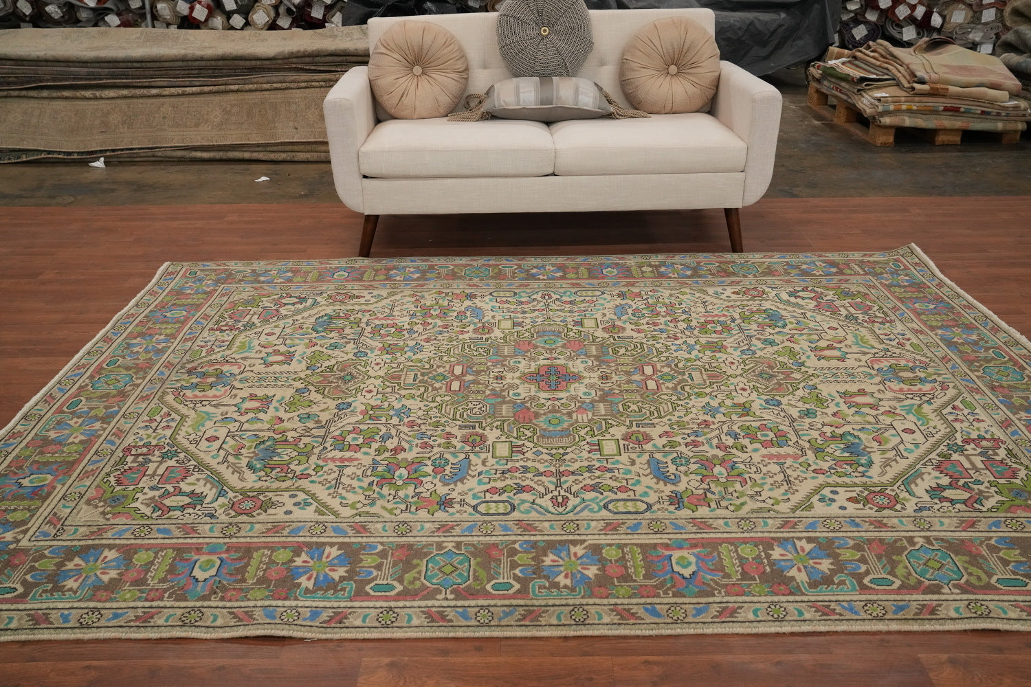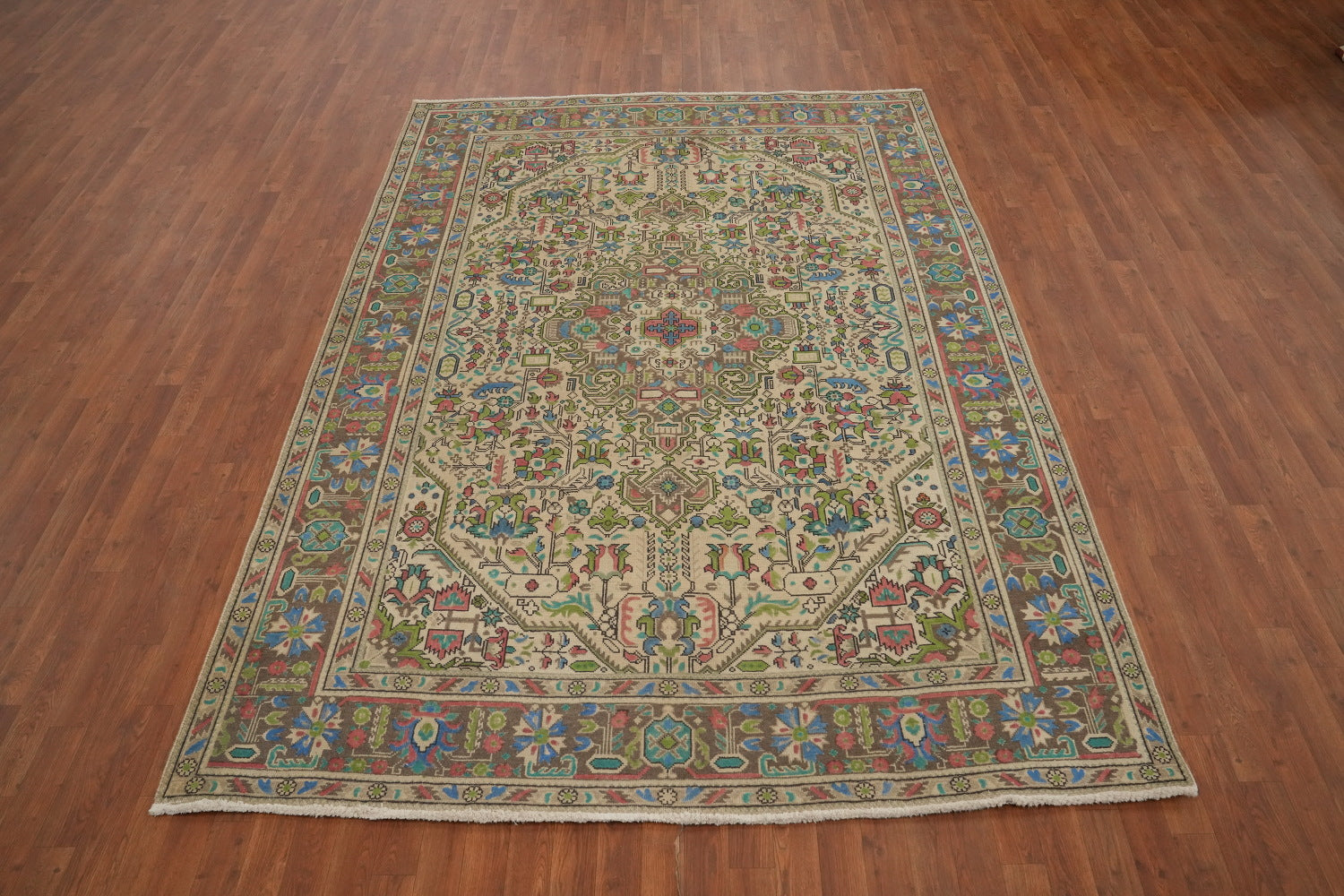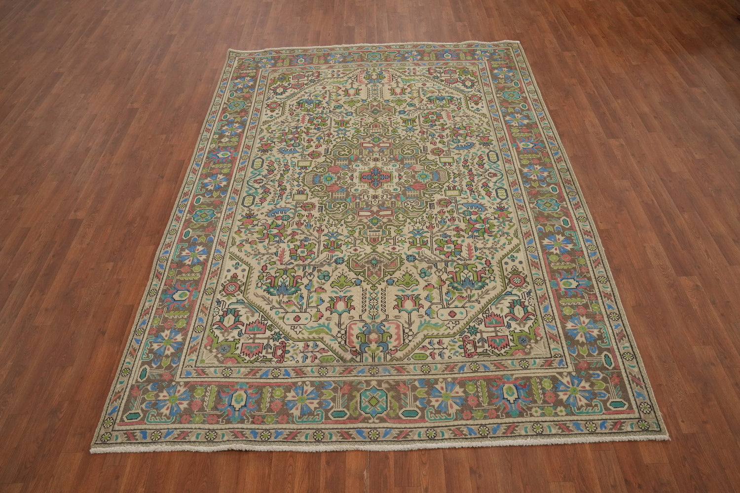 Vintage Wool Tabriz Persian Area Rug 7x9