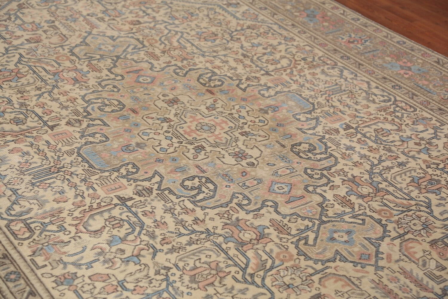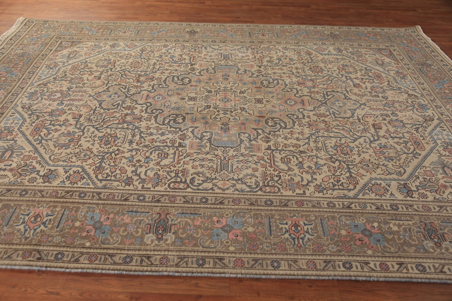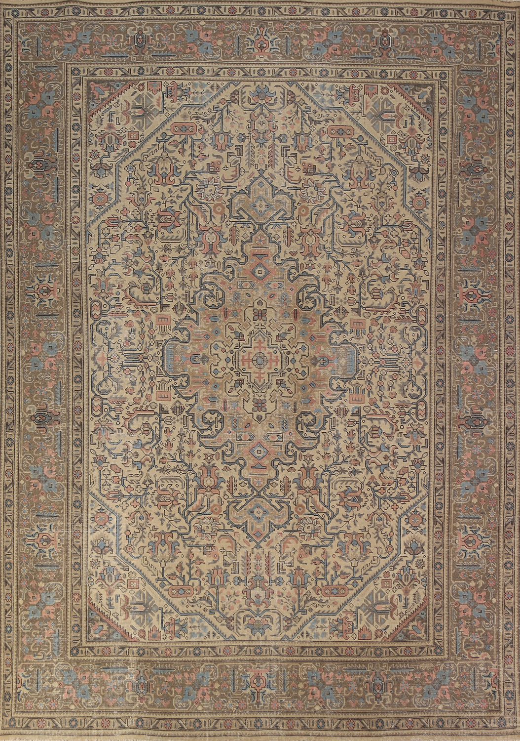 A Beautiful Genuine Persia ( Persia ) Tabriz rug is Hand Knotted by skillful weavers in Persia ( Persia ) with 100% Wool Material. This rug is in Very Good (Evenly Low Pile) condition. dimensions are 11' 0'' X 7' 11'' in foot and 335 X 241 in centimeter. the primary color is Peach.