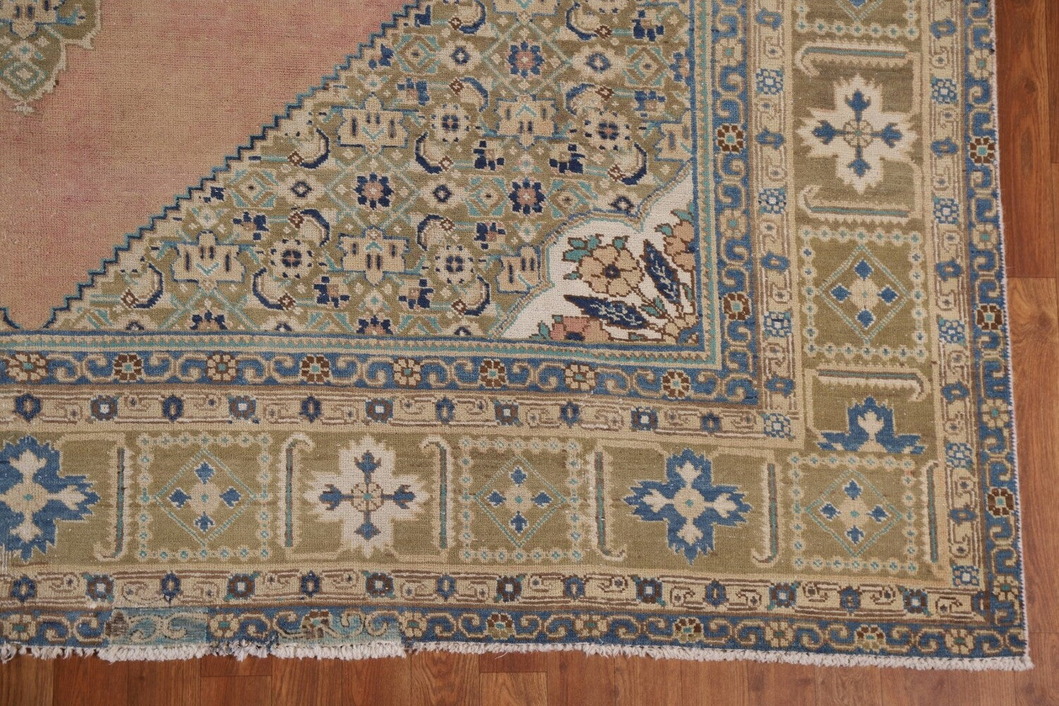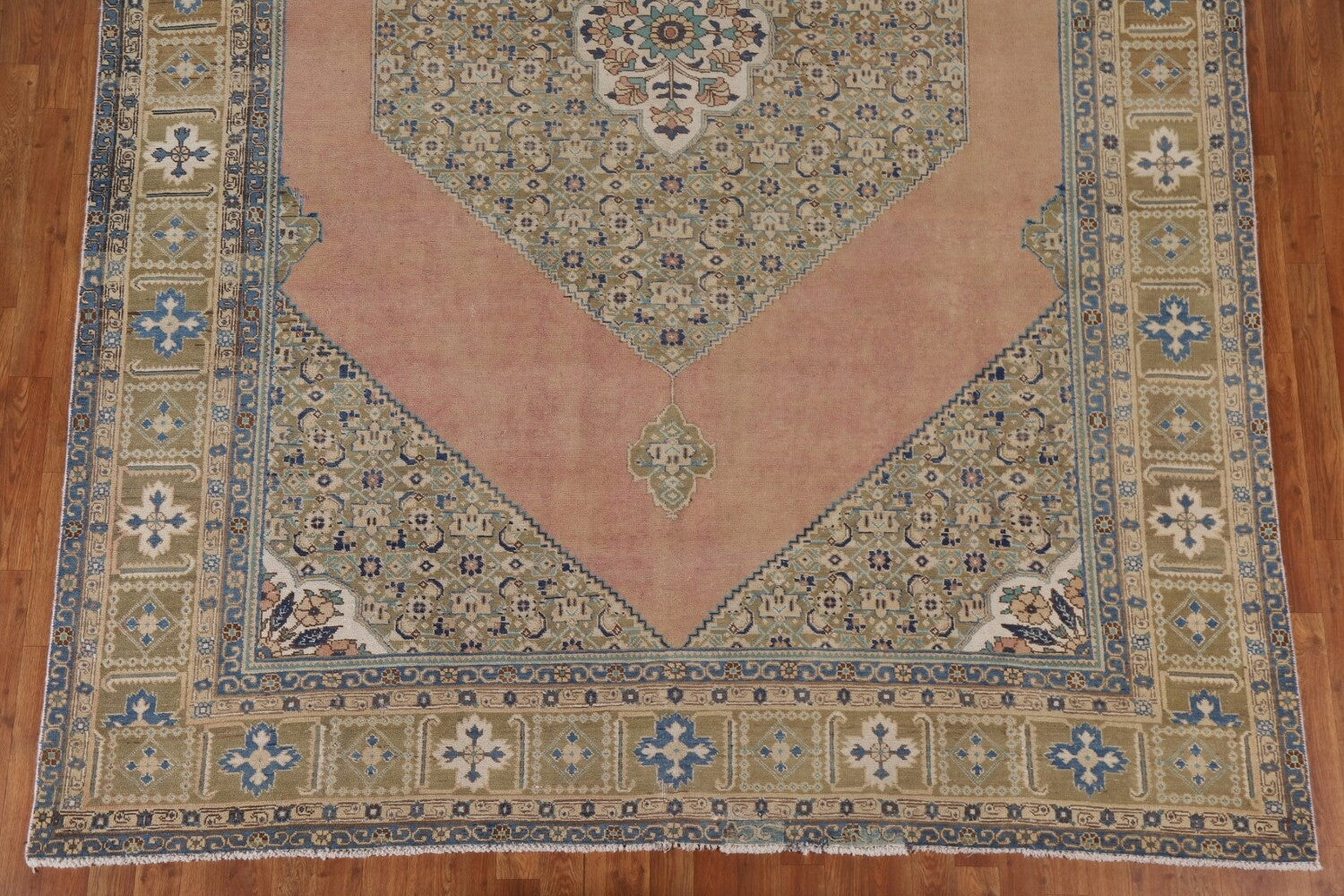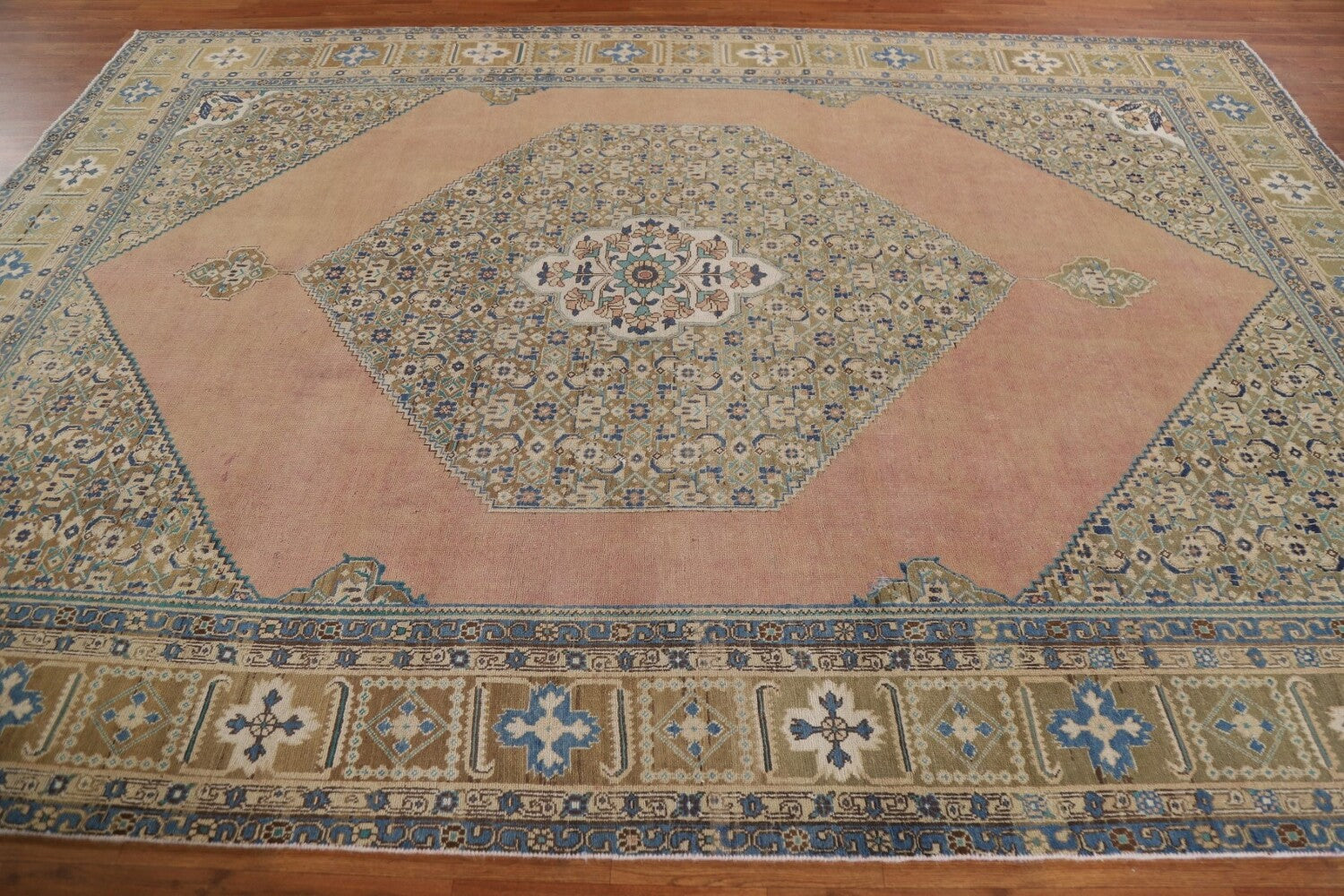 A Beautiful Genuine Persia ( Persia ) Tabriz rug is Hand Knotted by skillful weavers in Persia ( Persia ) with 100% Wool Material. This rug is in Very Good (Evenly Low Pile-Repair) condition. dimensions are 11' 1'' X 8' 1'' in foot and 338 X 246 in centimeter. the primary color is Pink.