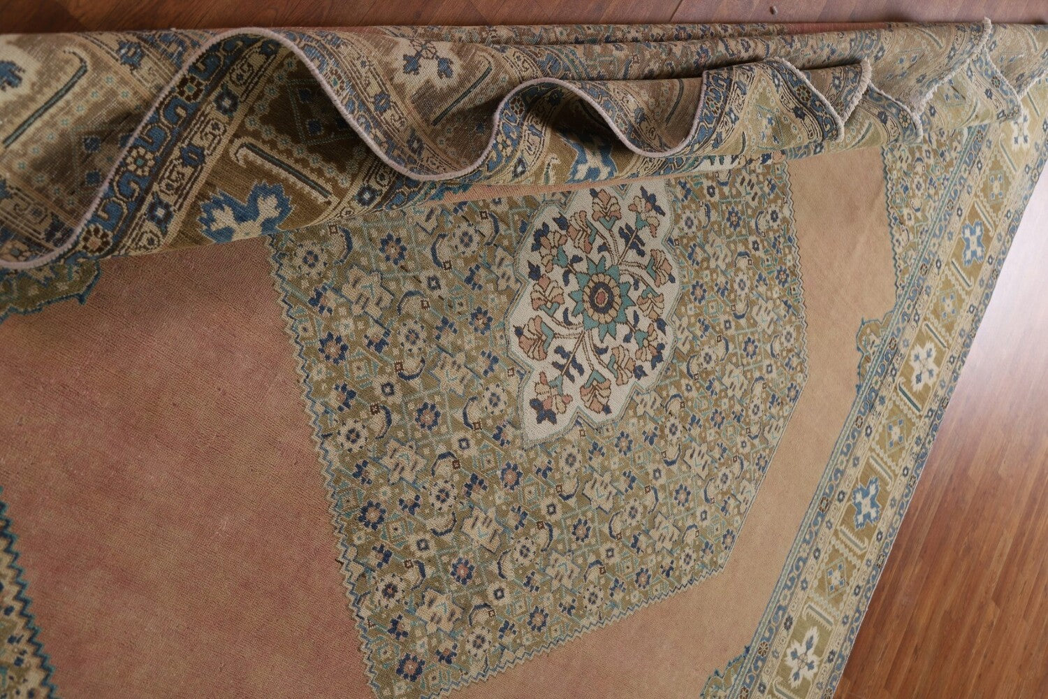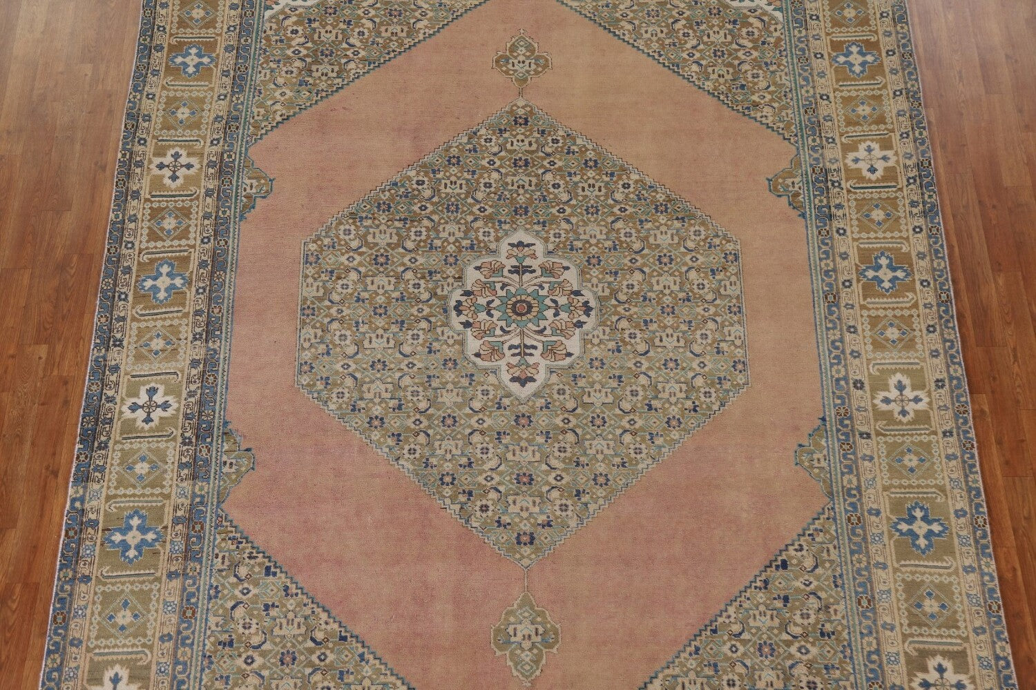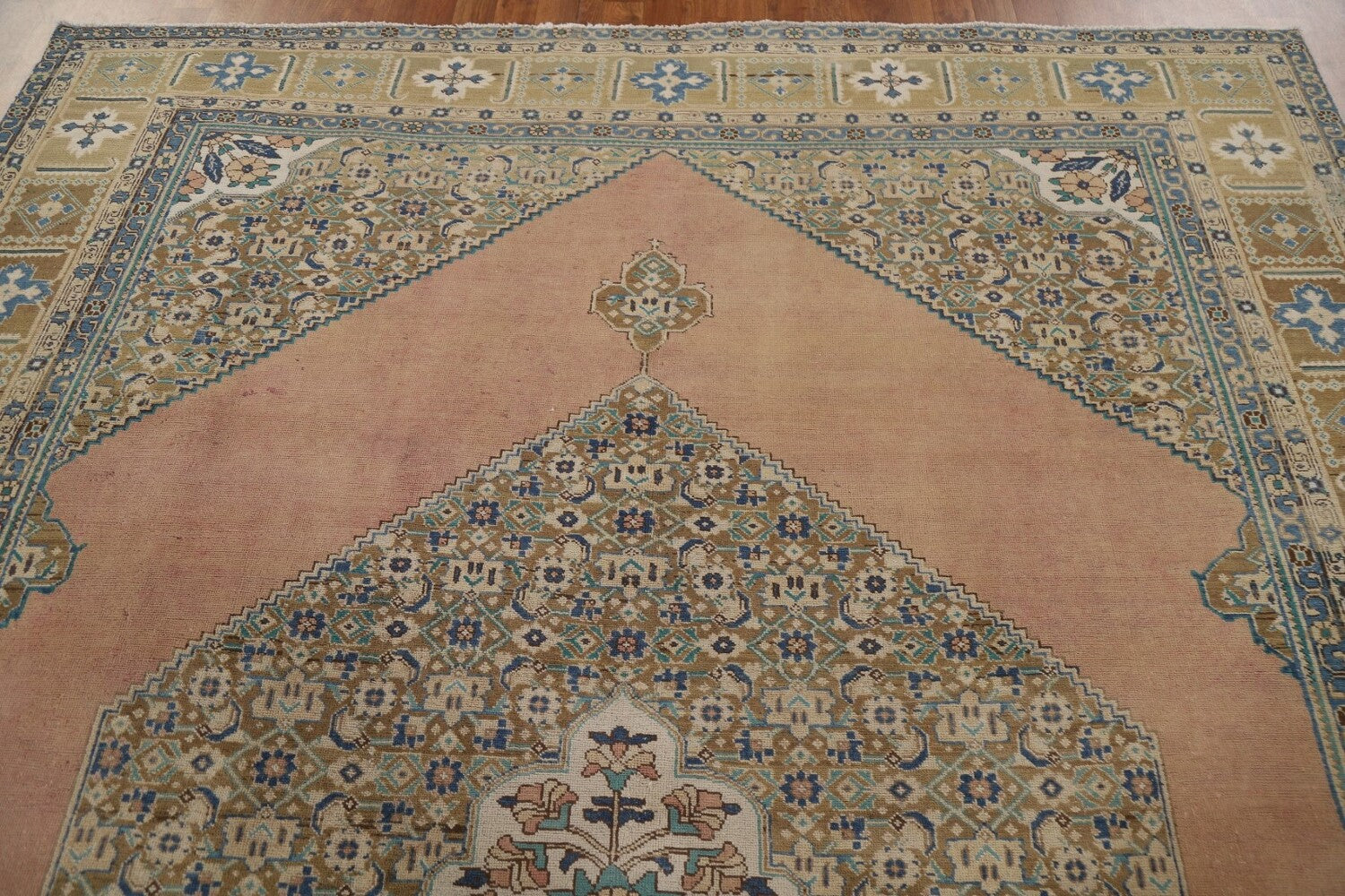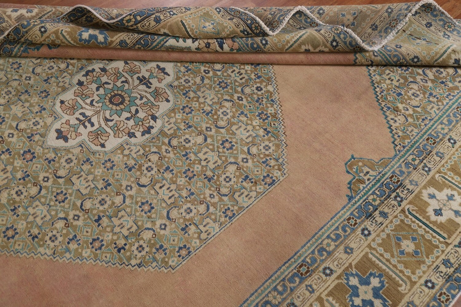 A Beautiful Genuine Persia ( Persia ) Tabriz rug is Hand Knotted by skillful weavers in Persia ( Persia ) with 100% Wool Material. This rug is in Very Good (Evenly Low Pile-Repair) condition. dimensions are 11' 1'' X 8' 1'' in foot and 338 X 246 in centimeter. the primary color is Pink.