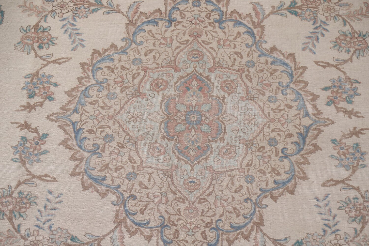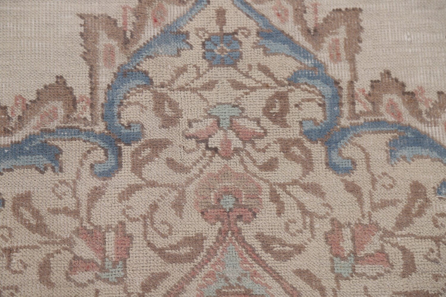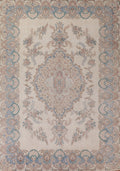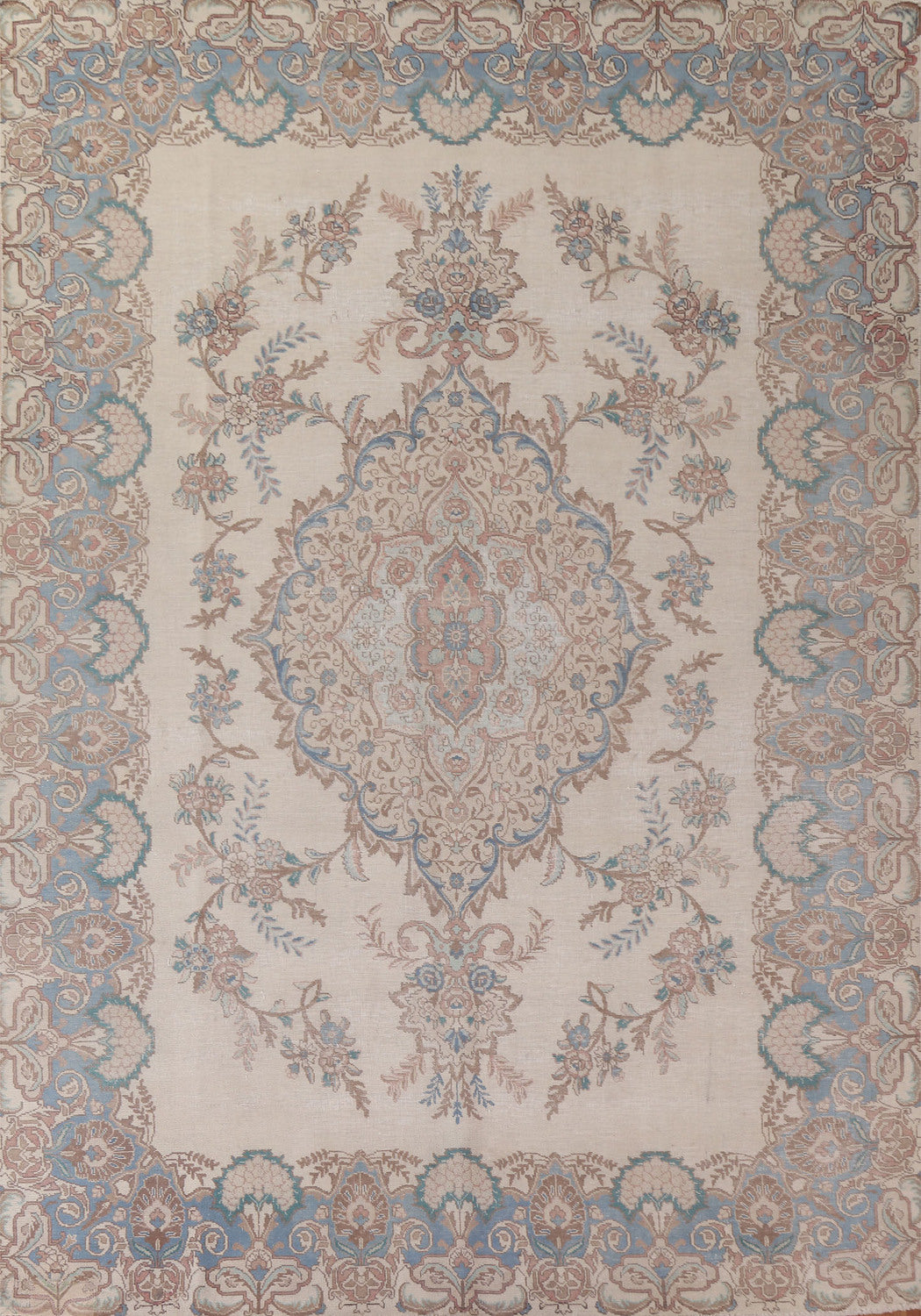 A Beautiful Genuine Persia ( Persia ) Tabriz rug is Hand Knotted by skillful weavers in Persia ( Persia ) with 100% Wool Material. This rug is in Very Good(Evenly Low Pile-Small Repair) condition. dimensions are 10' 7'' X 8' 2'' in foot and 323 X 249 in centimeter. the primary color is Beige & Ivories.