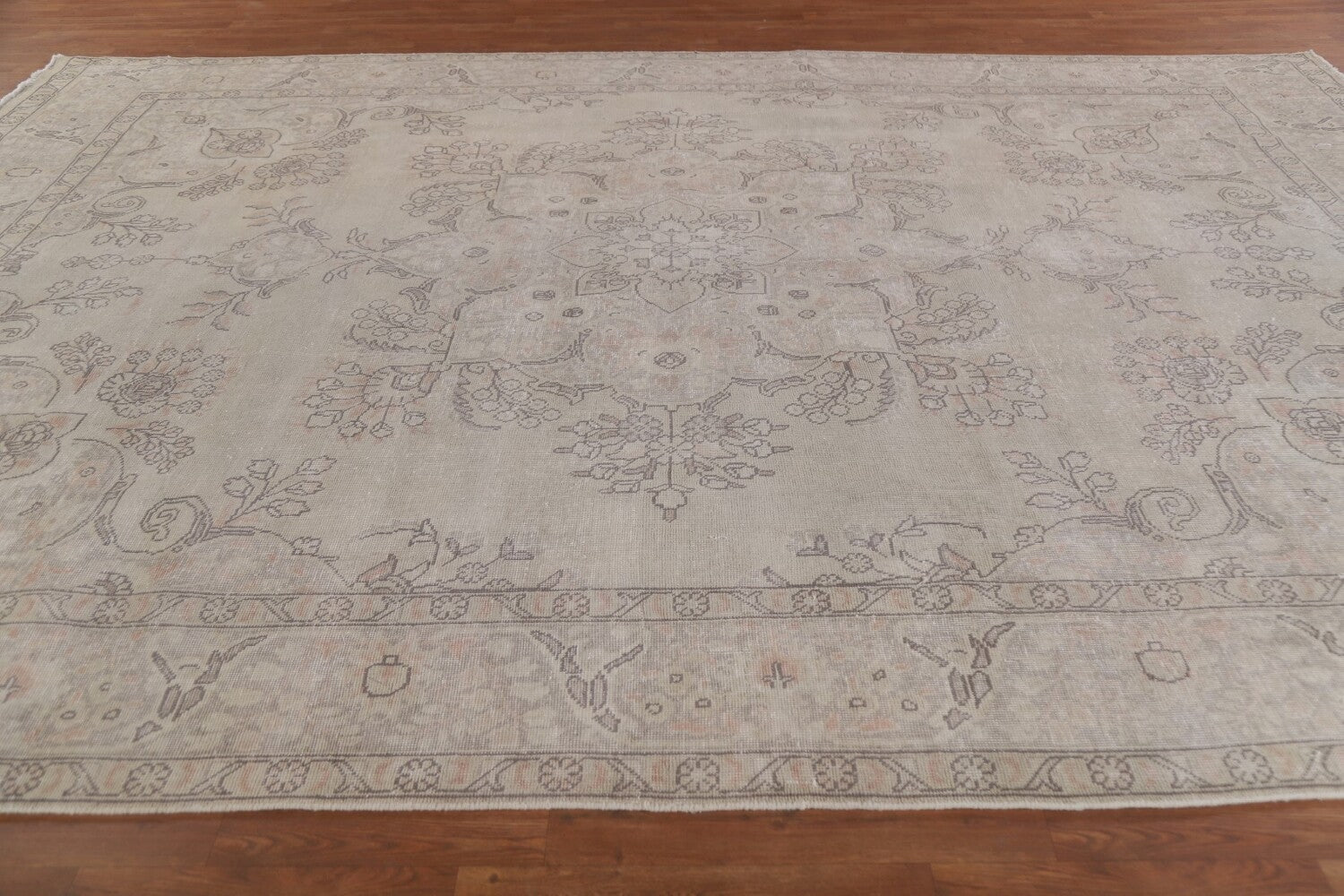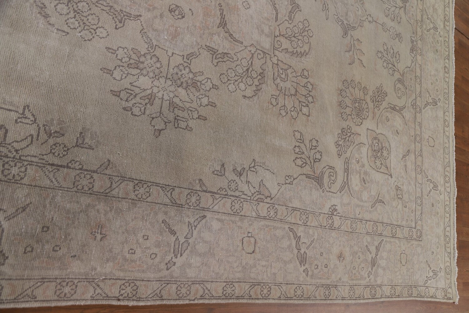 A Beautiful Genuine Persia ( Persia ) Tabriz rug is Hand Knotted by skillful weavers in Persia ( Persia ) with 100% Wool Material. This rug is in Very Good (Evenly Low Pile) condition. dimensions are 13' 0'' X 9' 3'' in foot and 396 X 282 in centimeter. the primary color is Beige & Ivories.