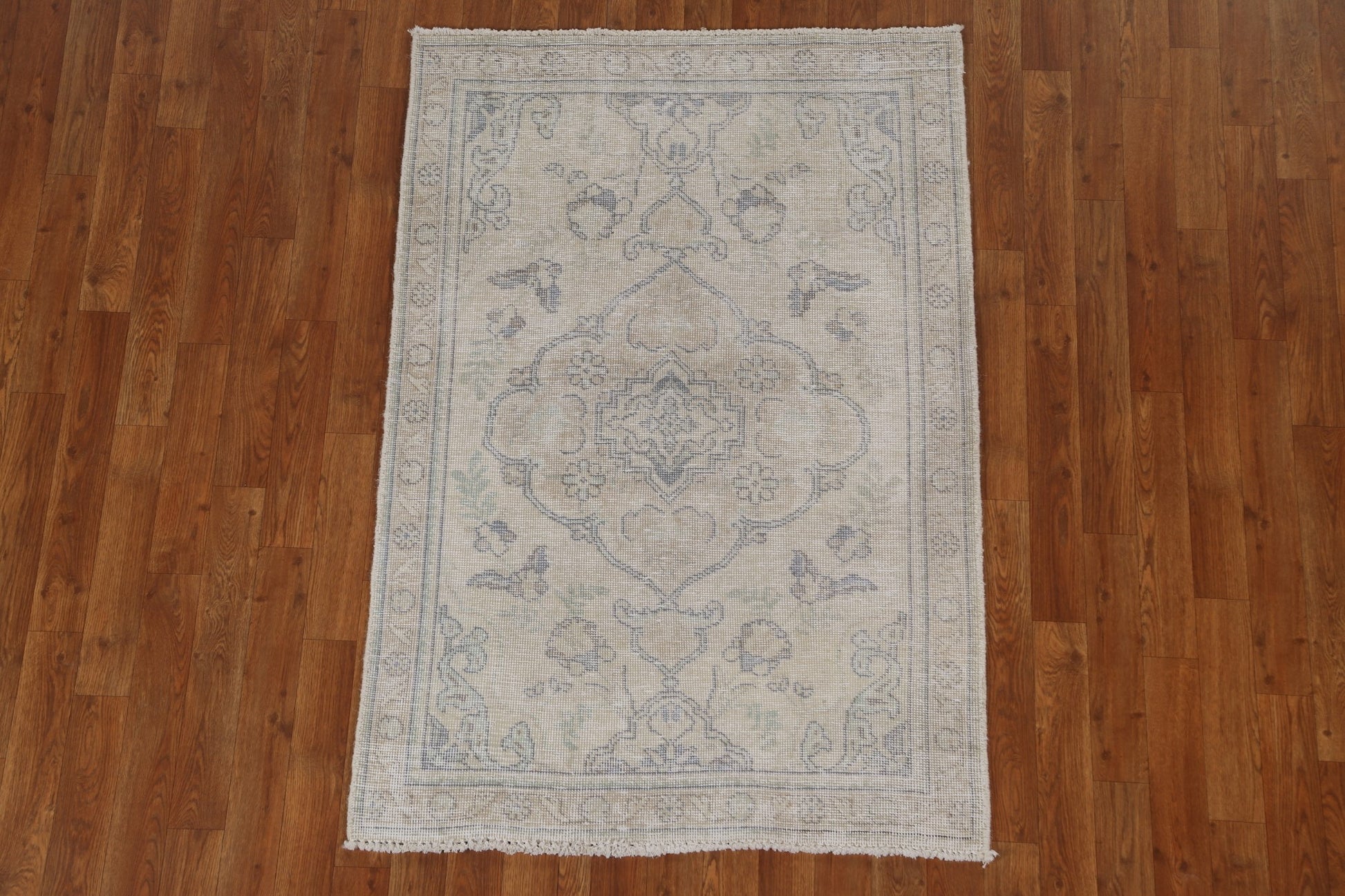 A Beautiful Genuine Persia ( Persia ) Tabriz rug is Hand Knotted by skillful weavers in Persia ( Persia ) with 100% Wool Material. This rug is in Very Good (Evenly Low Pile) condition. dimensions are 4' 9'' X 3' 2'' in foot and 145 X 97 in centimeter. the primary color is Beige & Ivories.
