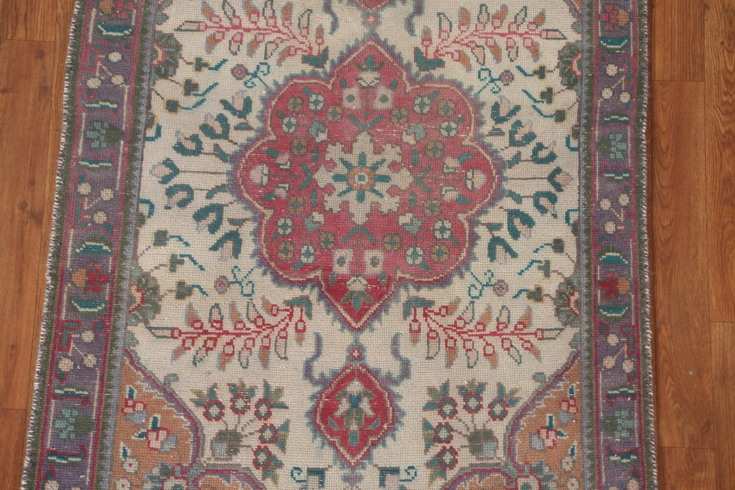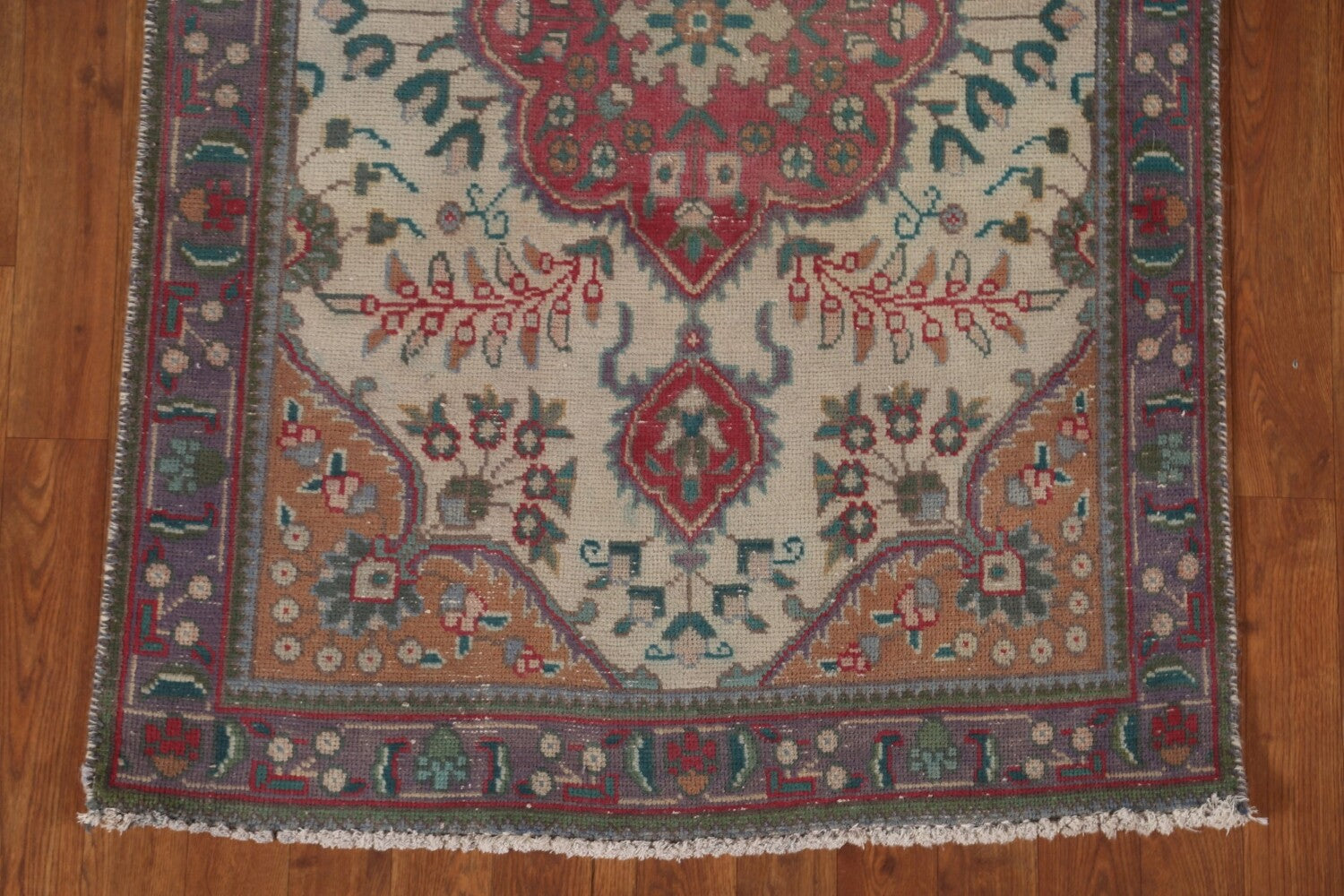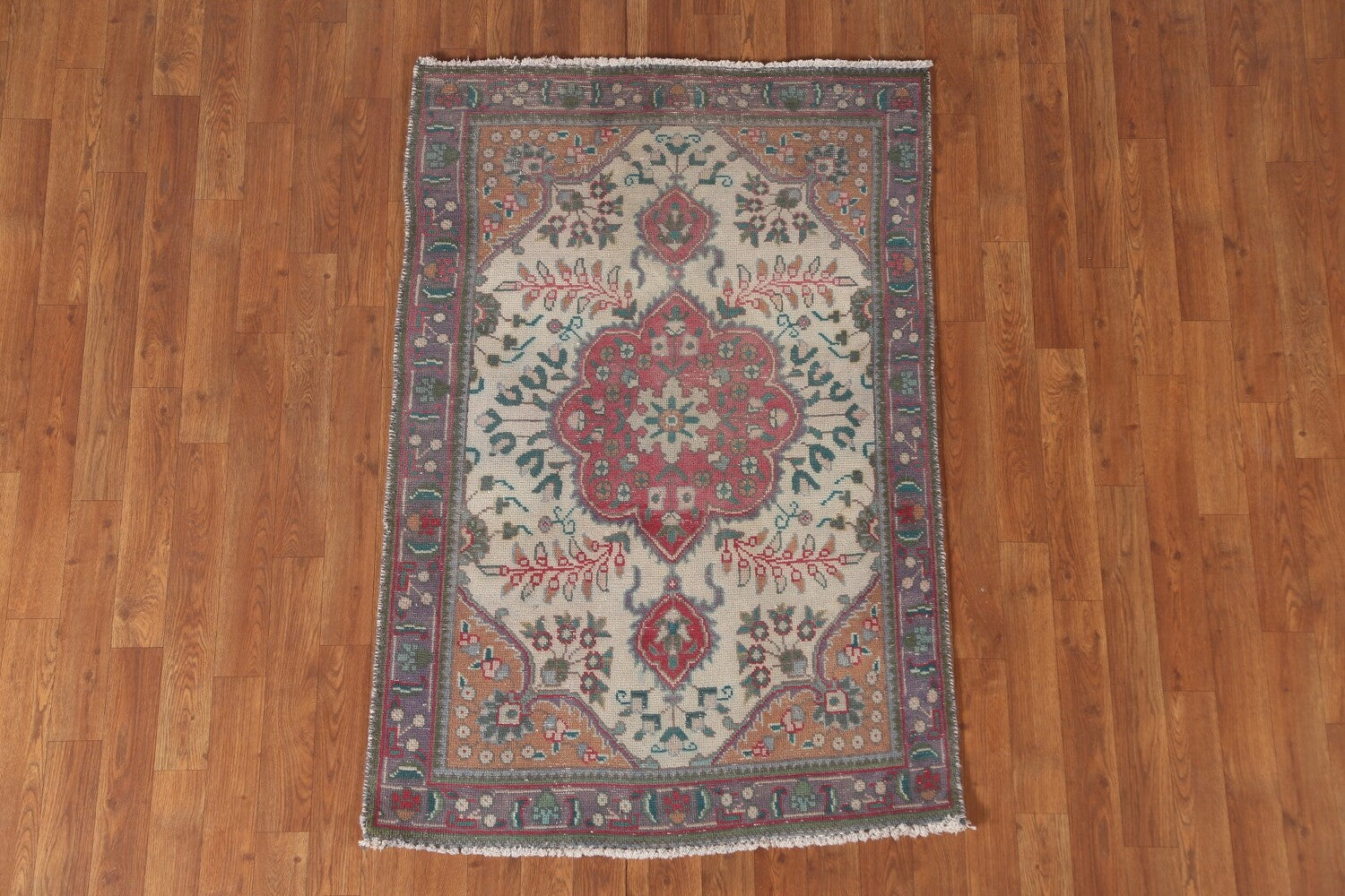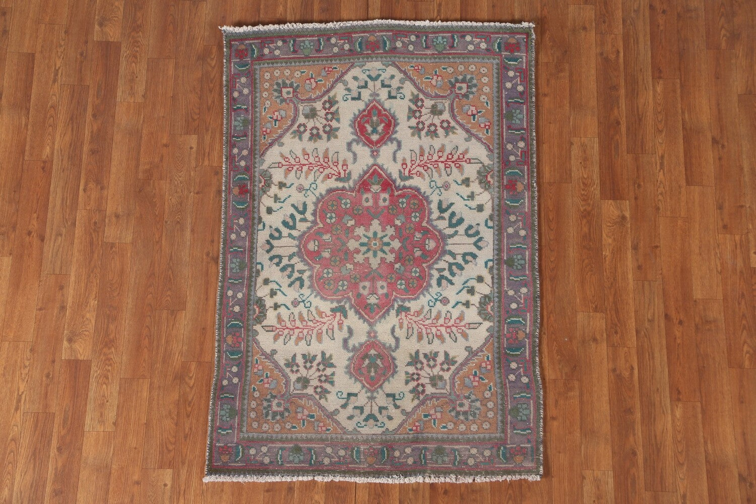 A Beautiful Genuine Persia ( Persia ) Tabriz rug is Hand Knotted by skillful weavers in Persia ( Persia ) with 100% Wool Material. This rug is in Very Good (Evenly Low Pile) condition. dimensions are 4' 9'' X 3' 1'' in foot and 145 X 94 in centimeter. the primary color is Beige & Ivories.