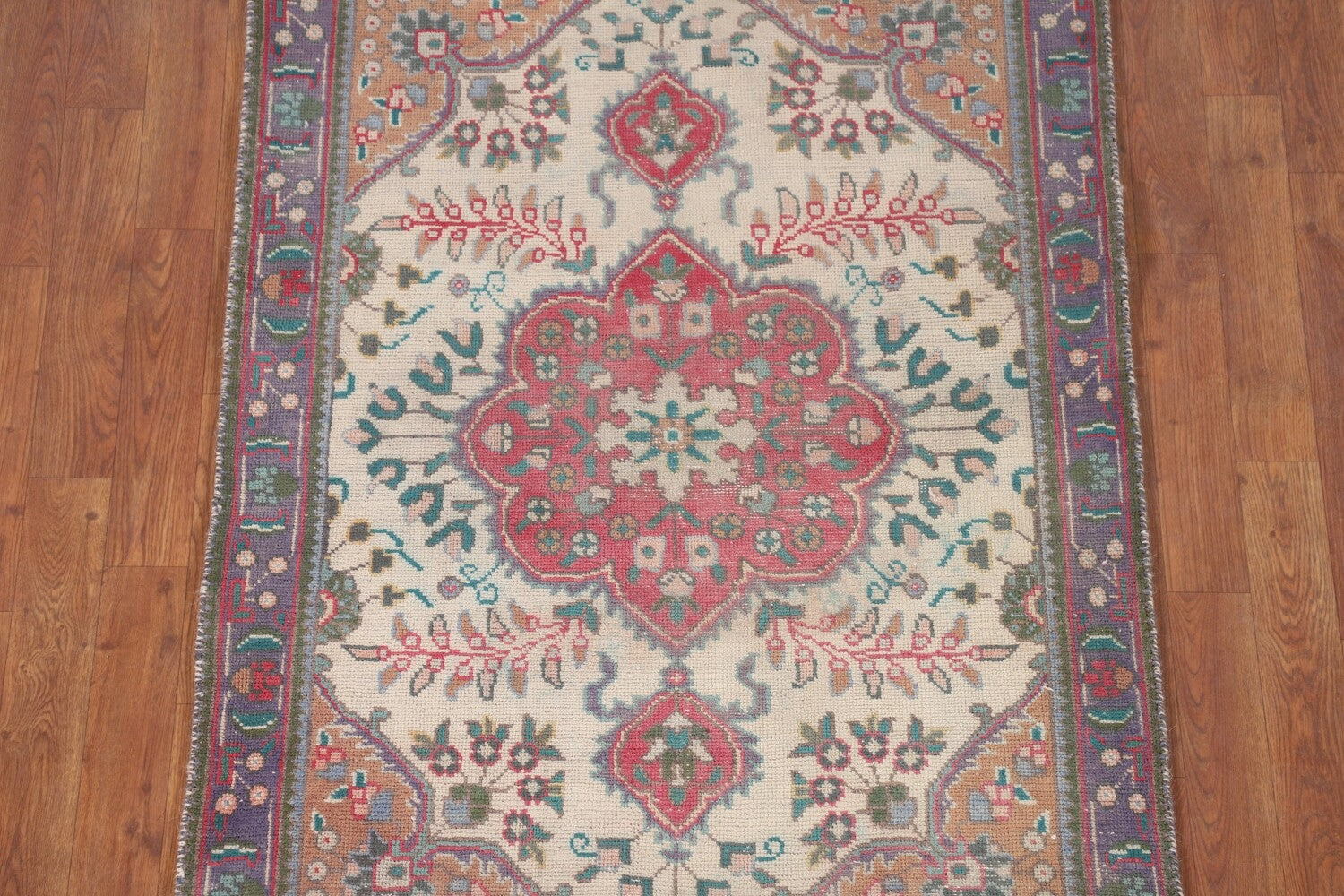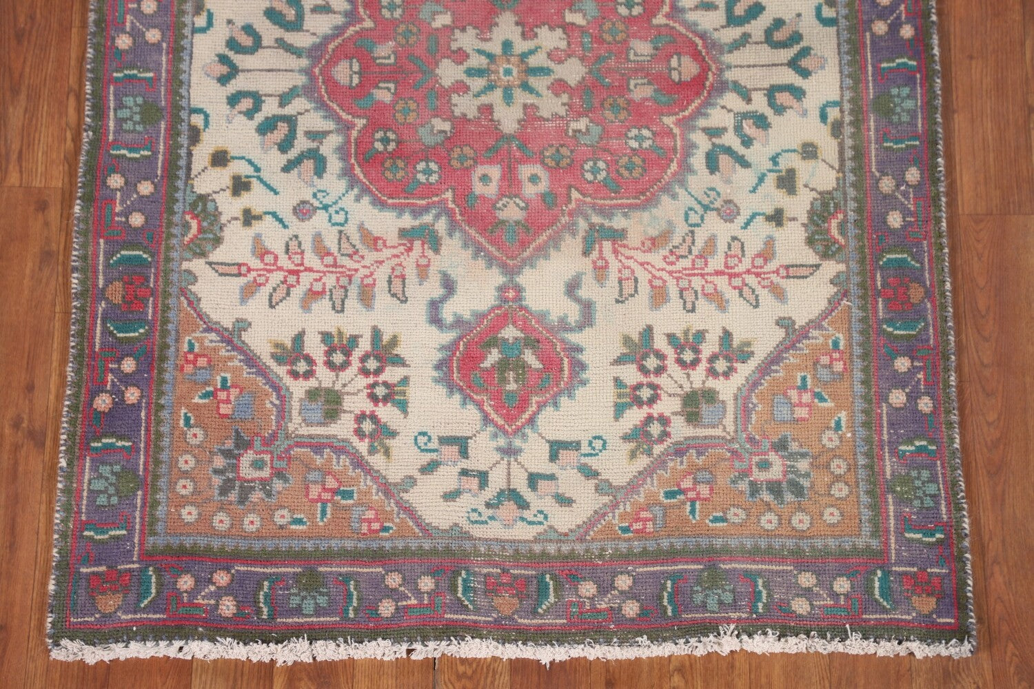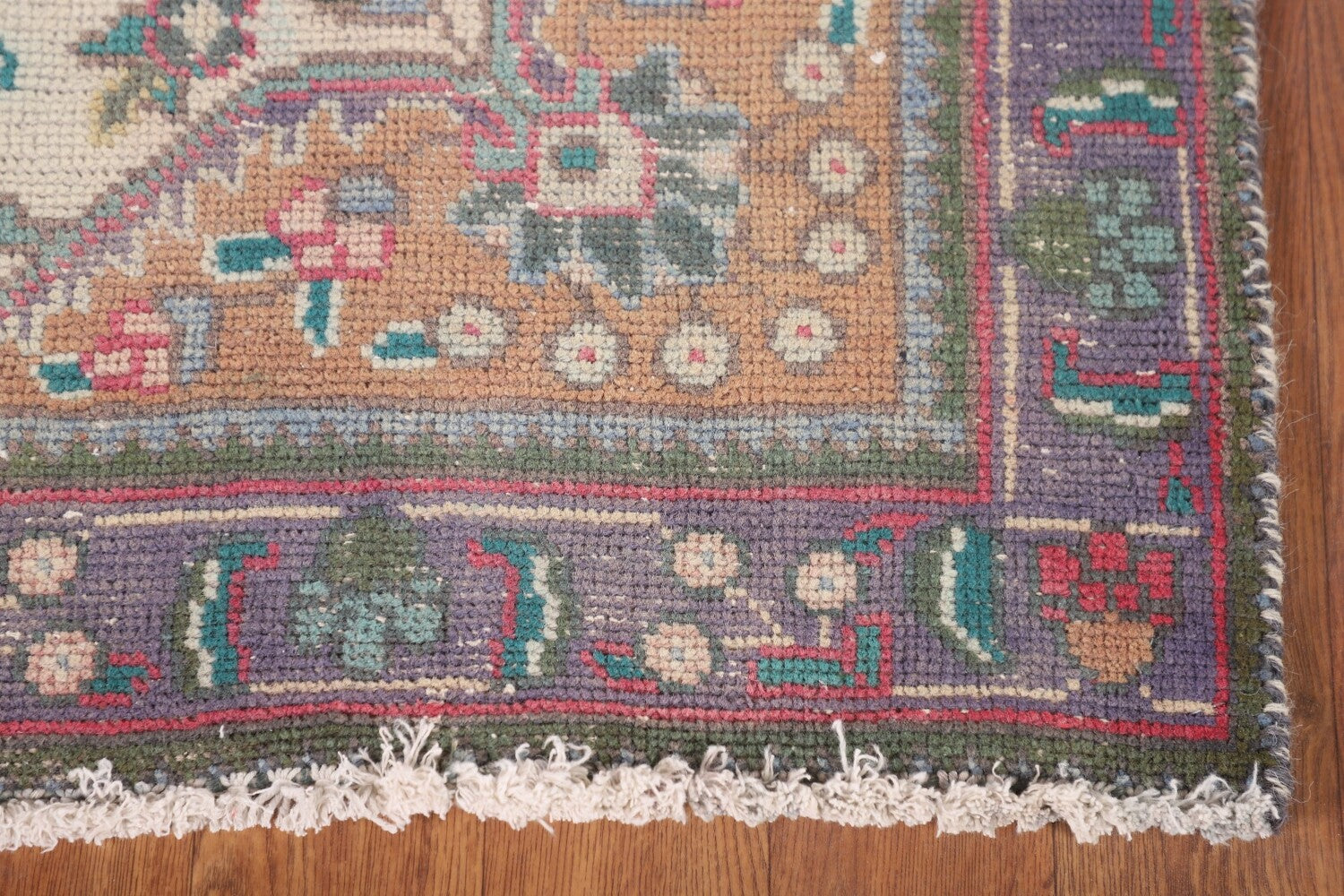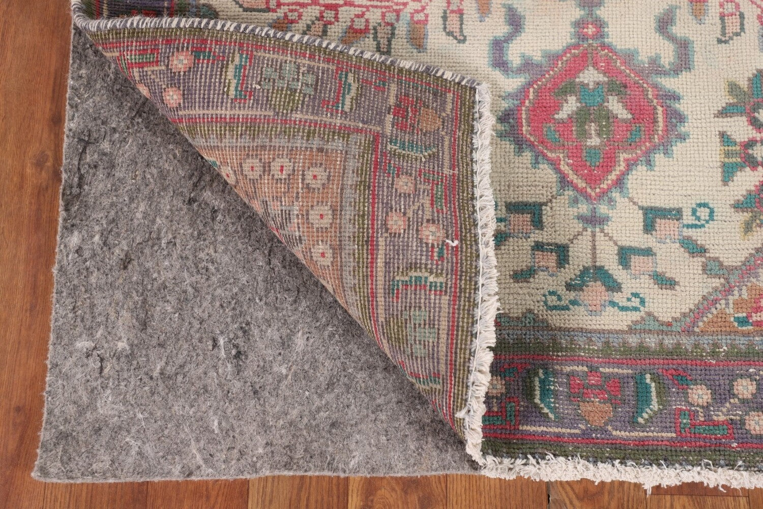 A Beautiful Genuine Persia ( Persia ) Tabriz rug is Hand Knotted by skillful weavers in Persia ( Persia ) with 100% Wool Material. This rug is in Very Good (Evenly Low Pile-Bleeding) condition. dimensions are 4' 7'' X 3' 2'' in foot and 140 X 97 in centimeter. the primary color is Beige & Ivories.