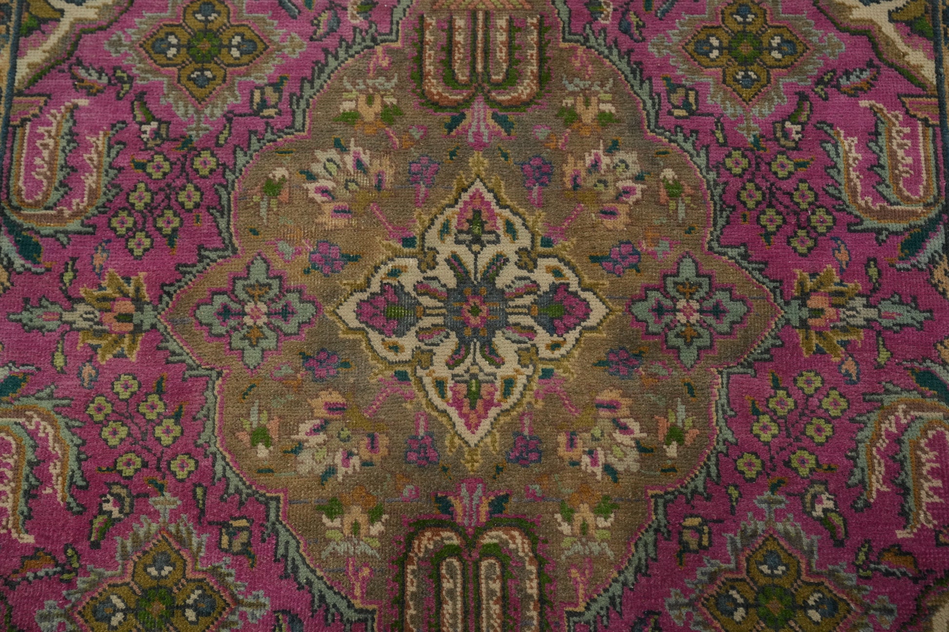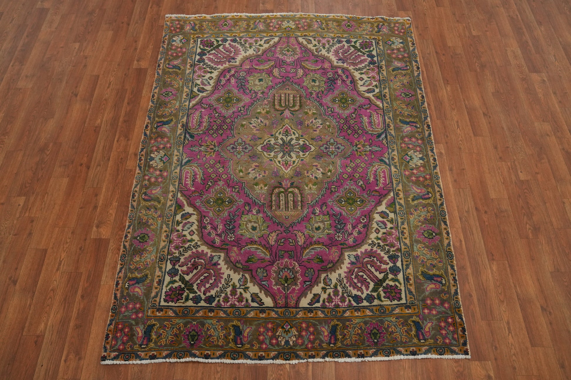 A Beautiful Genuine Persia ( Persia ) Tabriz rug is Hand Knotted by skillful weavers in Persia ( Persia ) with 100% Wool Material. This rug is in Very Good (Evenly Low Pile) condition. dimensions are 6' 4'' X 4' 7'' in foot and 193 X 140 in centimeter. the primary color is Pink.