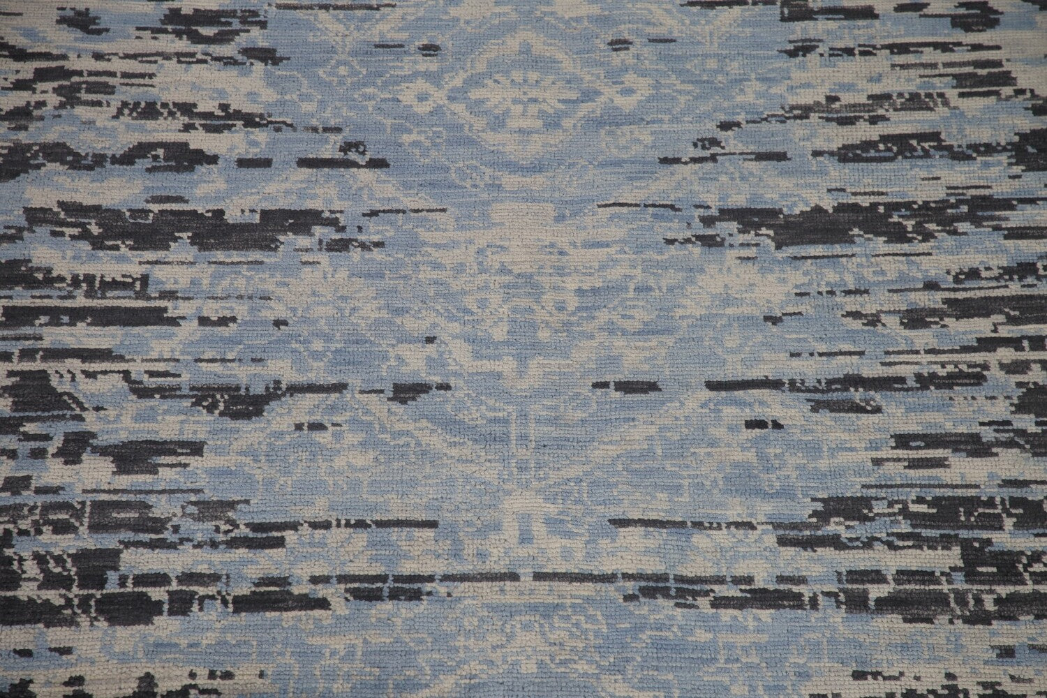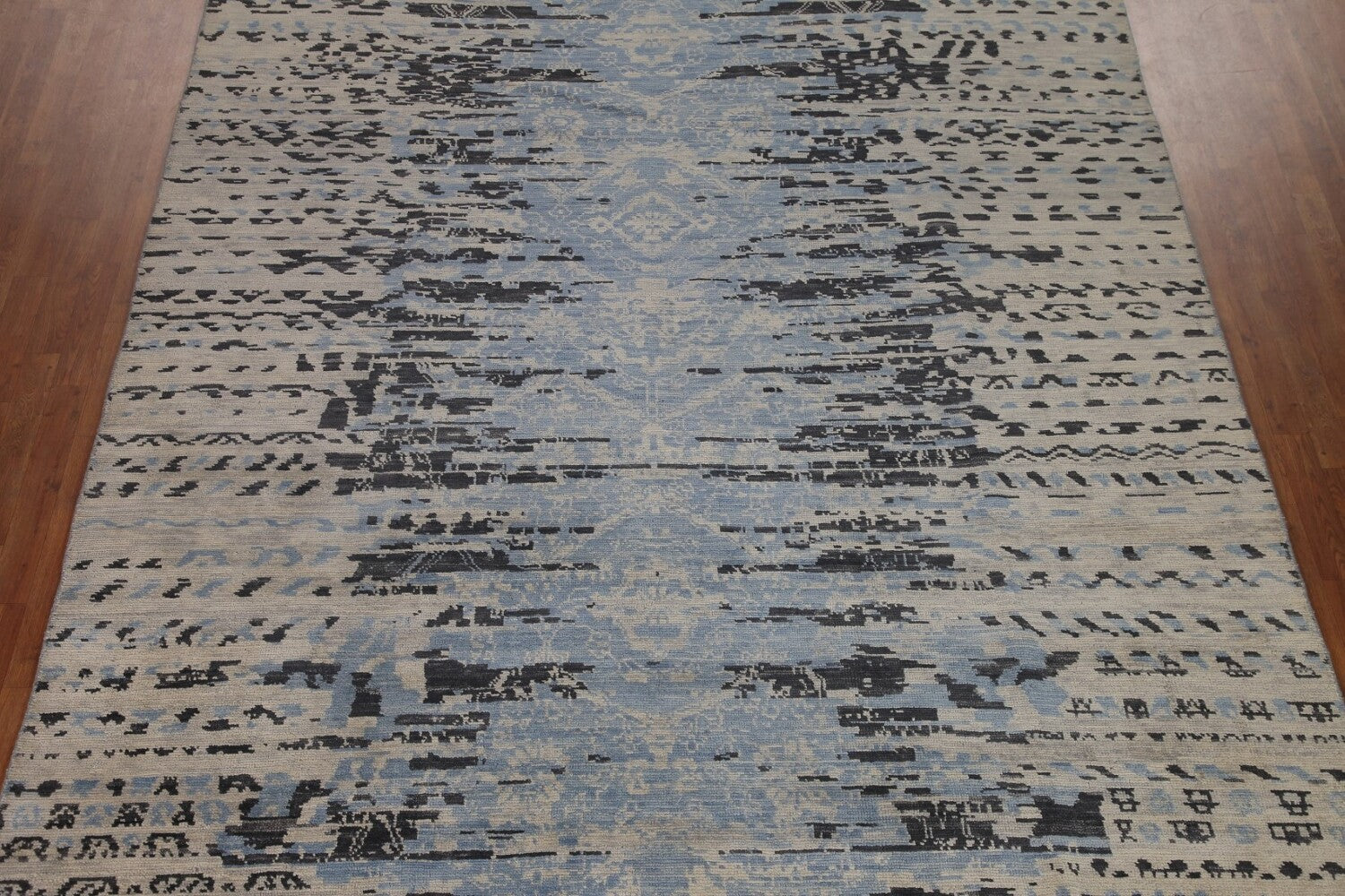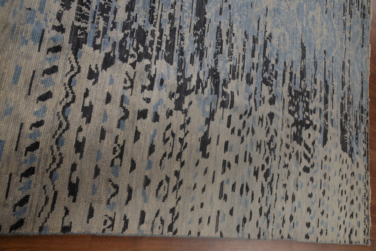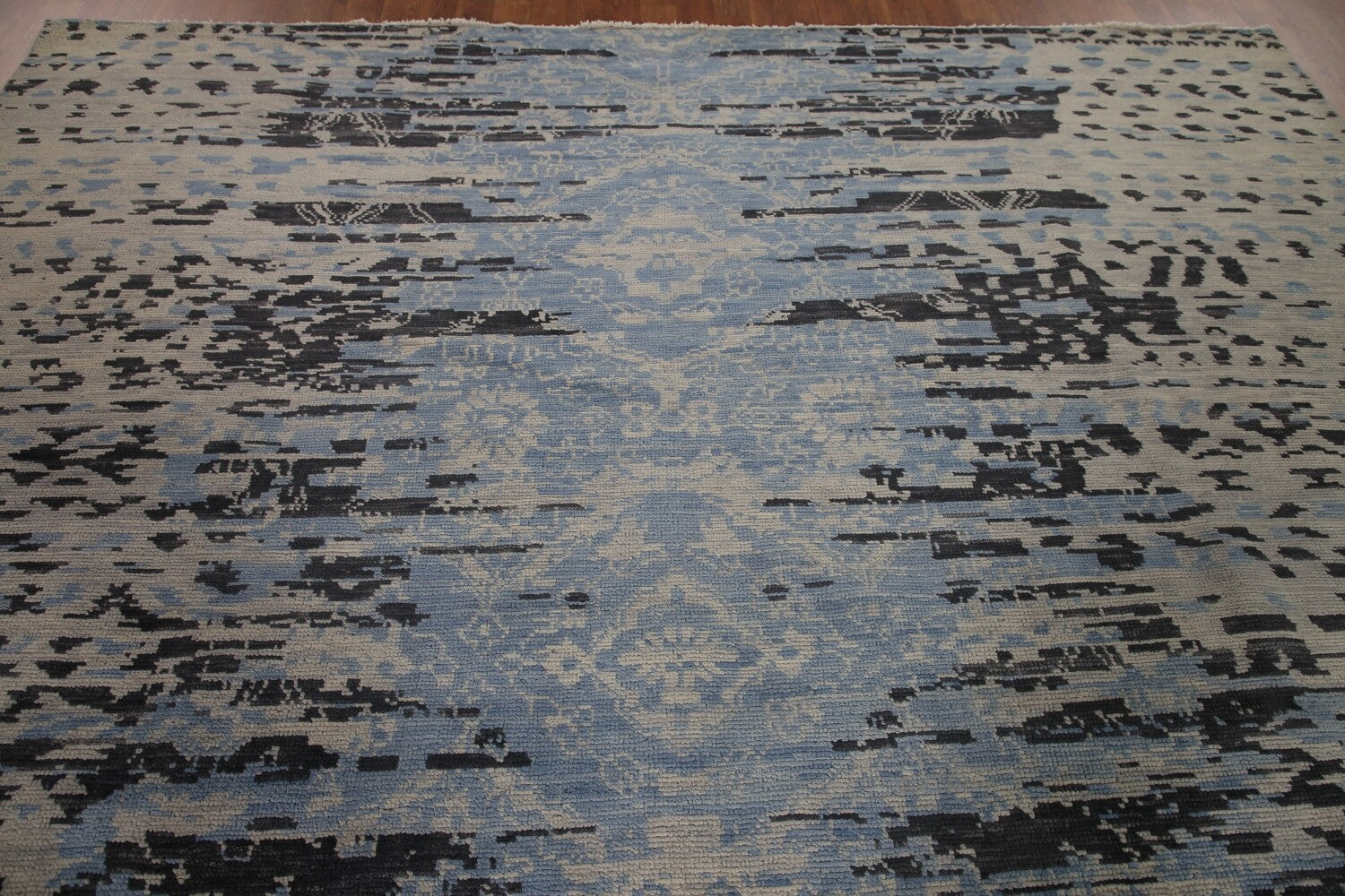 A Beautiful Genuine India Abstract rug is Hand Knotted by skillful weavers in India with 100% Wool Material. This rug is in New, First Quality condition. dimensions are 12' 6'' X 9' 0'' in foot and 381 X 274 in centimeter. the primary color is Navy Blue & Blues.