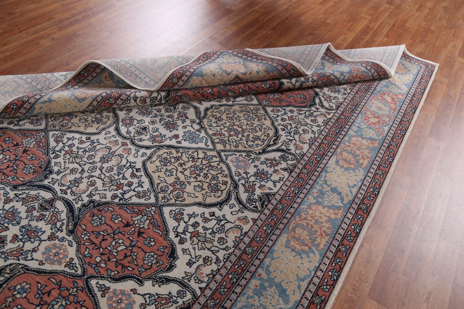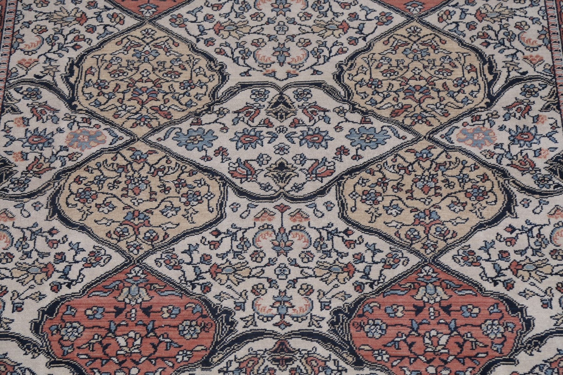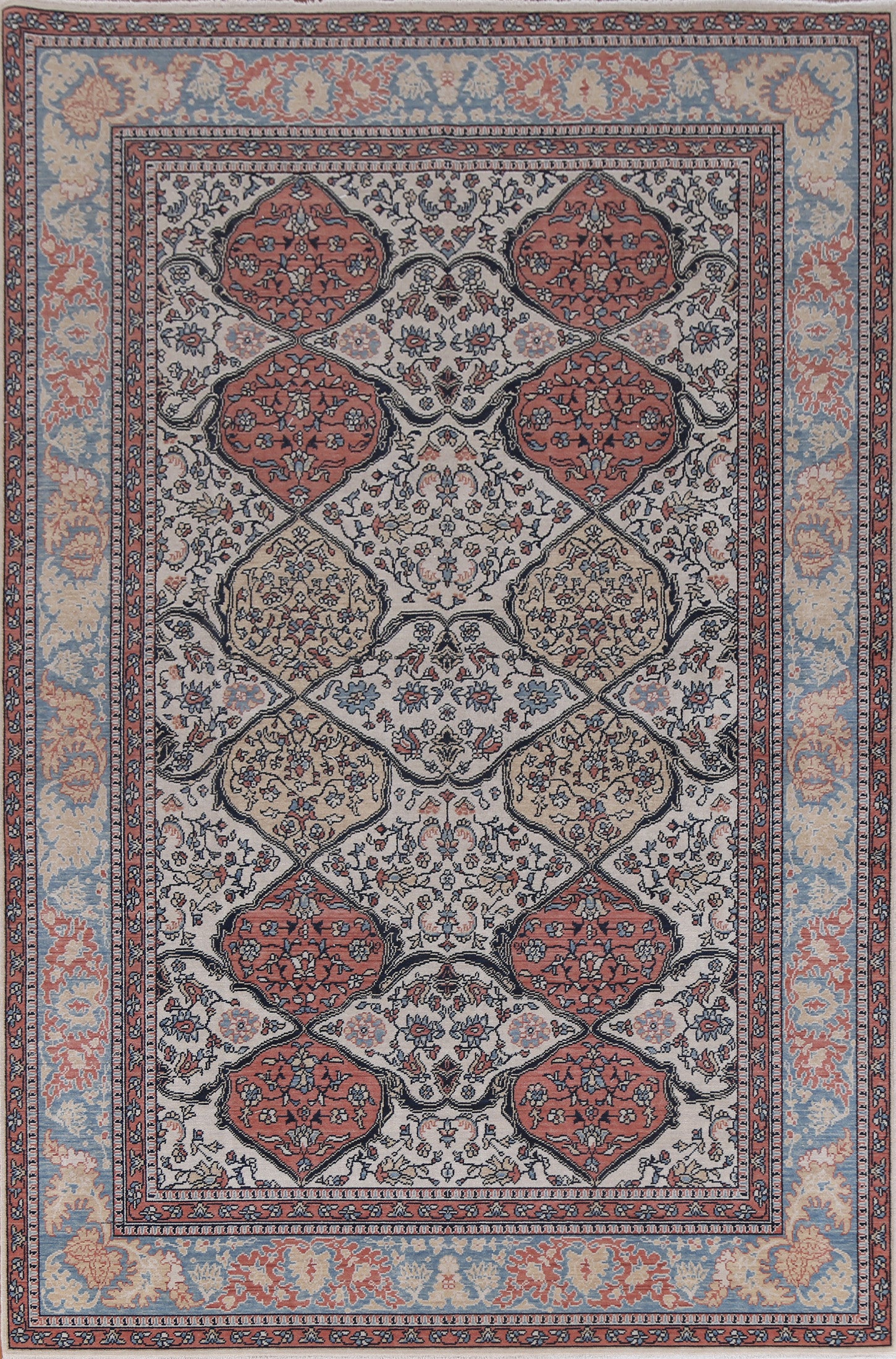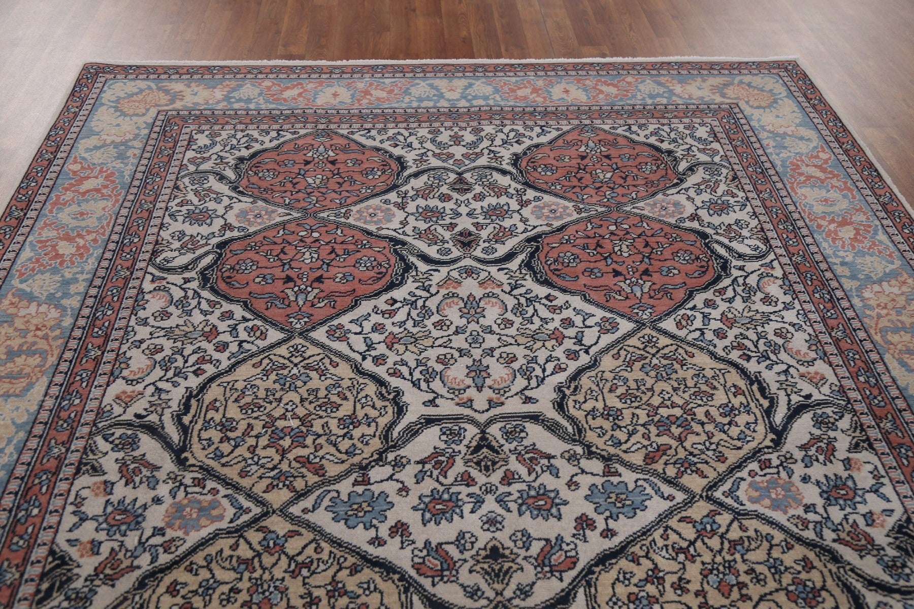 A Beautiful Genuine Turkey Bakhtiari rug is Hand Knotted by skillful weavers in Turkey with 100% Wool Material. This rug is in New, First Quality condition. dimensions are 9' 9'' X 7' 0'' in foot and 297 X 213 in centimeter. the primary color is Beige & Ivories.