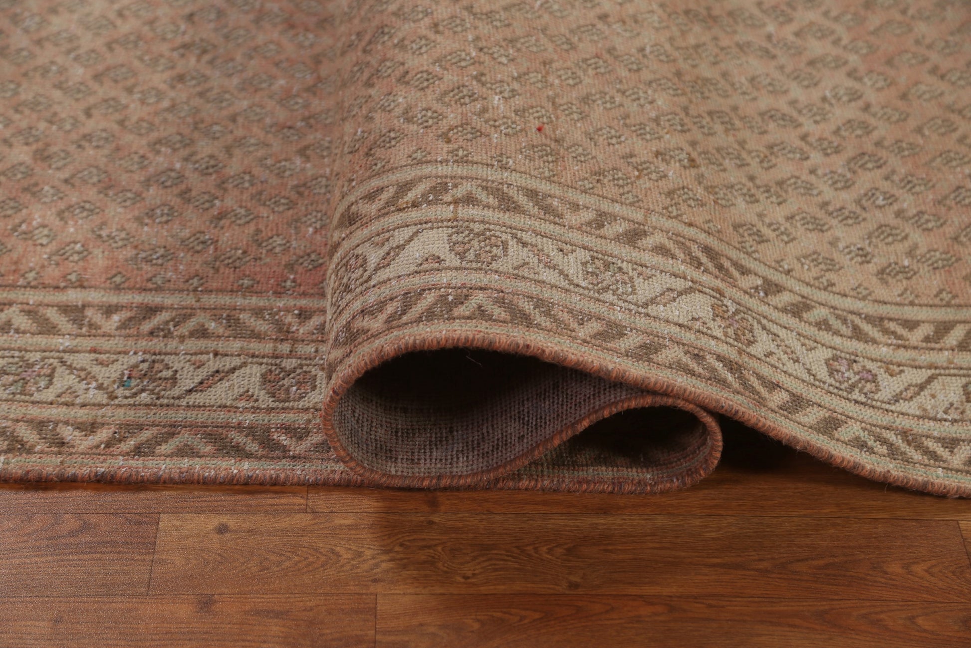 A Beautiful Genuine Persia ( Persia ) Botemir rug is Hand Knotted by skillful weavers in Persia ( Persia ) with 100% Wool Material. This rug is in Very Good (Evenly Low Pile-Abrash) condition. dimensions are 10' 3'' X 3' 4'' in foot and 312 X 102 in centimeter. the primary color is Coral.
