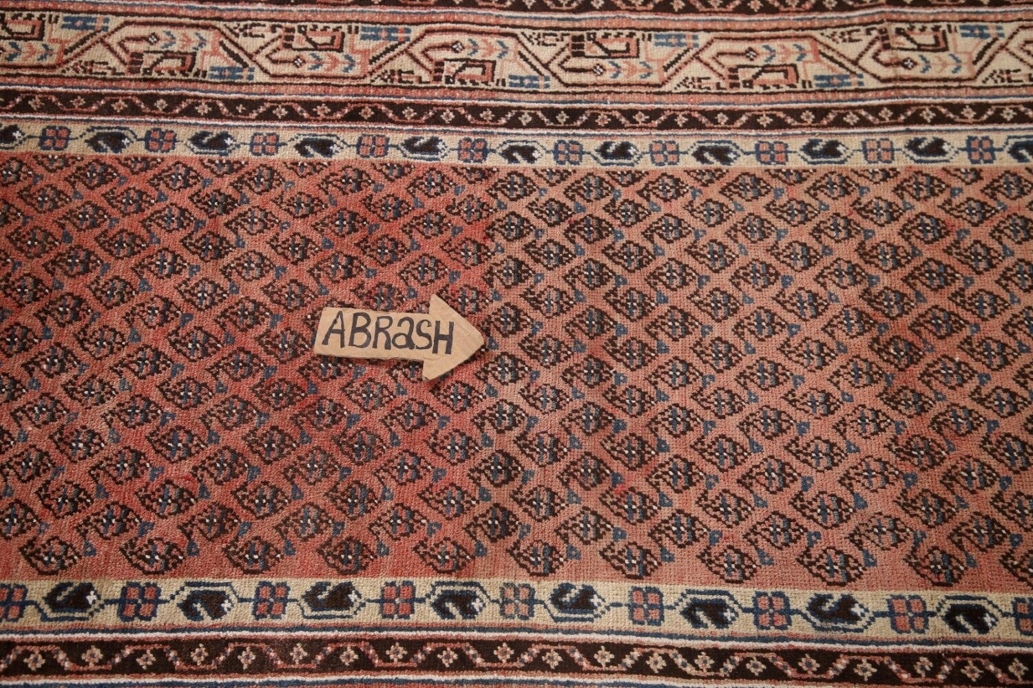 A Beautiful Genuine Persia ( Persia ) Botemir rug is Hand Knotted by skillful weavers in Persia ( Persia ) with 100% Wool Material. This rug is in Very Good (Abrash-Repair) condition. dimensions are 10' 7'' X 3' 3'' in foot and 323 X 99 in centimeter. the primary color is Pink.