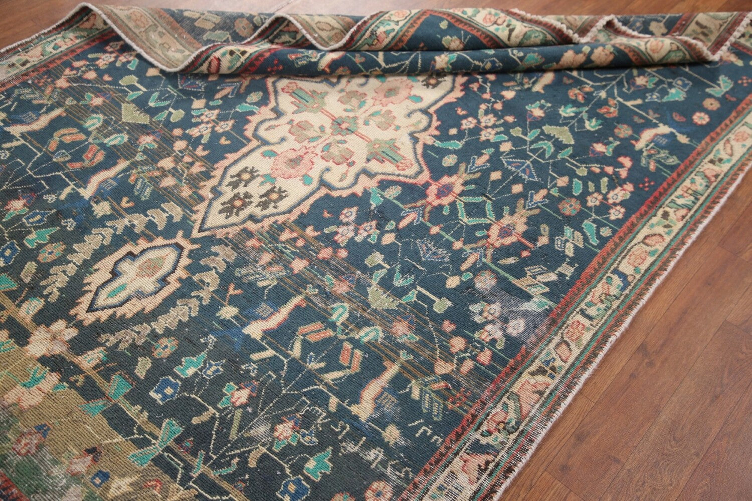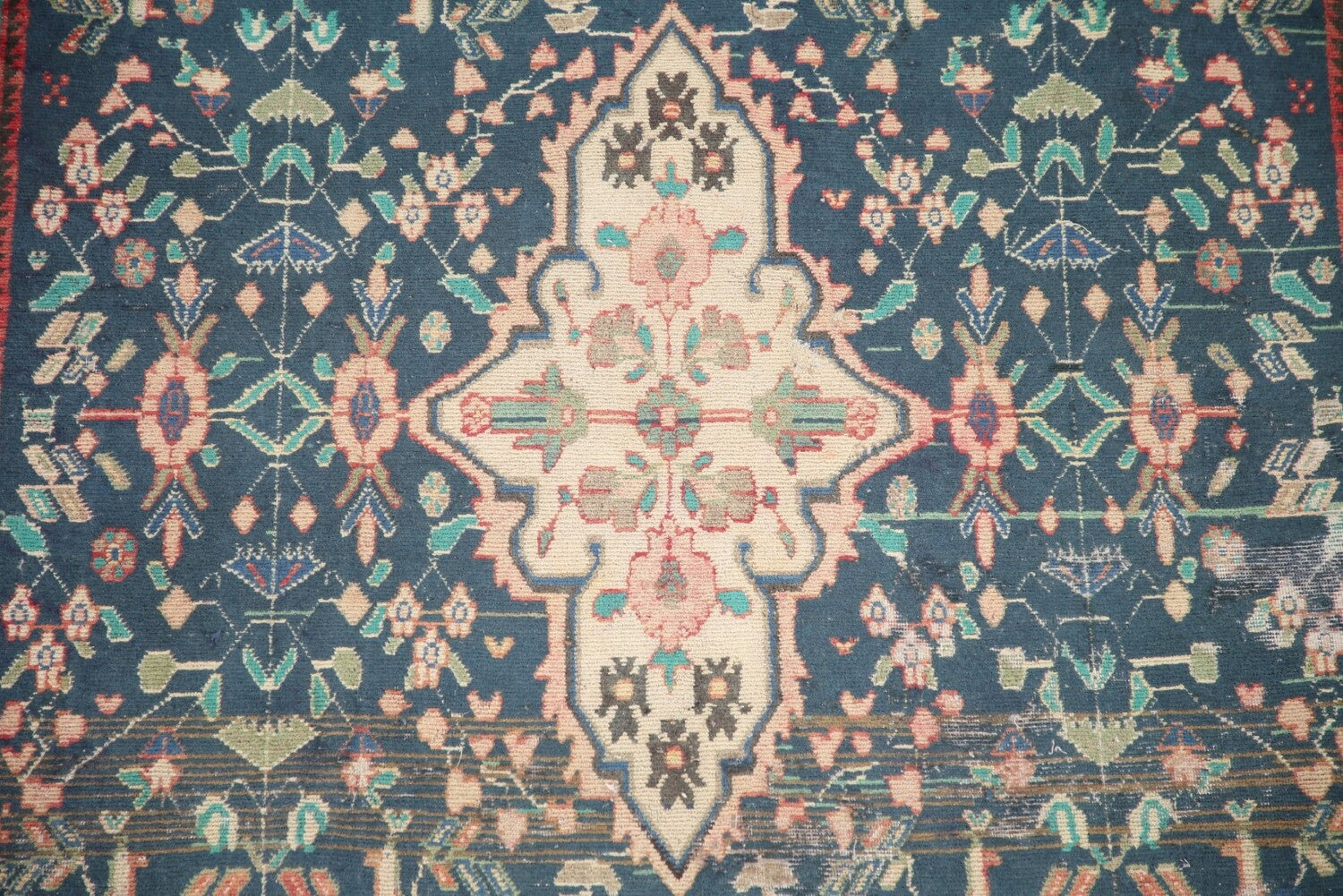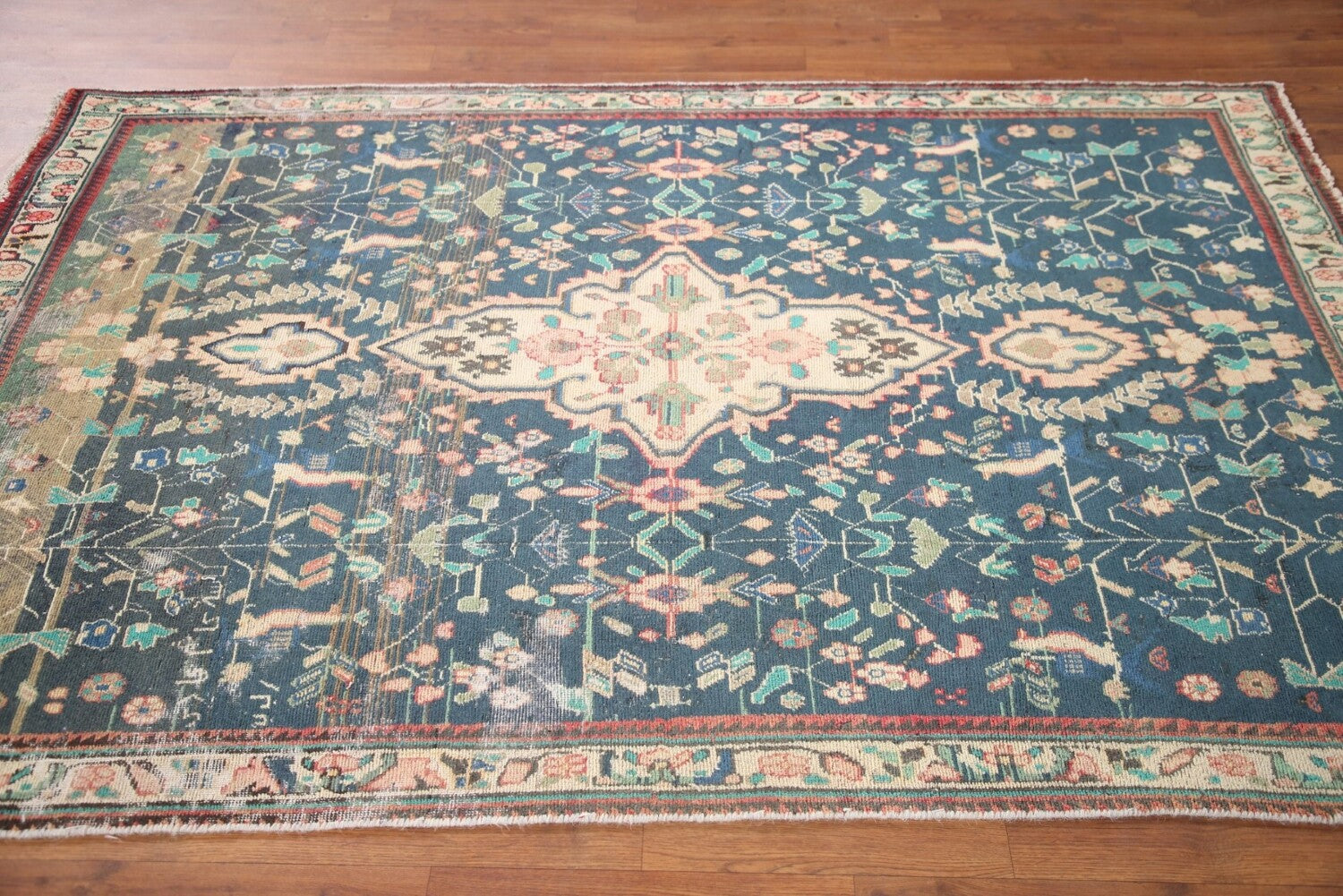 A Beautiful Genuine Persia ( Persia ) Mahal rug is Hand Knotted by skillful weavers in Persia ( Persia ) with 100% Wool Material. This rug is in Very Good (Low pile-Worn-Abrash) condition. dimensions are 6' 6'' X 4' 5'' in foot and 198 X 135 in centimeter. the primary color is Navy Blue & Blues.