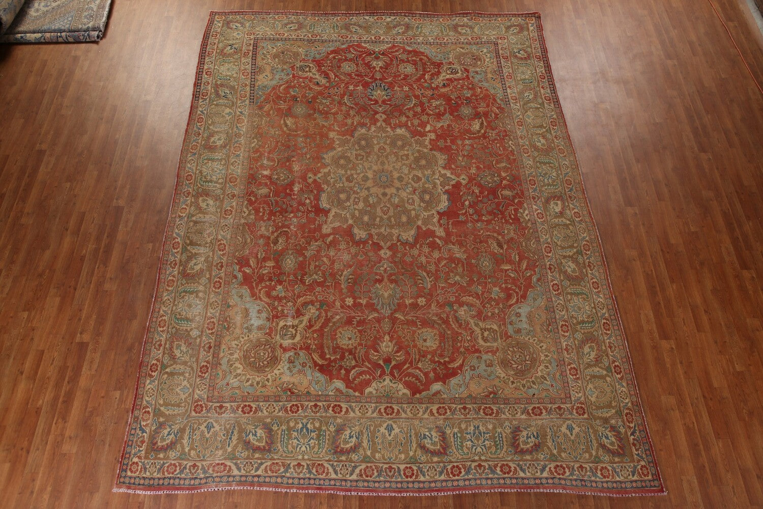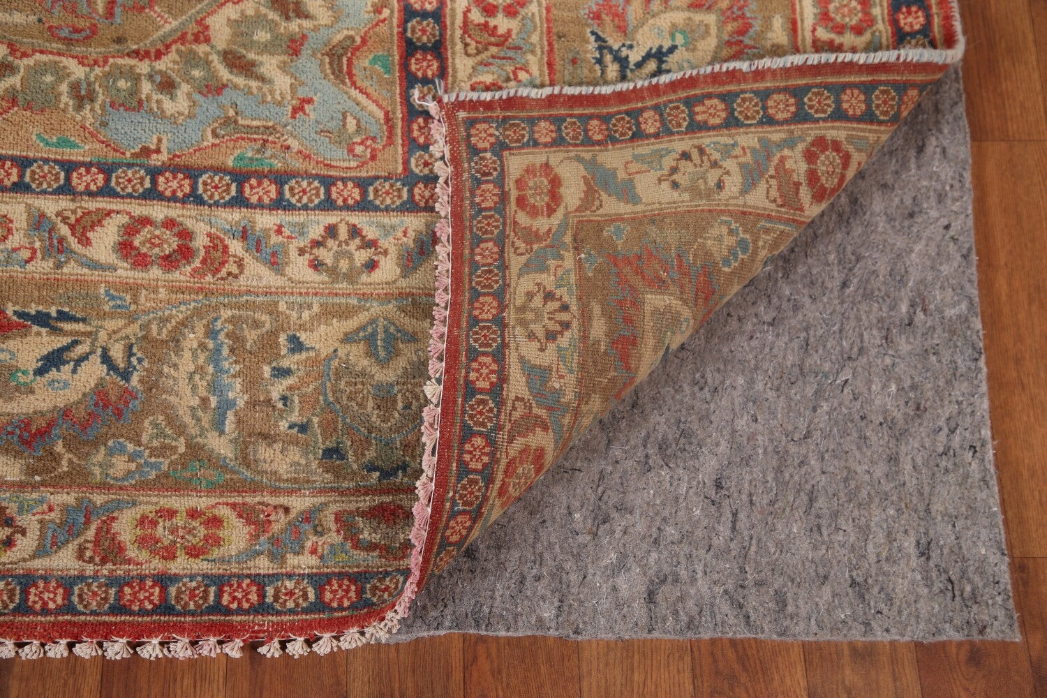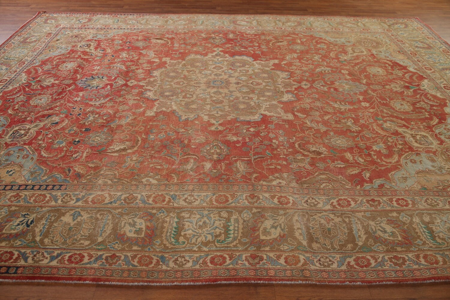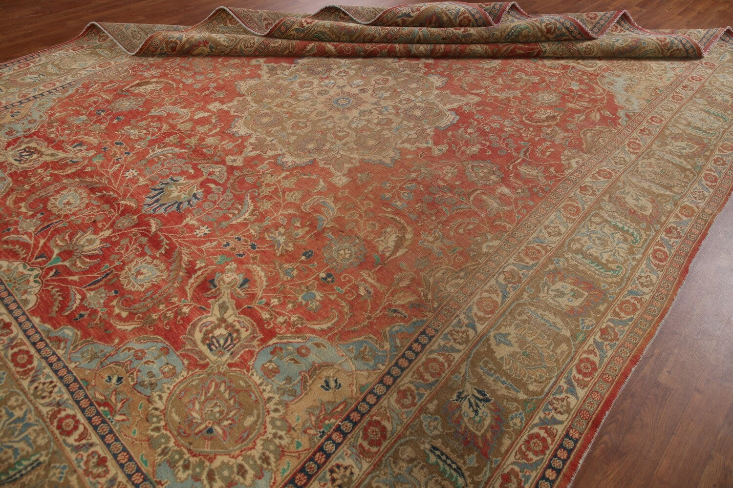 A Beautiful Genuine Persia ( Persia ) Mashad rug is Hand Knotted by skillful weavers in Persia ( Persia ) with 100% Wool Material. This rug is in Very Good (Evenly Low Pile) condition. dimensions are 12' 11'' X 9' 7'' in foot and 394 X 292 in centimeter. the primary color is Red.