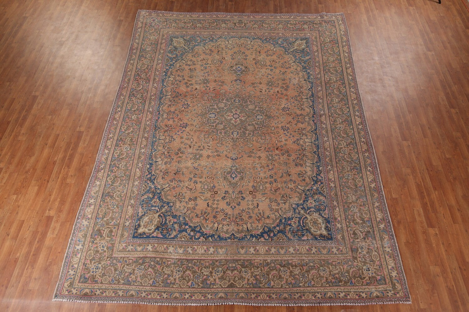 Wool Distressed Mashad Persian Living Room Rug 10x13