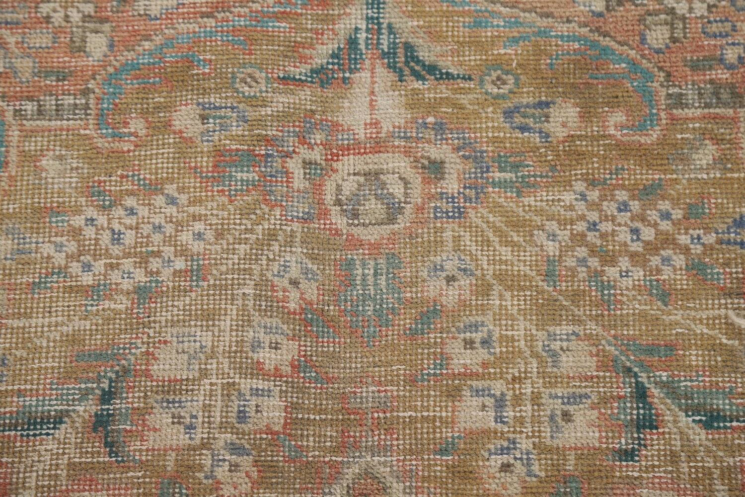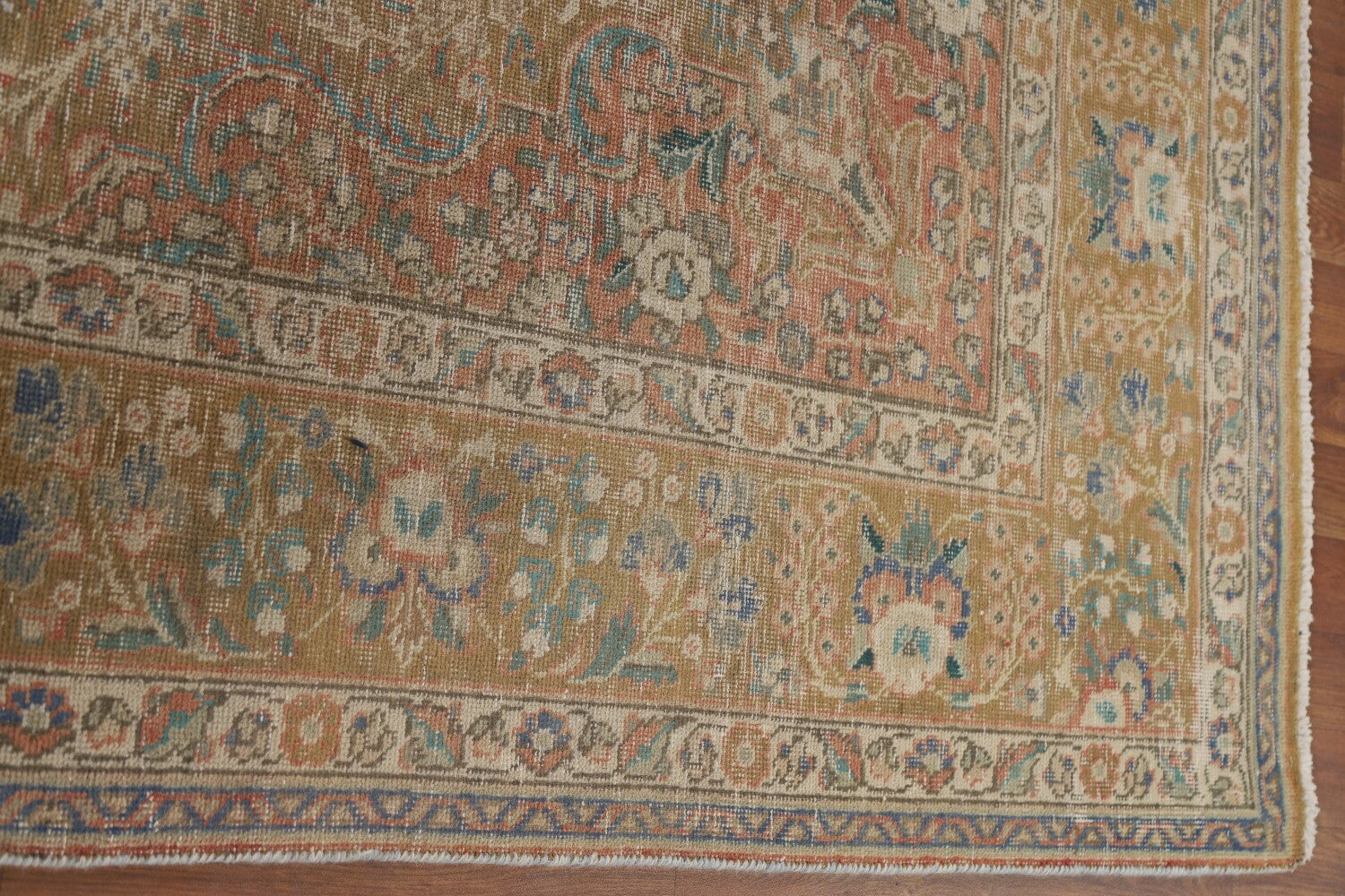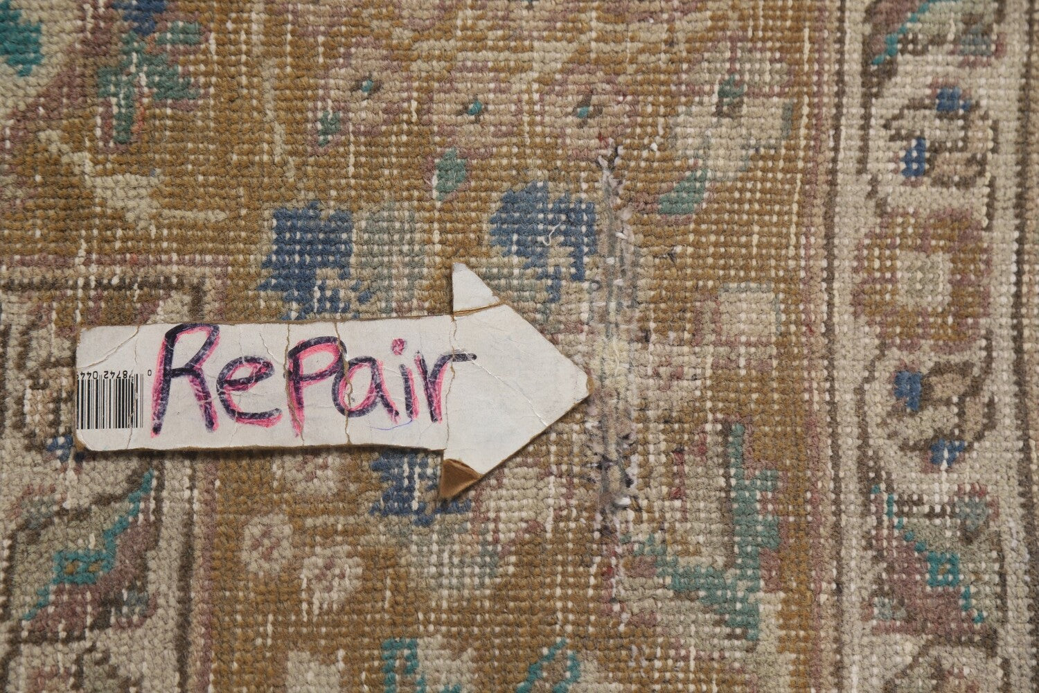 A Beautiful Genuine Persia ( Persia ) Tabriz rug is Hand Knotted by skillful weavers in Persia ( Persia ) with 100% Wool Material. This rug is in Very Good (Low Pile-Repair) condition. dimensions are 9' 4'' X 6' 8'' in foot and 284 X 203 in centimeter. the primary color is Yellow & Gold.