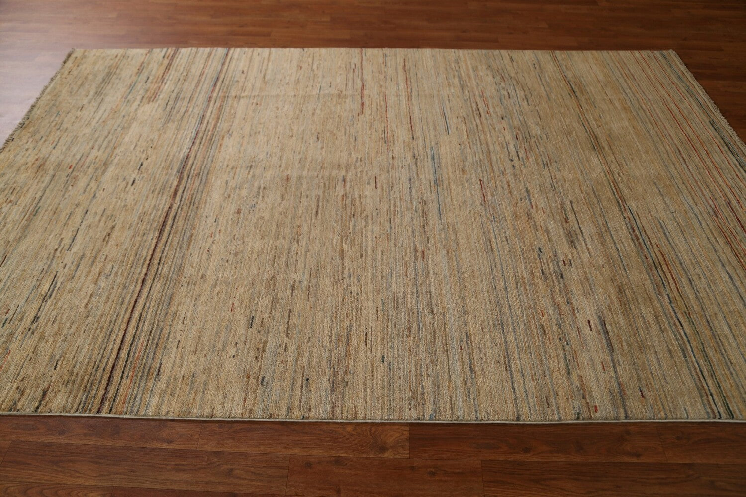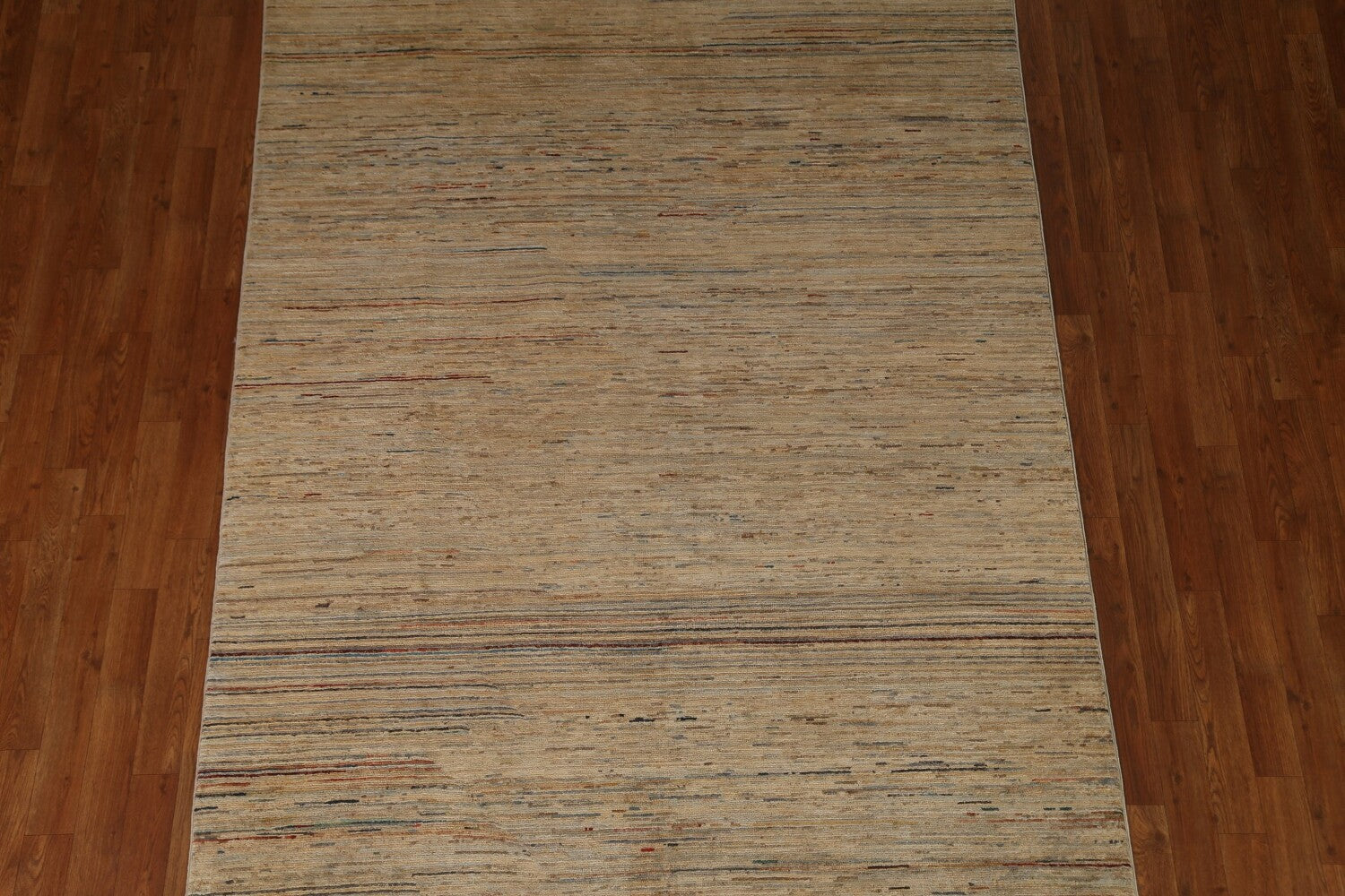 A Beautiful Genuine Pakistan Gabbeh (kashkoli) rug is Hand Knotted by skillful weavers in Pakistan with 100% Wool Material. This rug is in New, First Quality condition. dimensions are 8' 4'' X 5' 5'' in foot and 254 X 165 in centimeter. the primary color is Beige & Ivories.