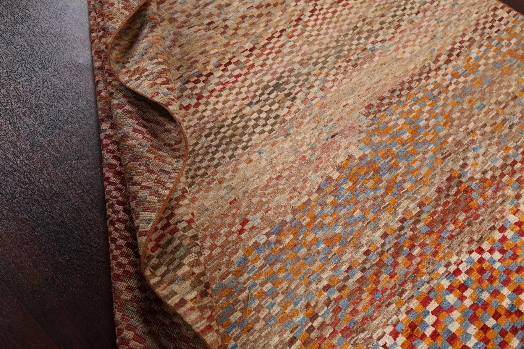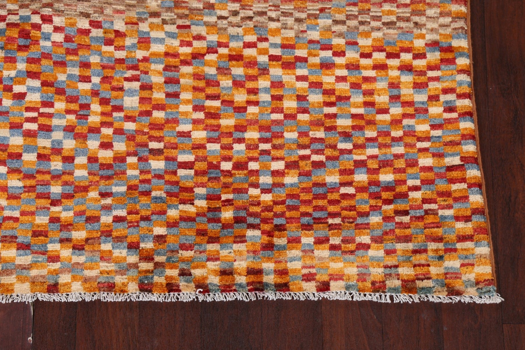 A Beautiful Genuine Pakistan Gabbeh (kashkoli) rug is Hand Knotted by skillful weavers in Pakistan with 100% Wool Material. This rug is in New, First Quality condition. dimensions are 9' 7'' X 6' 6'' in foot and 292 X 198 in centimeter. the primary color is Multi-Colored.