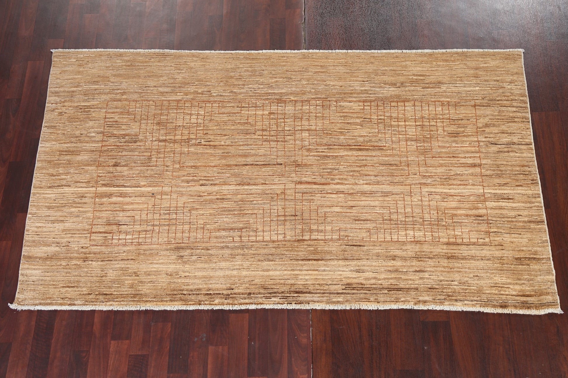 A Beautiful Genuine Pakistan Gabbeh (kashkoli) rug is Hand Knotted by skillful weavers in Pakistan with 100% Wool Material. This rug is in New, First Quality condition. dimensions are 7' 10'' X 4' 6'' in foot and 239 X 137 in centimeter. the primary color is Beige & Ivories.
