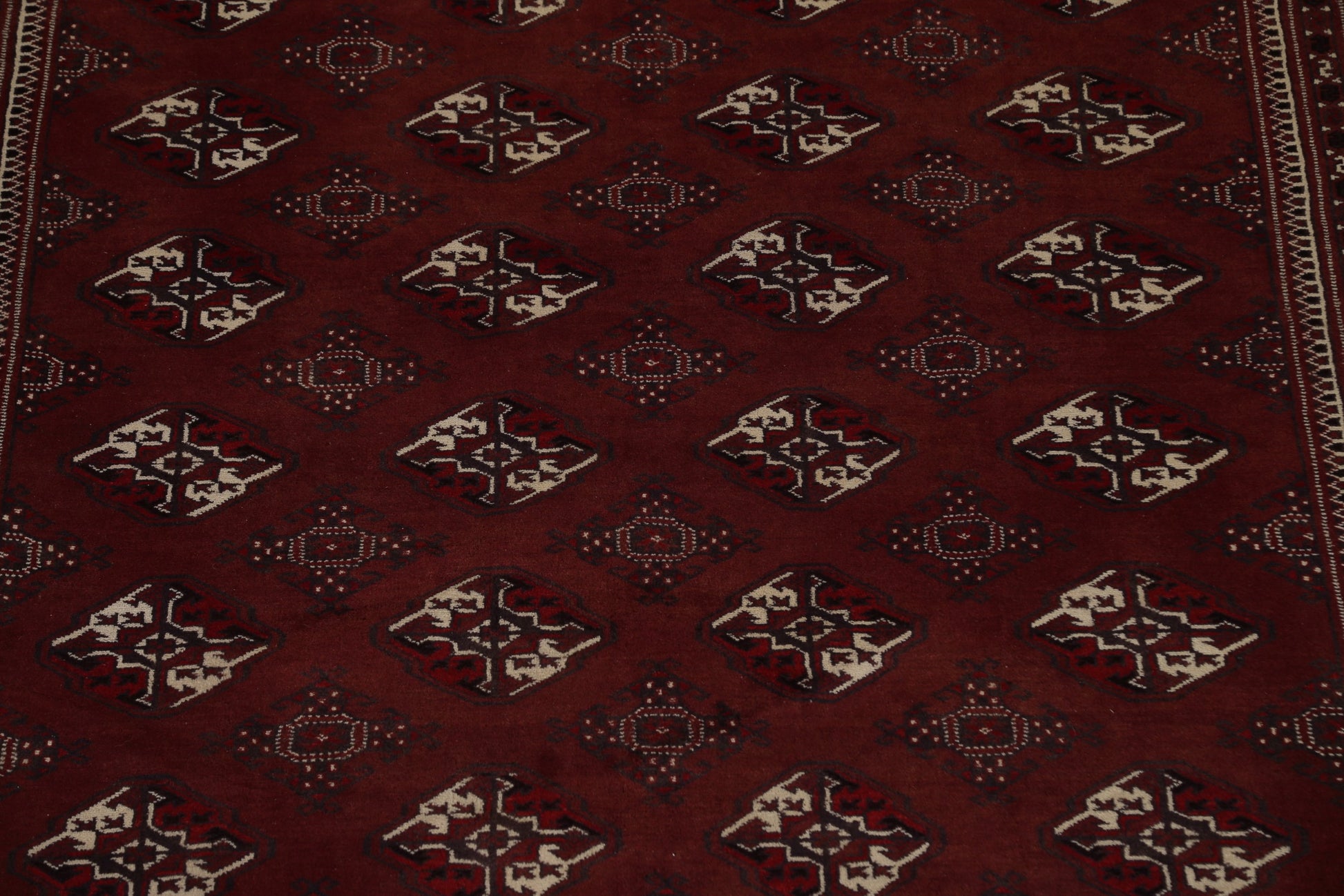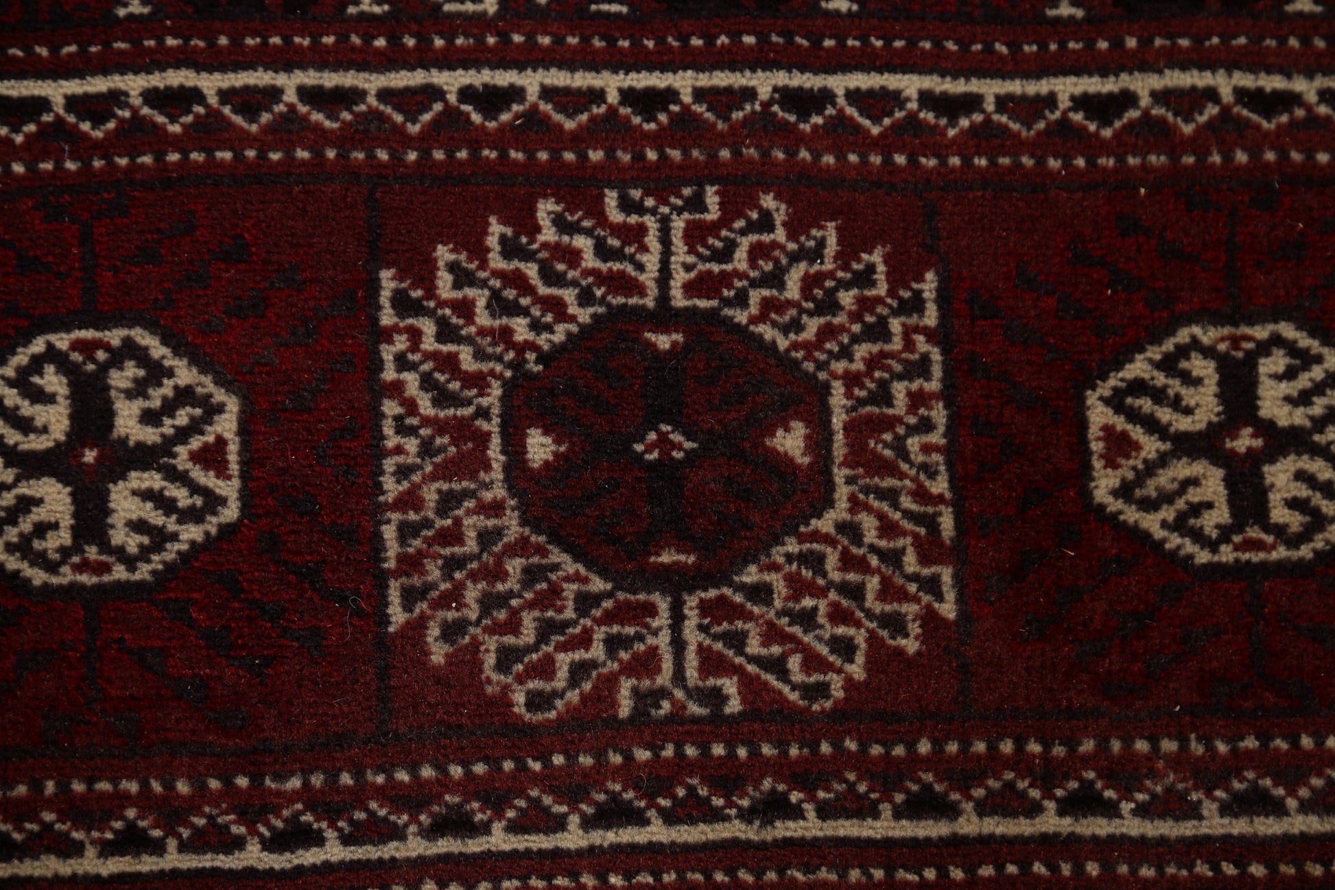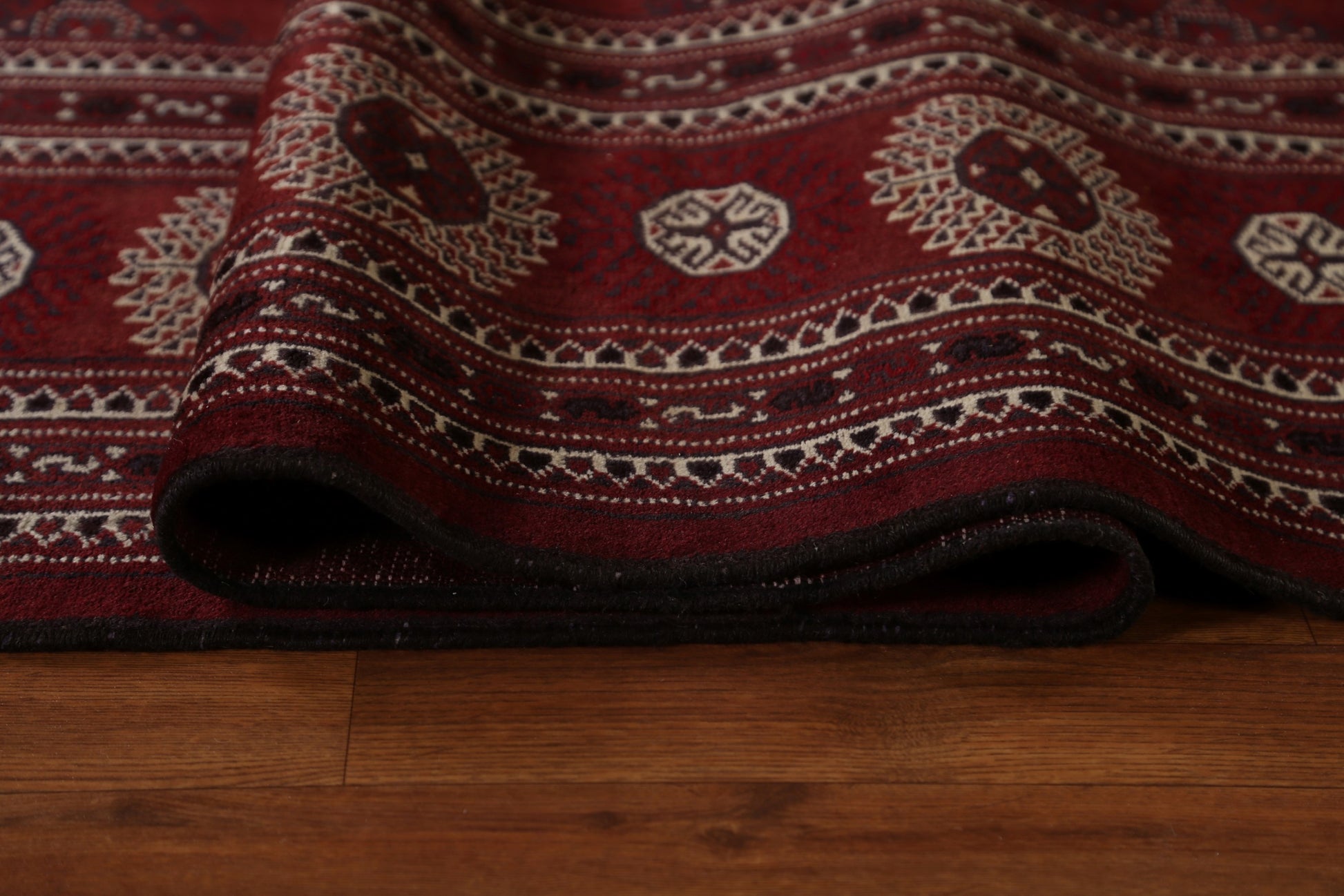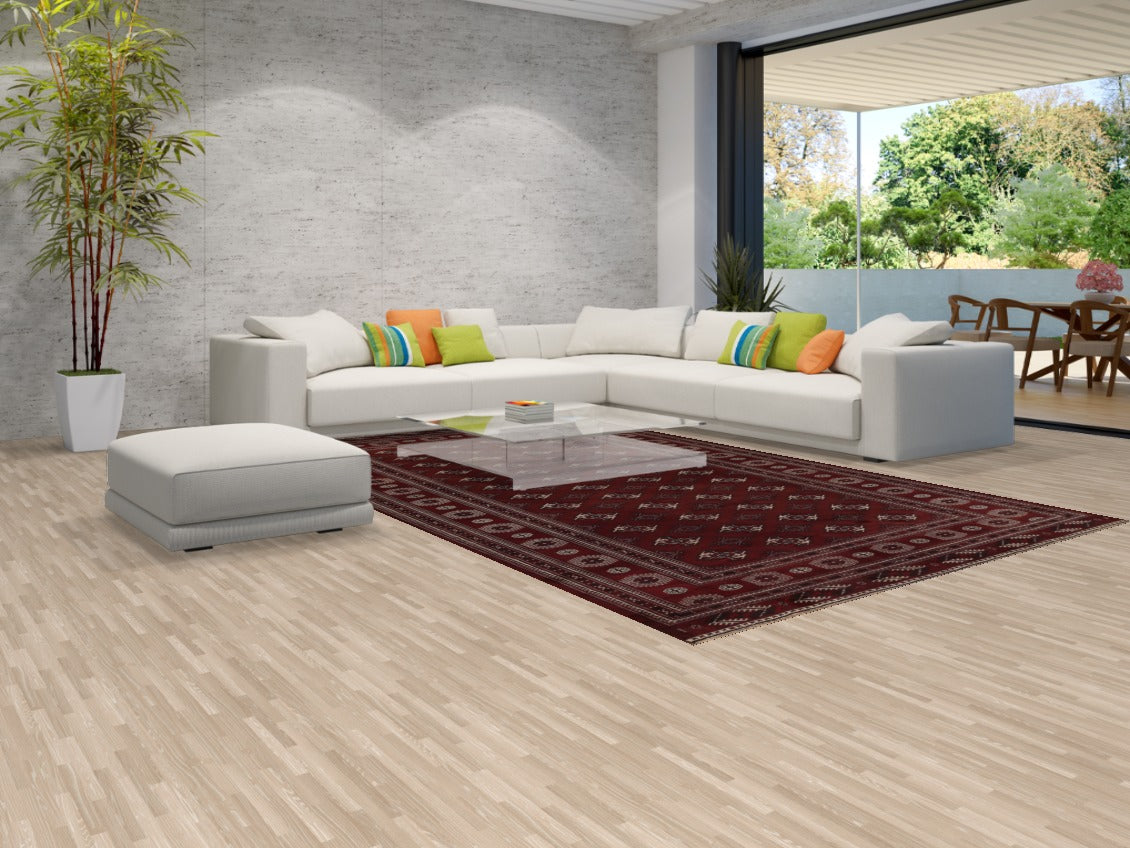 A Beautiful Genuine Pakistan Bokhara rug is Hand Knotted by skillful weavers in Pakistan with 100% Wool Material. This rug is in Very Good condition. dimensions are 12' 5'' X 7' 9'' in foot and 378 X 236 in centimeter. the primary color is Red.