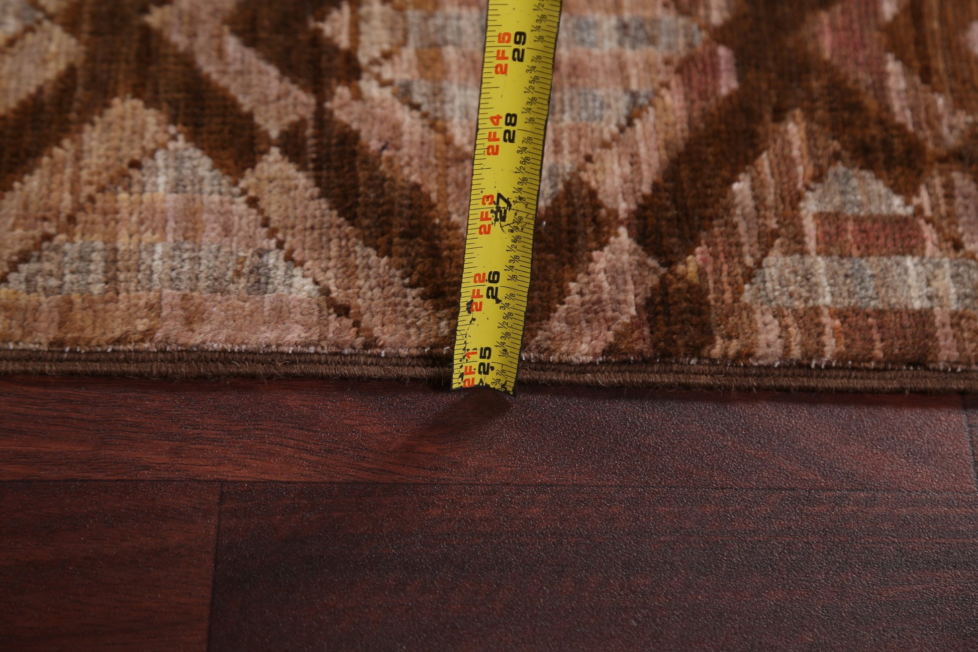 A Beautiful Genuine Pakistan Gabbeh (kashkoli) rug is Hand Knotted by skillful weavers in Pakistan with 100% Wool Material. This rug is in New, First Quality condition. dimensions are 7' 9'' X 5' 7'' in foot and 236 X 170 in centimeter. the primary color is Brown.