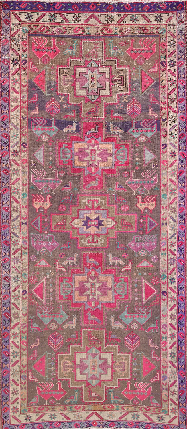 Wool Geometric Meshkin Persian Runner Rug 4x9