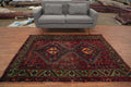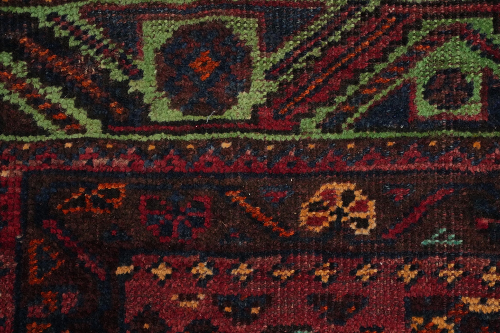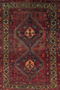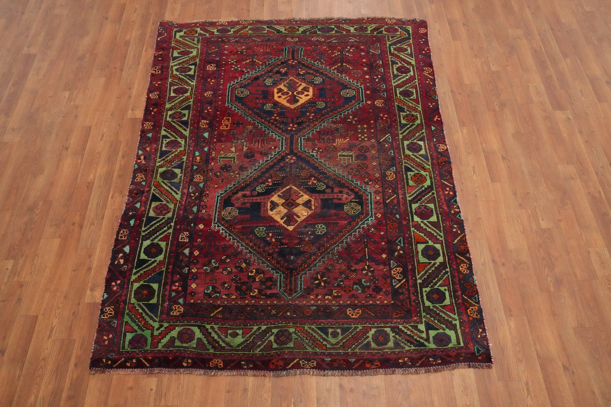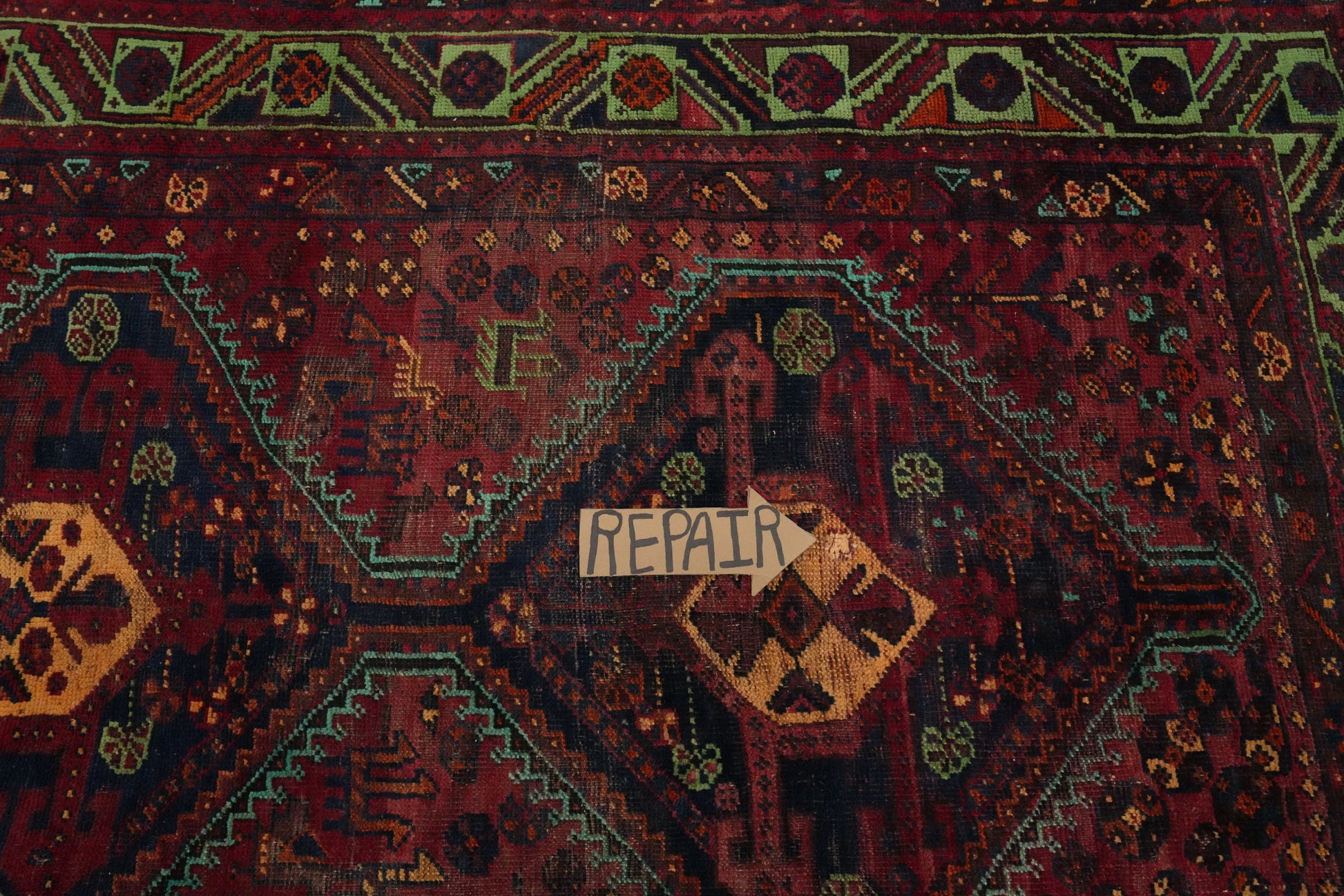 A Beautiful Genuine Persia ( Persia ) Qashqai rug is Hand Knotted by skillful weavers in Persia ( Persia ) with 100% Wool Material. This rug is in Very Good ( Evenly Low Pile-Repair) condition. dimensions are 6' 9'' X 4' 11'' in foot and 206 X 150 in centimeter. the primary color is Red.