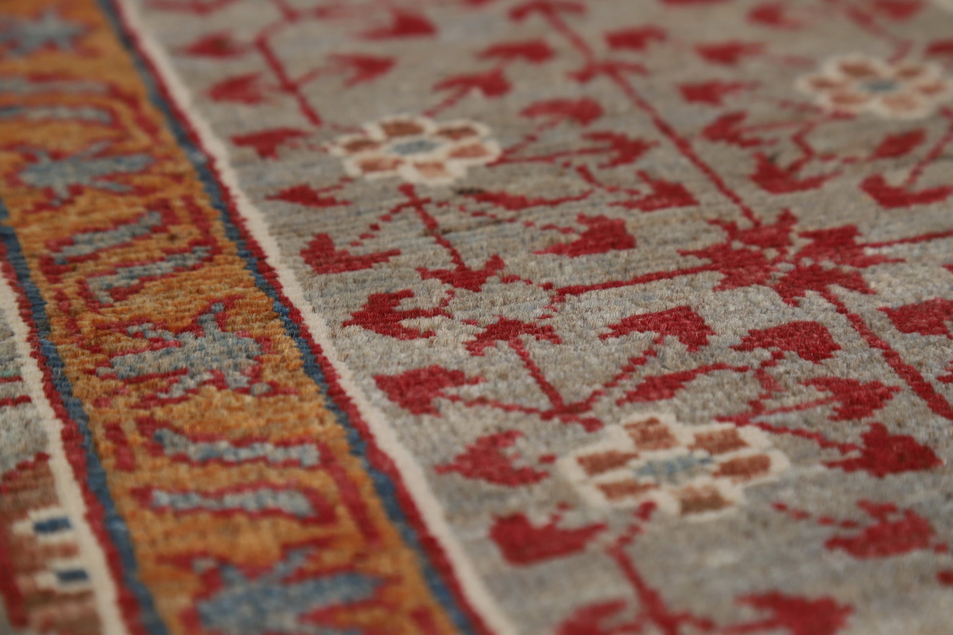 A Beautiful Genuine Pakistan Kazak rug is Hand Knotted by skillful weavers in Pakistan with 100% Wool Material. This rug is in New, First Quality condition. dimensions are 10' 2'' X 6' 9'' in foot and 310 X 206 in centimeter. the primary color is Greys & Charcoal.