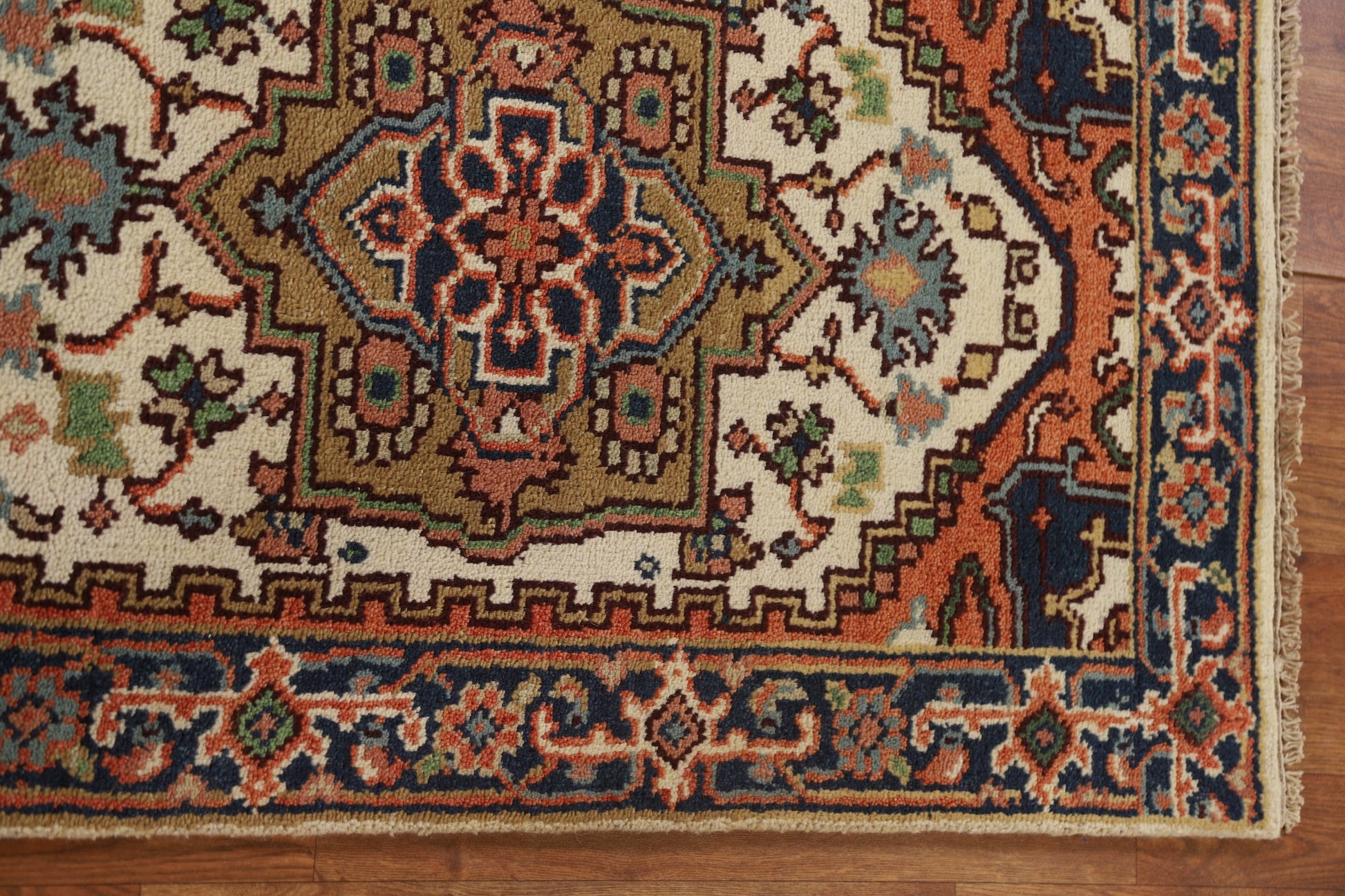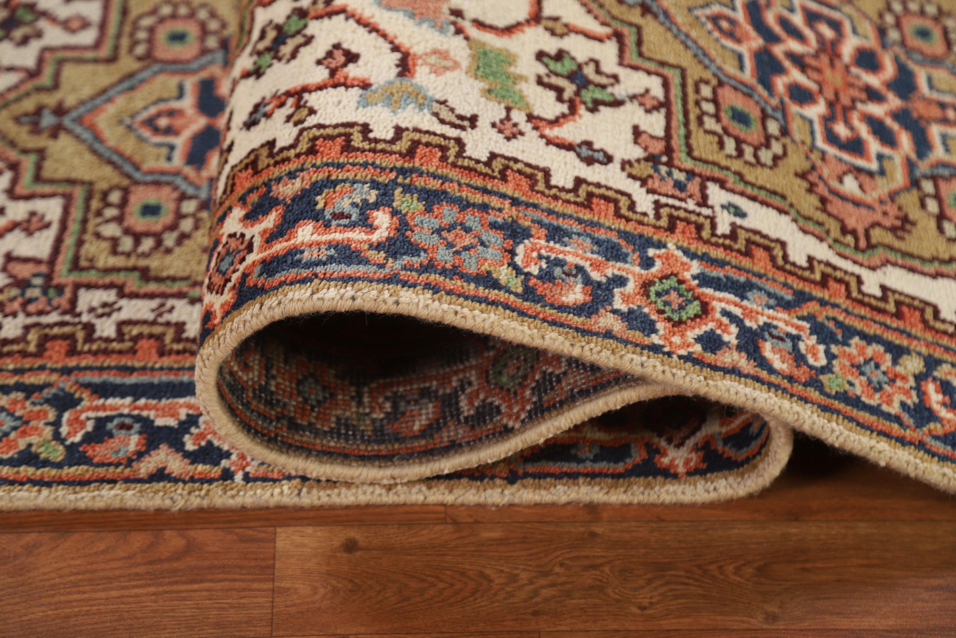 A Beautiful Genuine India Heriz (serapi) rug is Hand Knotted by skillful weavers in India with 100% Wool Material. This rug is in condition. dimensions are 11' 10'' X 2' 6'' in foot and 361 X 76 in centimeter. the primary color is Beige & Ivories.