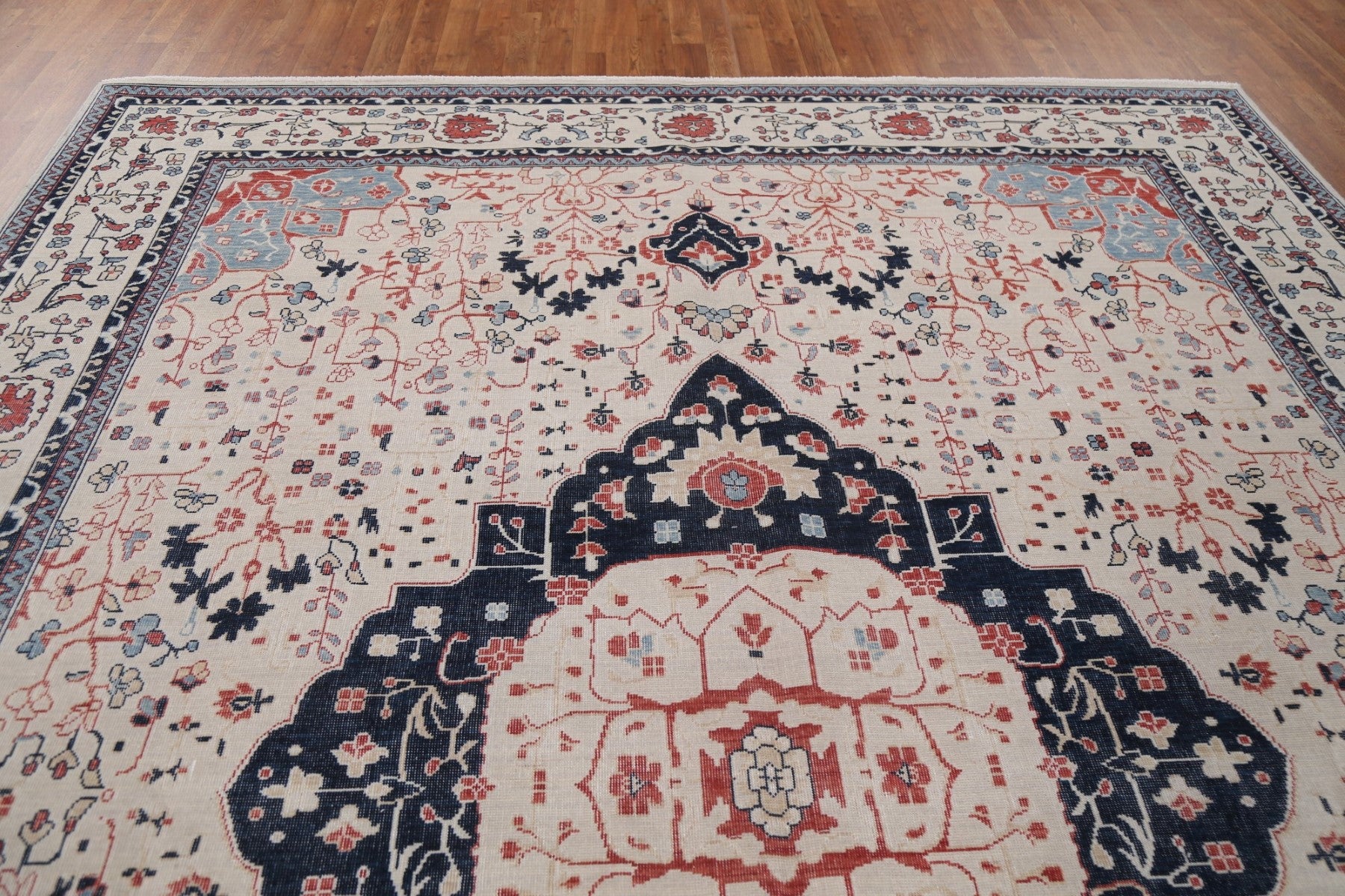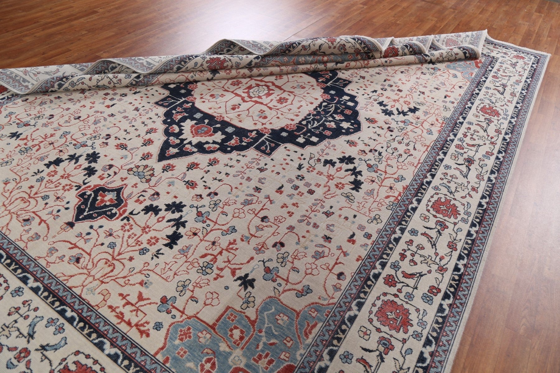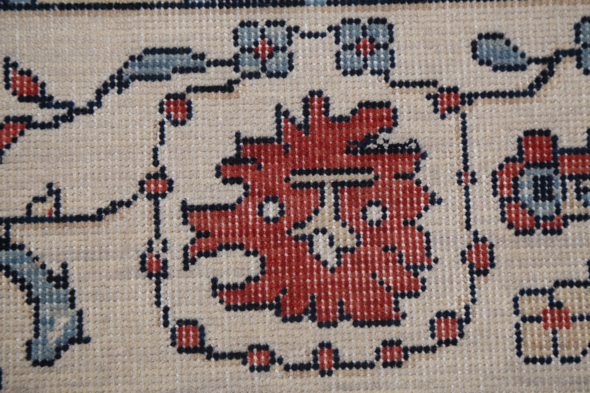 A Beautiful Genuine Turkey Kashan (Mohtasham) rug is Hand Knotted by skillful weavers in Turkey with 100% Wool Material. This rug is in New, First Quality condition. dimensions are 12' 0'' X 9' 0'' in foot and 366 X 274 in centimeter. the primary color is Beige & Ivories.
